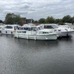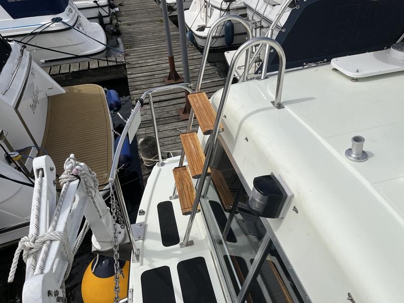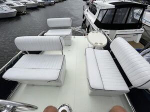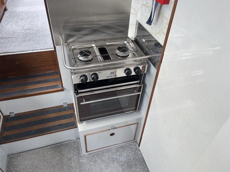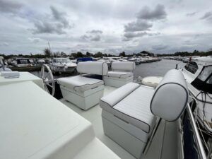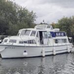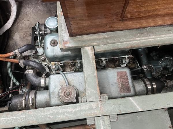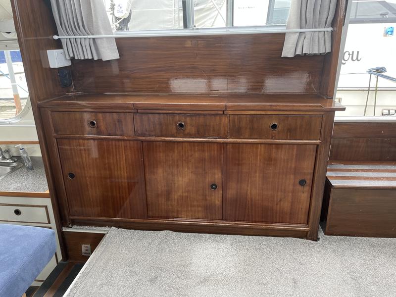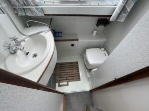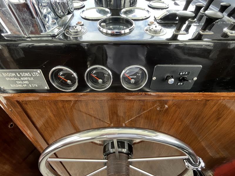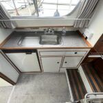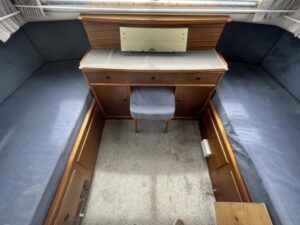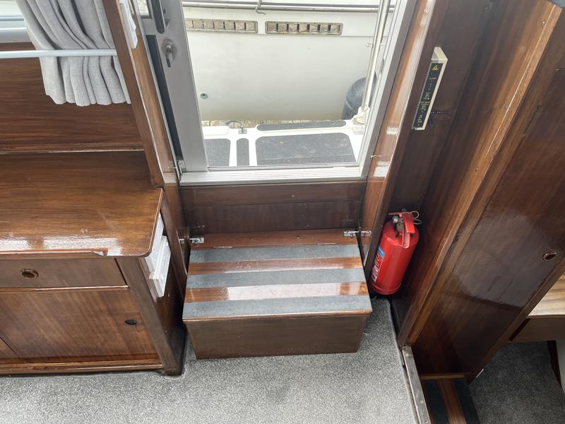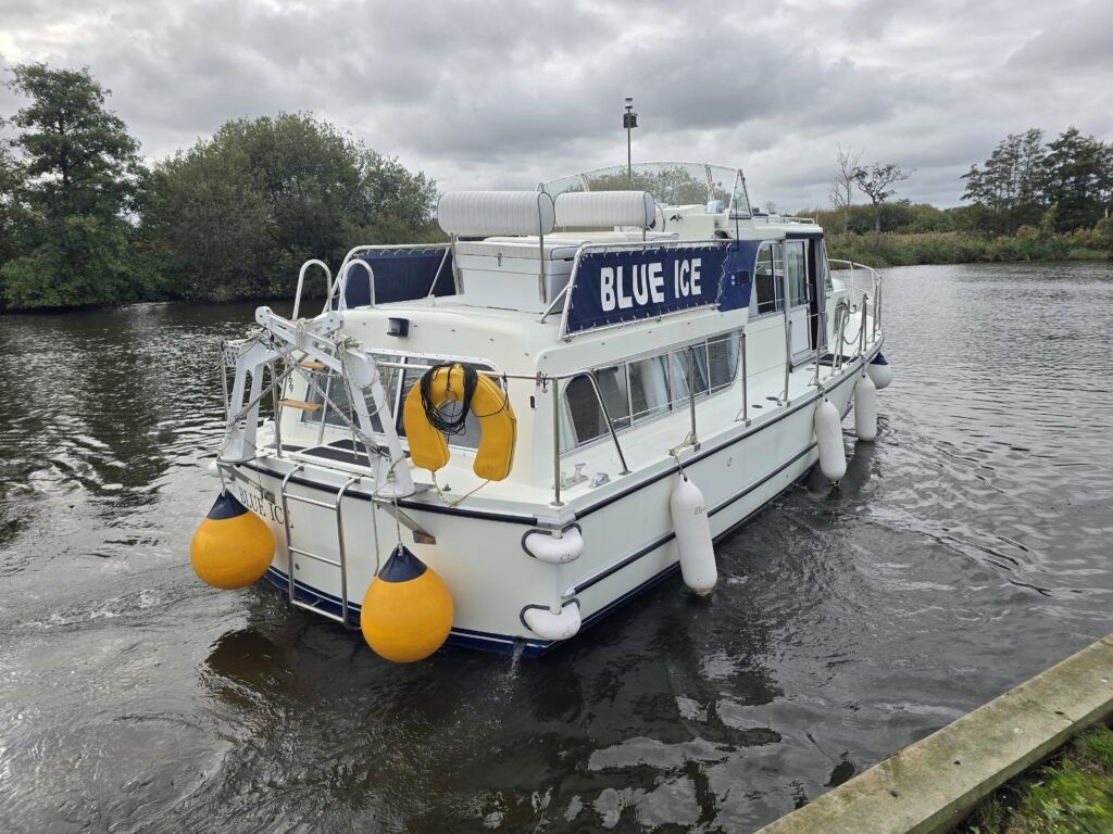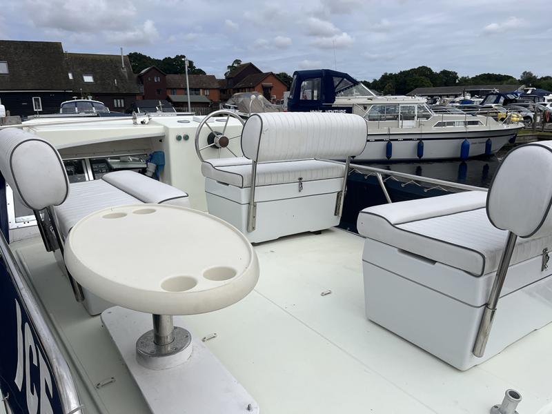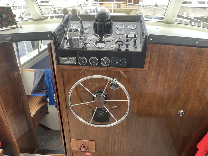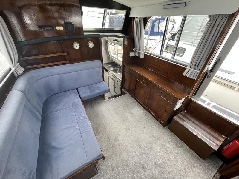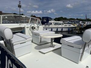 Broom 30 Dual Helm – 1981 – 2x Perkins 4108 diesel engines on shafts. Twin helm model with 6 berth accommodation, 2 toilets and a shower. Specification to include; Webasto warm air heating, shore power, battery charger, Neptune 2 burner hob and oven and grill, 12v fridge, folding windscreen, search light, electric anchor winch, Webasto sunroof, folding davits. Many recent updates. BSC until July 2028. ‘Blue Ice’ is a very tidy, well cared for and much updated example of these popular river/estuary/coastal cruisers.