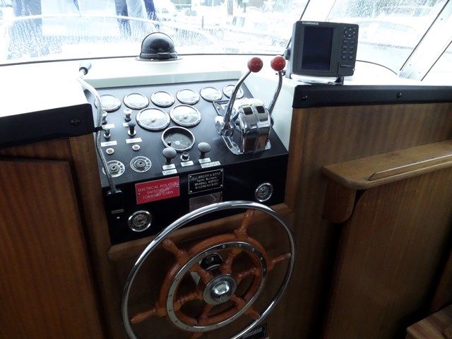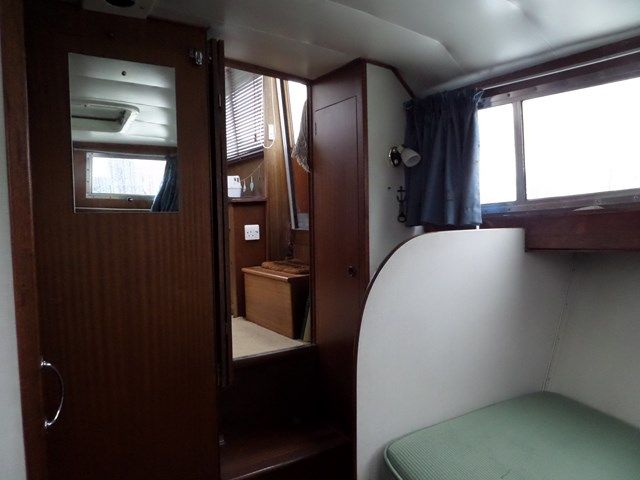 BROOM 30 – Built 1974, 2 x Perkins 4.108 serviced November 2013, 6 berths, 2 x toilets and 1 x shower, heating, battery charger, boat safety certificate expires 2016, TV aerial and booster, Speed LOG, Lowrance chart plotter, Echo sounder, VHF, shore power. Great family cruiser with excellent accommodation offering all year round cruising! The Broom 30 still offers so much!