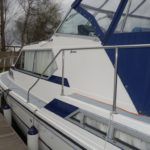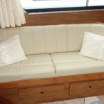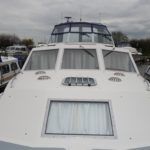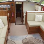 BROOM 32 – 1991, single Perkins 4.108 48hp, great accommodation with 7 berths, 2 x toilets with holding tanks and showers, superb specification: – shore power with battery charger, 1800W inverter bow and stern thrusters, boat safety until 2017, heating, folding windscreen, GPS speed LOG. Lovely family river cruiser has to be one of the best examples out there! Leather upholstery in saloon.