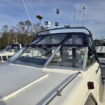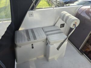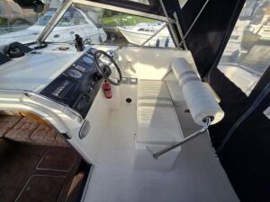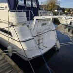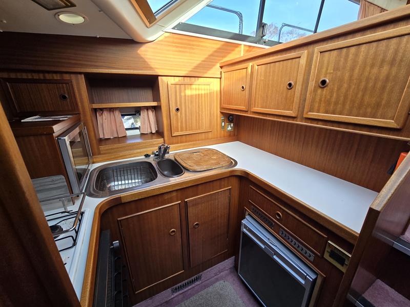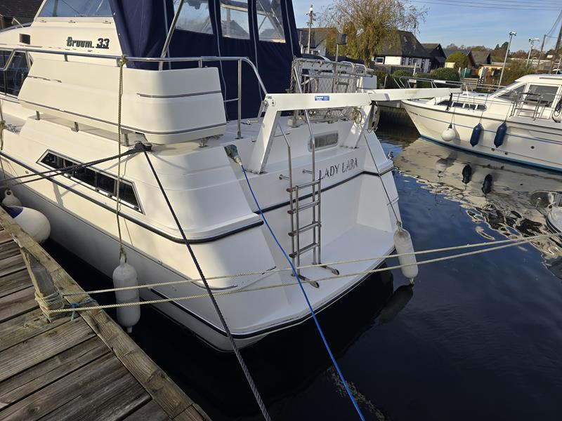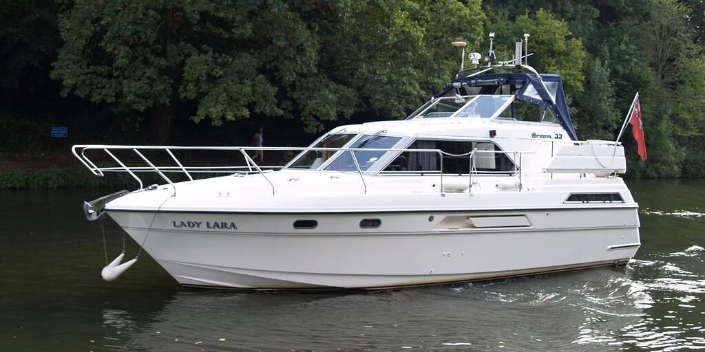 Broom 33 – 1991 – 2x Mercruiser D636TA 180hp diesel engines through shafts – just had a full engine service. Comfortable 6-berth accommodation with separate shower and 2 toilet compartments. Specification to include – Generator, 2x electric toilets to holding tank, warm air heating, electric windlass, shore power, battery charger, davits, hydraulic steering, trim tabs, solar panel and more. A much loved, two-owner example of this versatile motor cruiser, suited for both inland waterways and offshore cruising. Recently reduced by a motivated seller!
