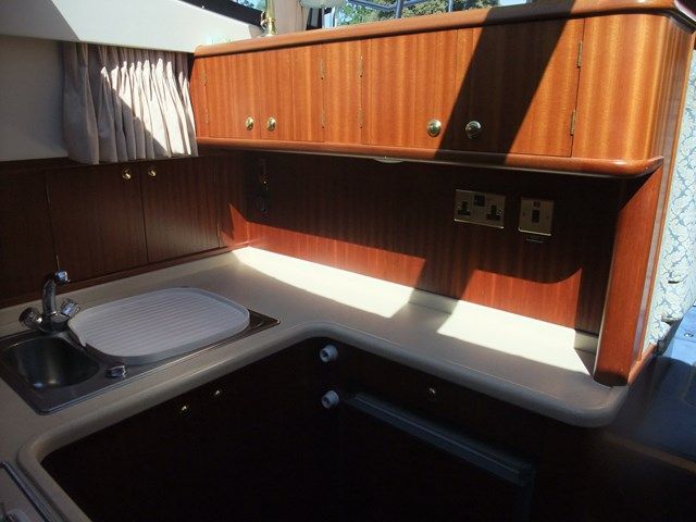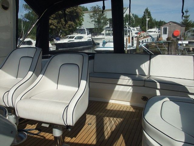 BROOM 35 CL – 1999, 1 x Perkins Sabre 135Hp diesel engine, 6 berths in 2 cabins, 2 x toilets & showers, Boat Safety Certificate until: April 2017. Shore power, battery charger, inverter, hot air heating, teak laid cockpit, holding tank, folding radar arch and much more! Viewing recommended.