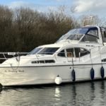 BROOM 35 CL – 2001 – Powered by a single Perkins Sabre M135L (135hp) diesel engine. 4 berth accommodation over 2 cabins, one en-suite island double cabin & one day heads. Specification including bow and stern thrusters, shore power, battery charger, immersion heater, warm air heating, speed & depth log, anchor winch, teak laid bathing platform and steps, Engines serviced April 2022, new canopy 2019, antifouled 2021, BSC 03/27. Beautifully finished in Teak with Avonite galley surfaces. A lovely example of these well built Motor Cruisers.