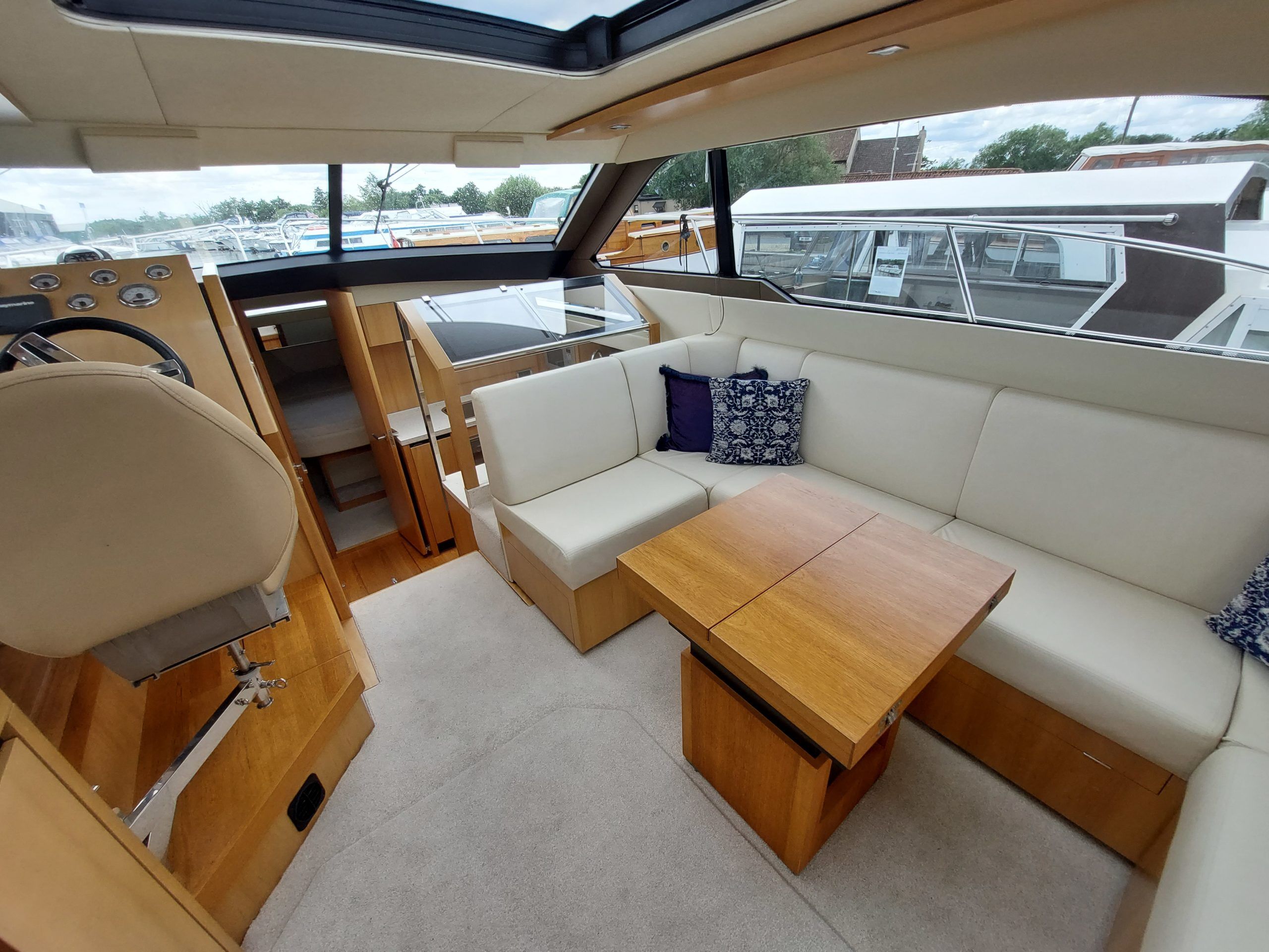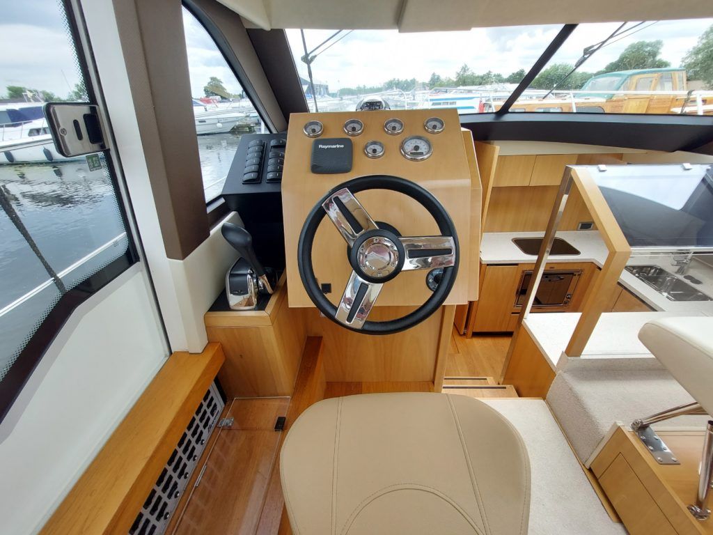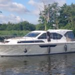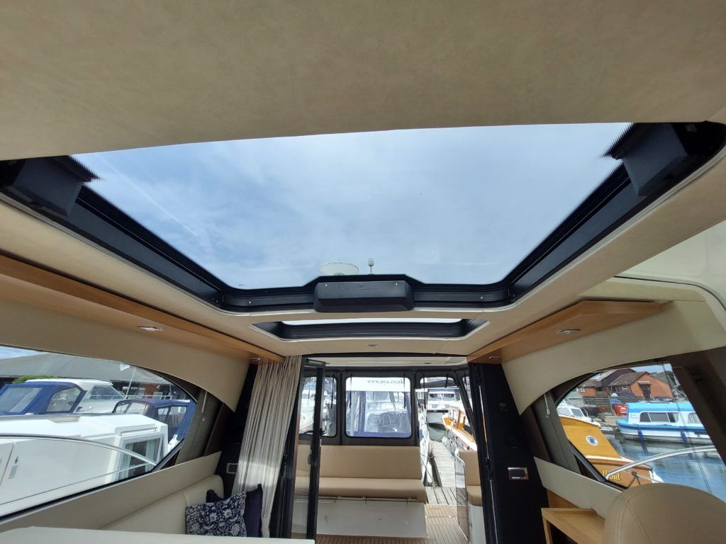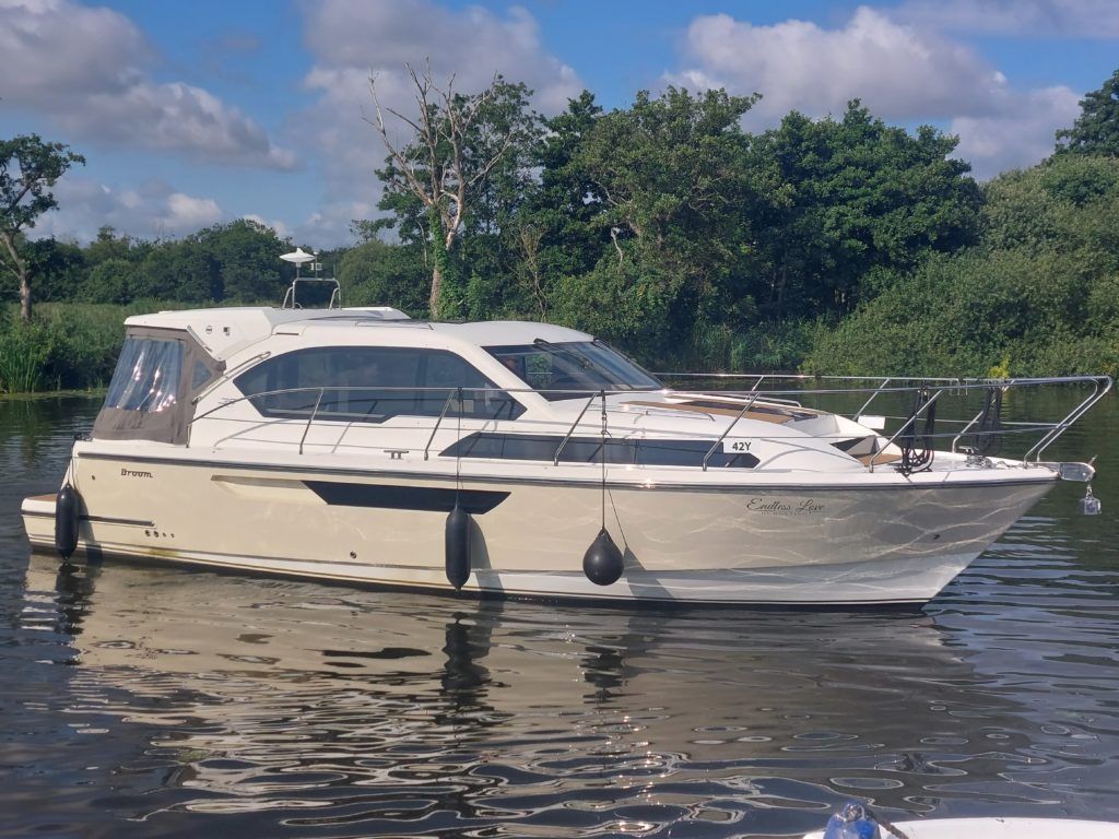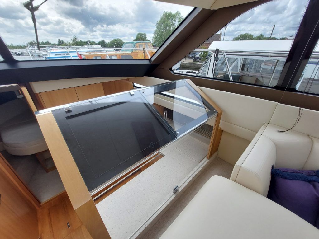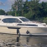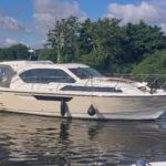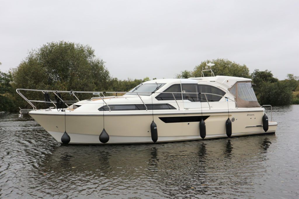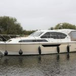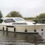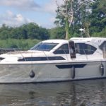 Broom 35 Coupe – 2014 – Single Nanni N4 60hp diesel engine through a shaft. 4 berth accommodation with single toilet and shower. Specification to include; Lewmar bow thruster, Eberspacher warm air heating, electric windlass, electric sunroof. A well cared for, stylish and comfortable Sedan, and a great way to explore the waterways. BSC 14/06/2026