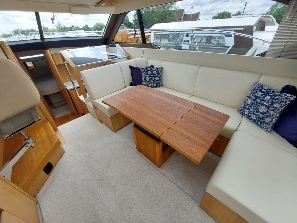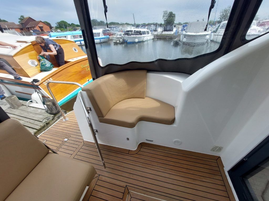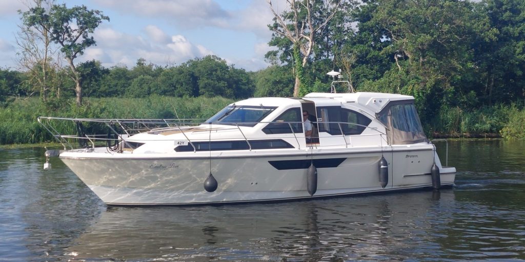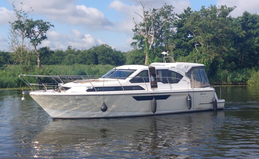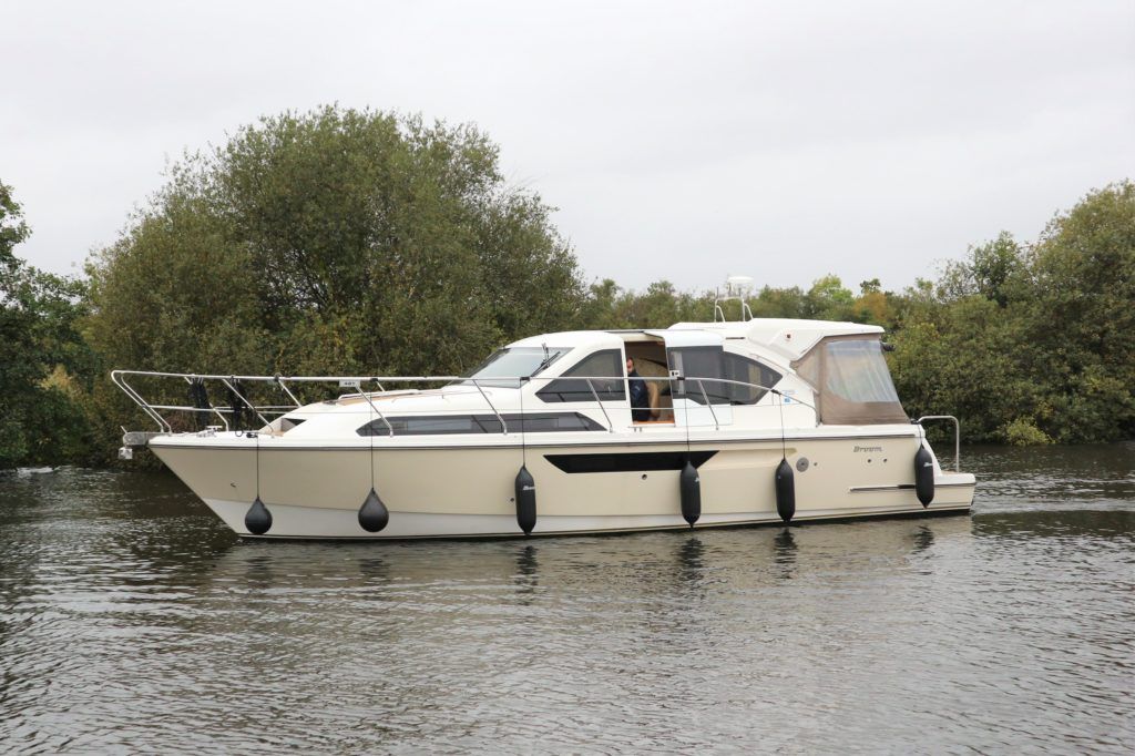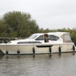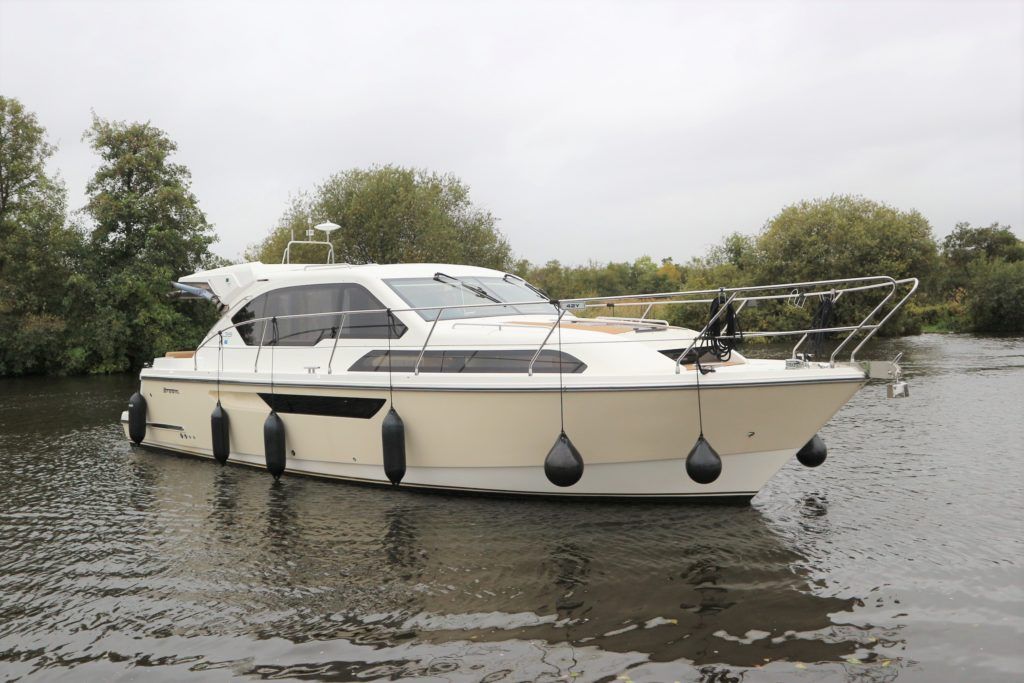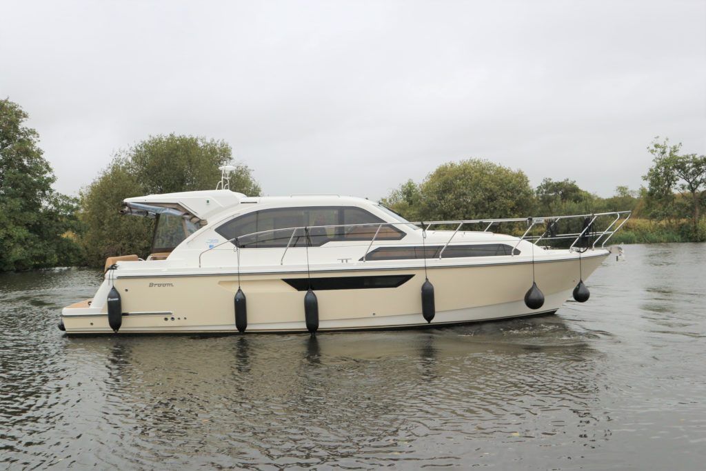Broom 35 Coupe – 2014 – Single Nanni N4 60hp diesel engine through a shaft. 4 berth accommodation with single toilet and shower. Specification to include; Lewmar bow thruster, Eberspacher warm air heating, electric windlass, electric sunroof. A well cared for, stylish and comfortable Sedan, and a great way to explore the waterways. BSC 14/06/2026