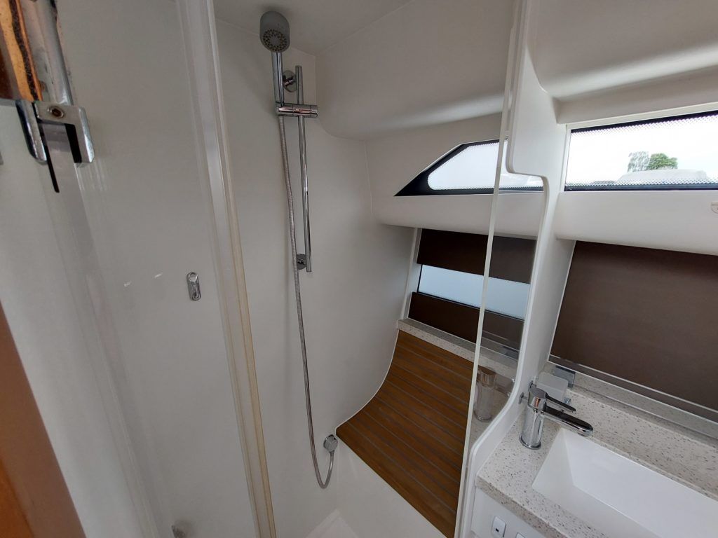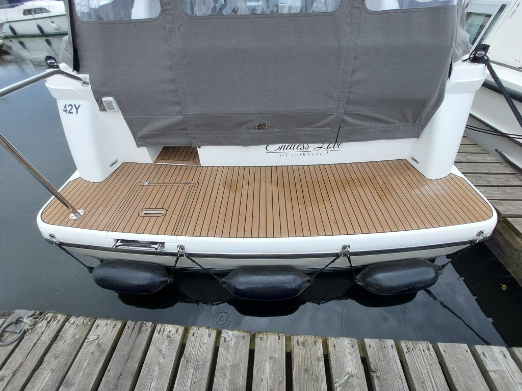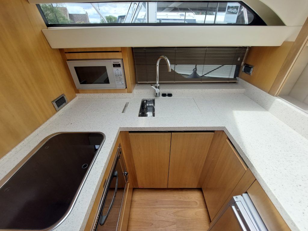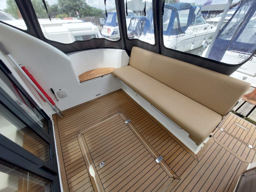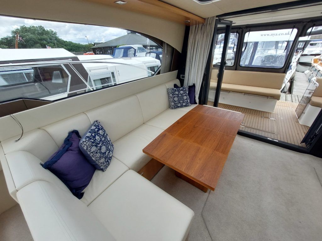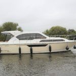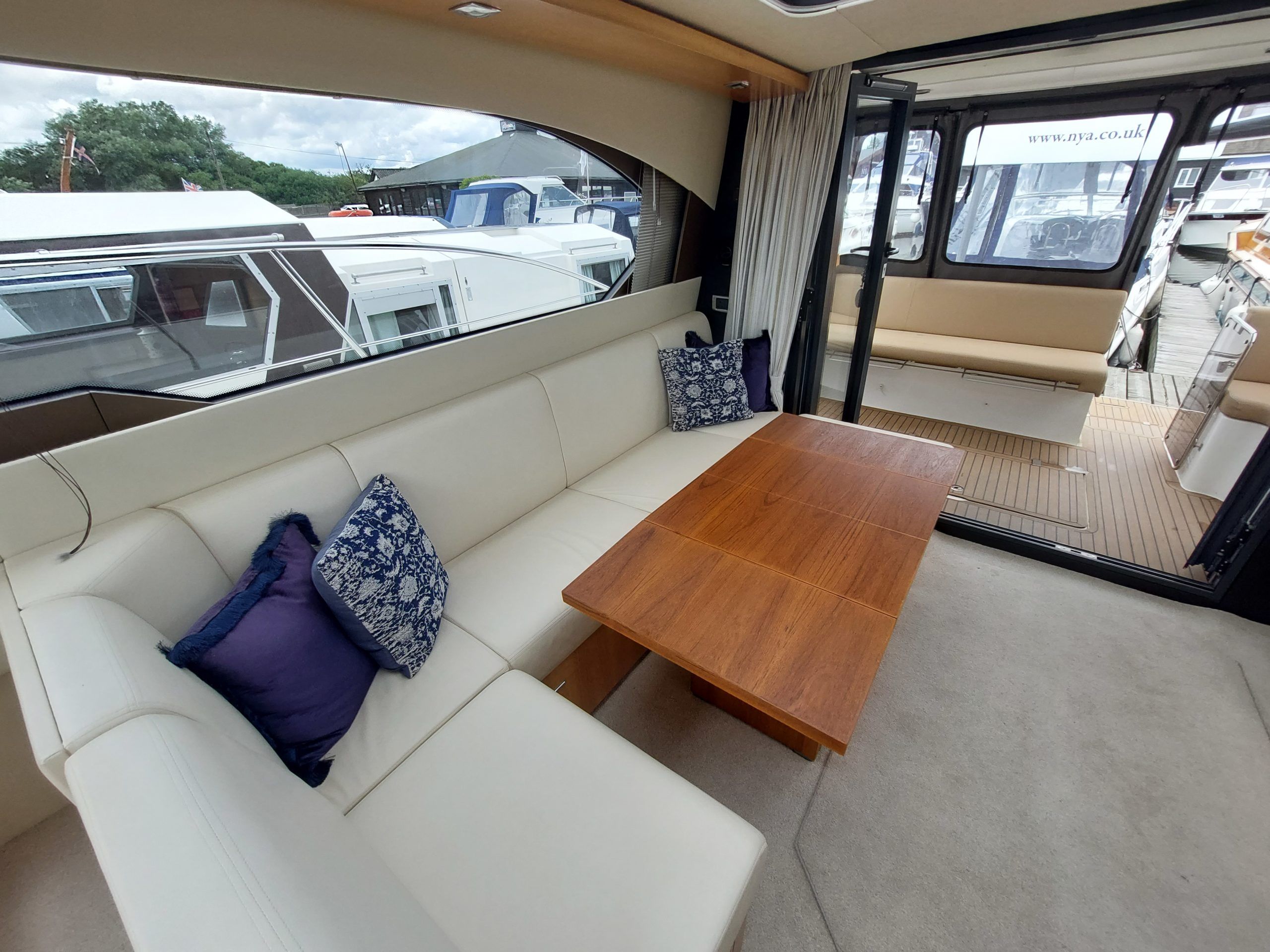 Broom 35 Coupe – 2014 – Single Nanni N4 60hp diesel engine through a shaft. 4 berth accommodation with single toilet and shower. Specification to include; Lewmar bow thruster, Eberspacher warm air heating, electric windlass, electric sunroof. A well cared for, stylish and comfortable Sedan, and a great way to explore the waterways. BSC 14/06/2026