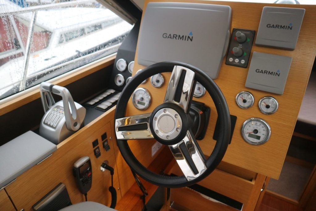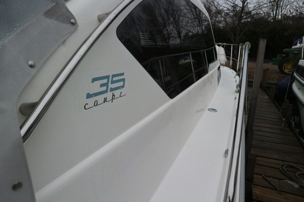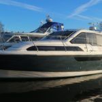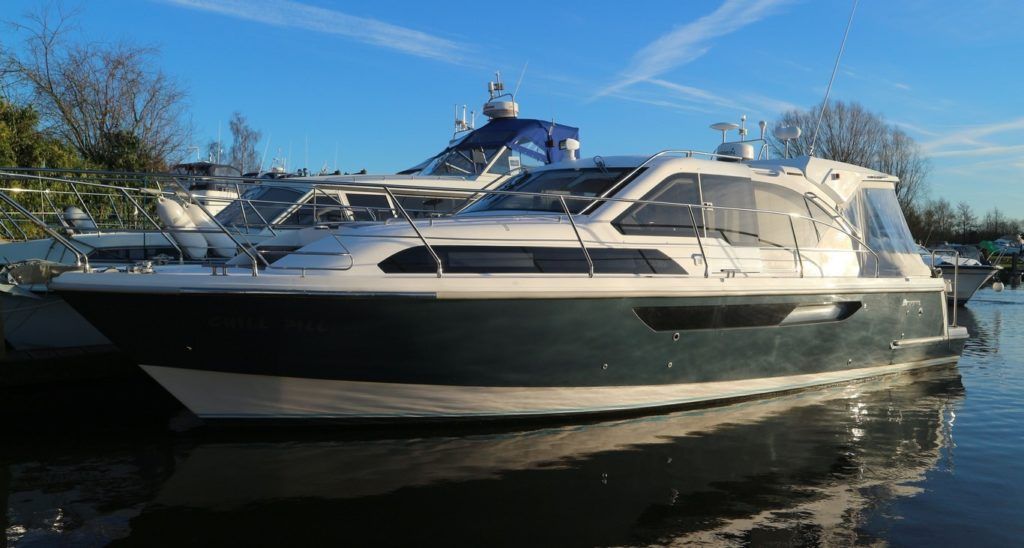 BROOM 35 COUPE – 2012 – Powered by twin Nanni 170hp diesels. 4 berth accommodation with toilet and shower. Fully equipped specification to include Bow and stern thrusters with remote, full Garmin Navigation equipment, warm air heating, electric windlass, holding tank, shore power and much more!. Lightly used boat with one owner from new and very low hours! a very versatile cruiser. Ideal for both inland and offshore exploits!