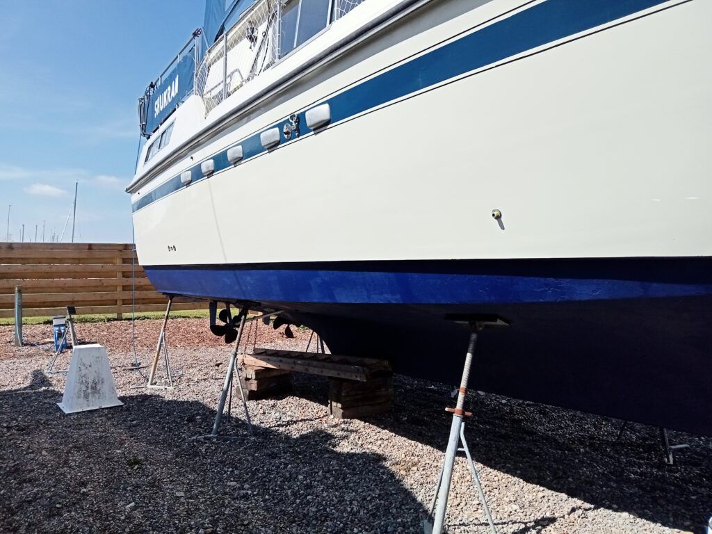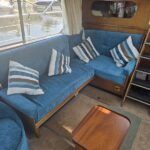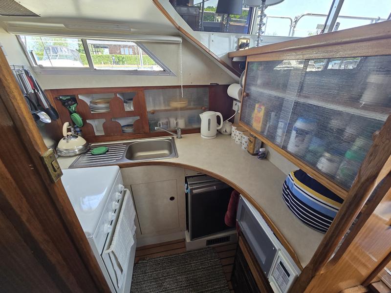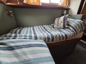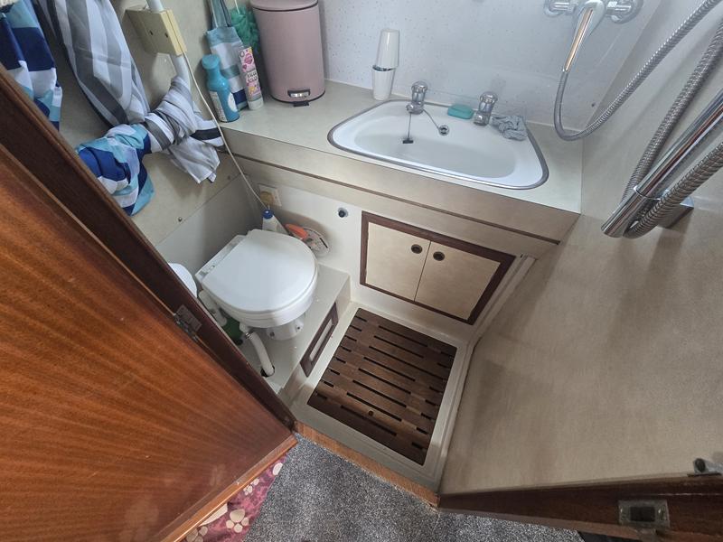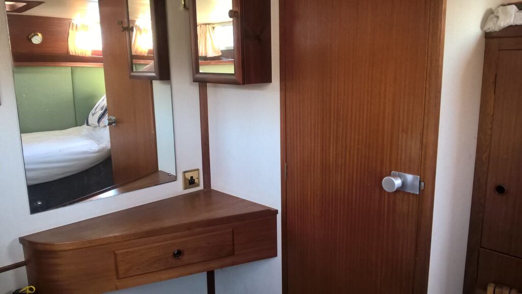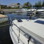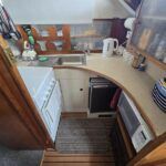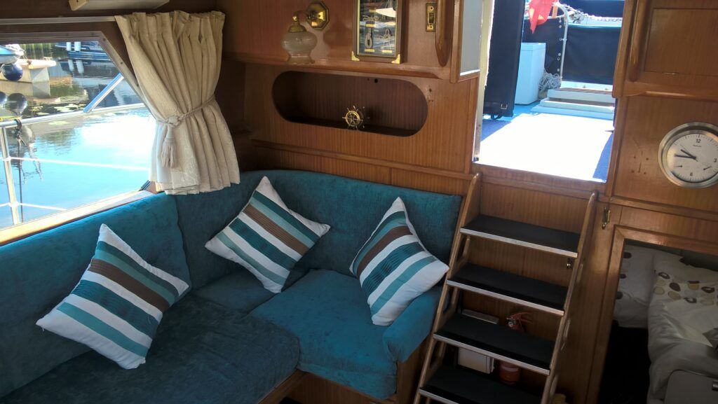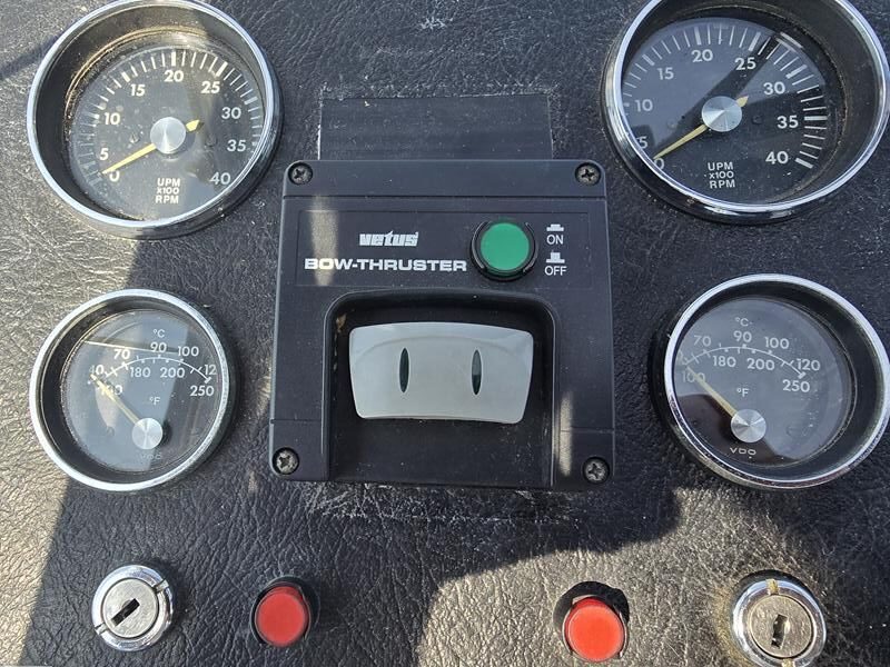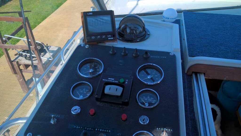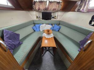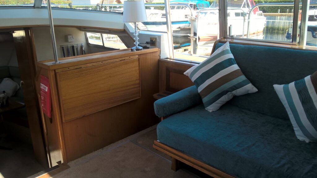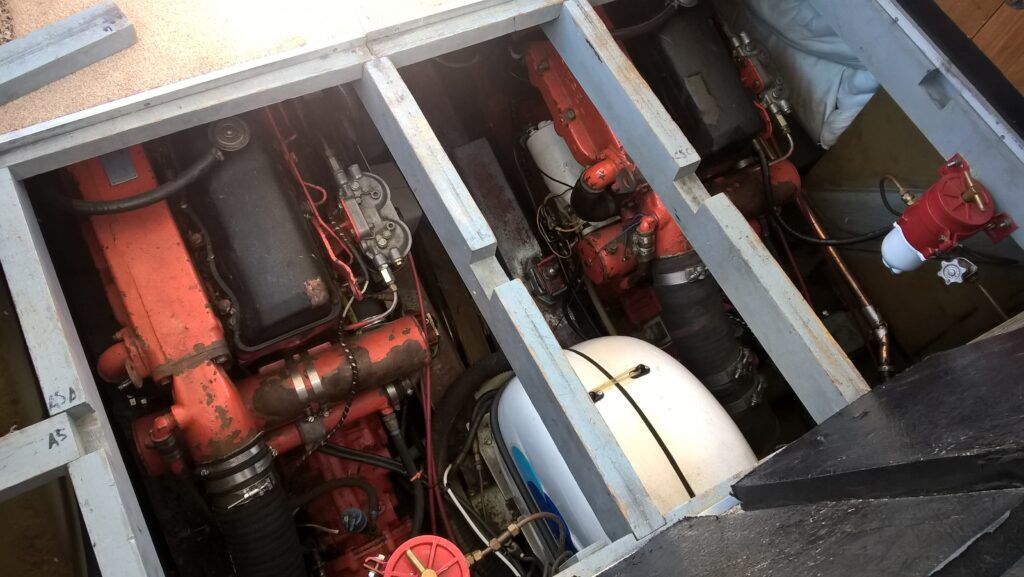 Broom 35 European – 1978 – 2x Ford Mermaid 120hp diesels through shafts – 6 berth accommodation with two toilets and shower facility – Specification to include; Diesel warm air heating, bow thruster, Pegasus 4000 generator, holding tank, VHF, shore power and battery charger. Engines serviced Nov 24. Folding arch and screens for increased inland access. BSC 2026. A well-specified Broom 35 with desirable non-turbo engines, perfect for extended inland cruising!