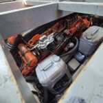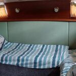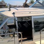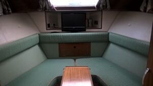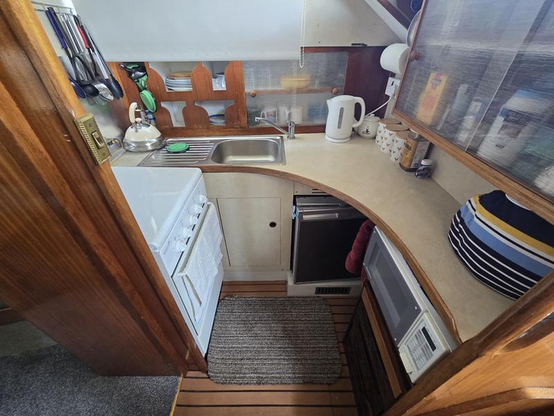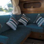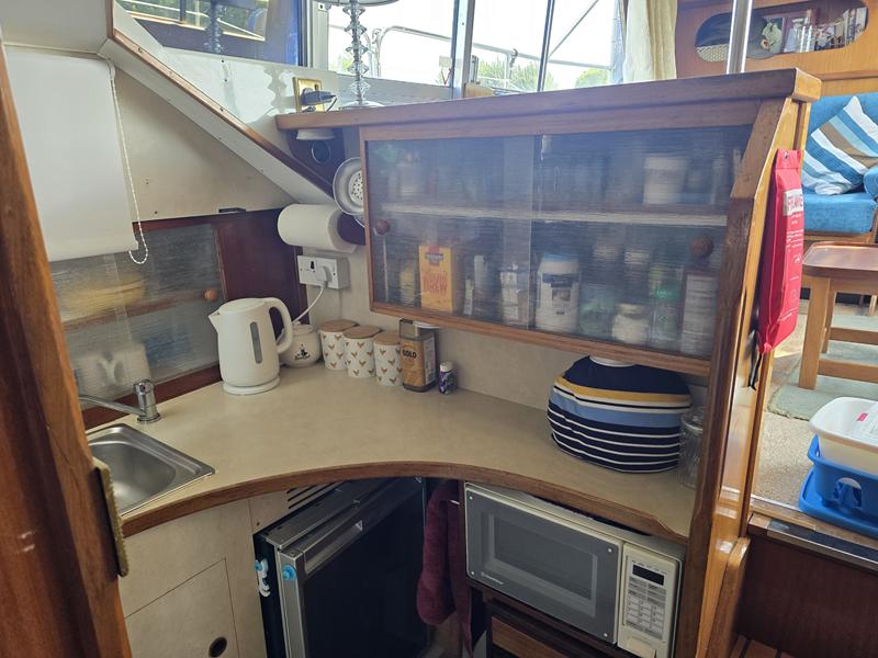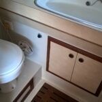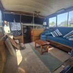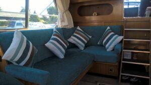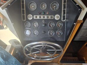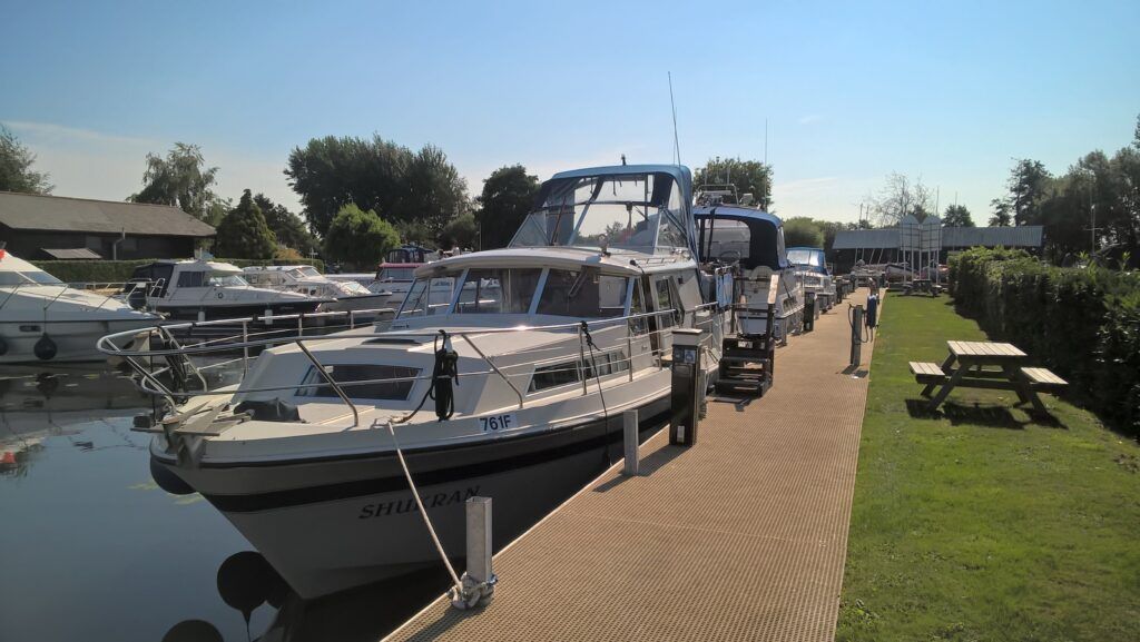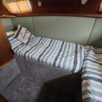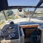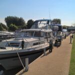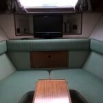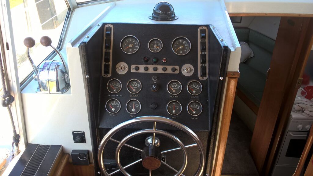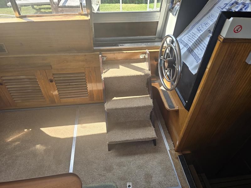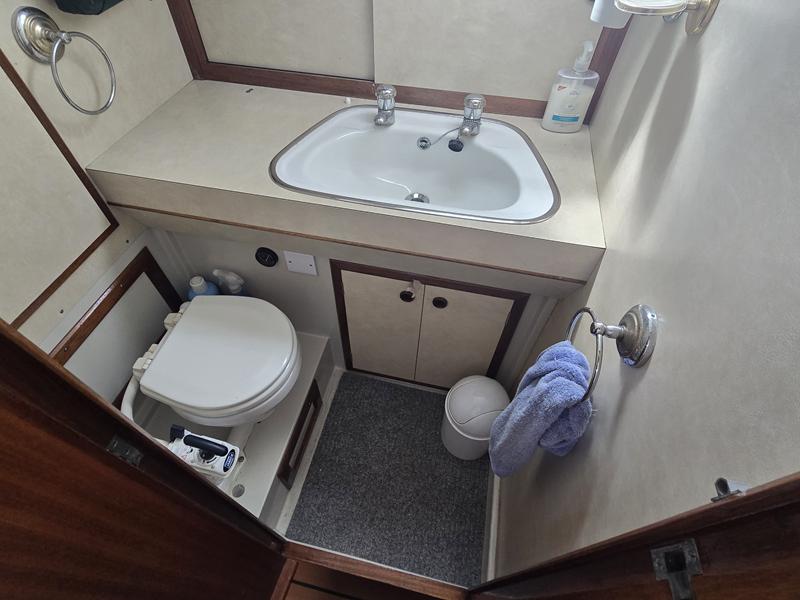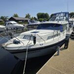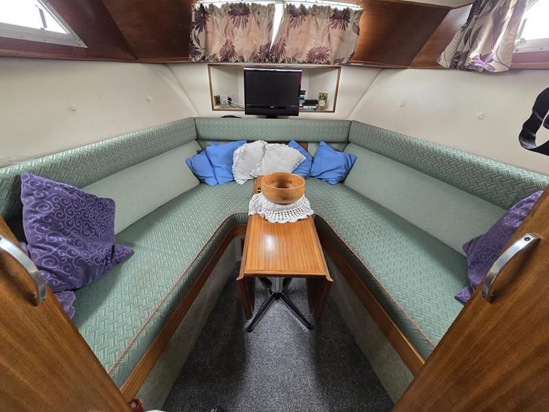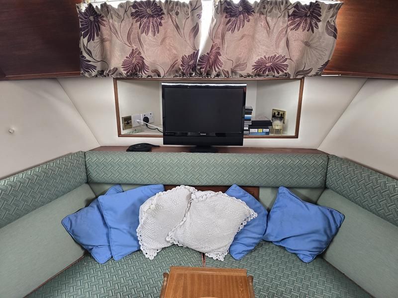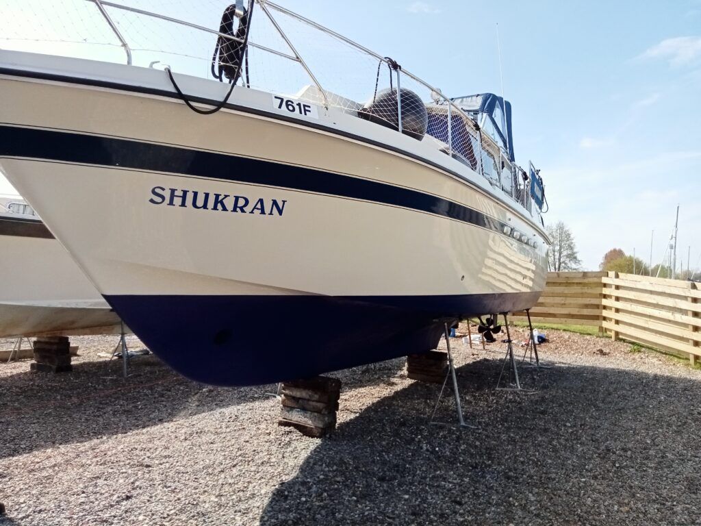 Broom 35 European – 1978 – 2x Ford Mermaid 120hp diesels through shafts – 6 berth accommodation with two toilets and shower facility – Specification to include; Diesel warm air heating, bow thruster, Pegasus 4000 generator, holding tank, VHF, shore power and battery charger. Engines serviced Nov 24. Folding arch and screens for increased inland access. BSC 2026. A well-specified Broom 35 with desirable non-turbo engines, perfect for extended inland cruising!