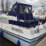 BROOM 35 EUROPEAN – 1973 – Twin Perkins 145HP Diesel Engines. 6 berths in 2 cabins, 2 toilets to holding tank and 1 shower. Webasto heating, Battery Charger, Shore power, Electric anchor winch, Garmin GPS, VHF radio. BSSC until 2019. A lovingly maintained example of these versatile cruisers benefiting from full engine service in 2015. JUST REDUCED