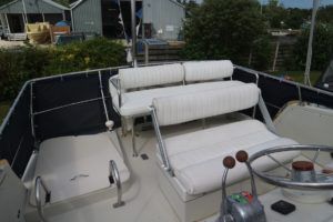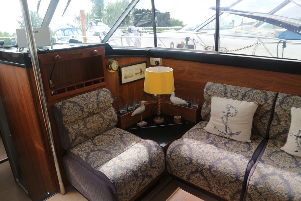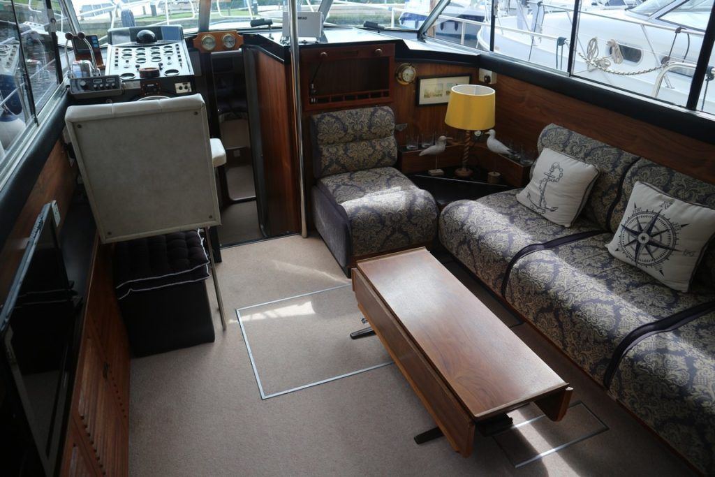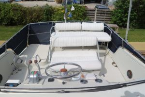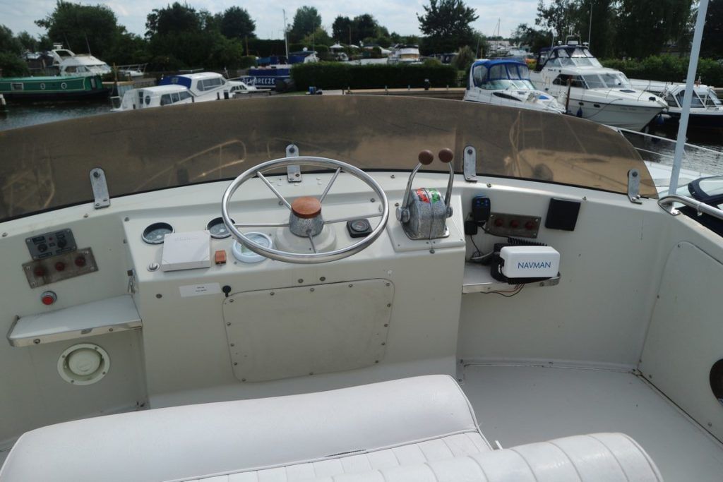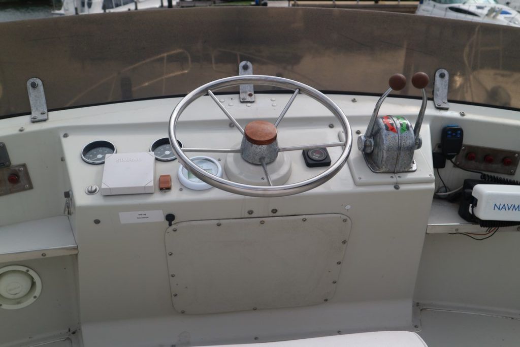 BROOM 35 SEDAN – 1981, twin Perkins T6354 150HP diesel engines. 4 berths in two cabins (plus extra 2 in saloon), toilet and shower, BSC 2021, shore power, battery charger, holding tank, electric toilet, heating system, navigation equipment, flybridge covers, new cockpit seating. A well loved family cruiser, in excellent condition. Well worth a look!