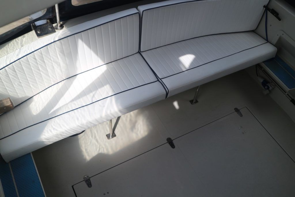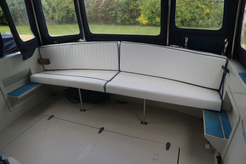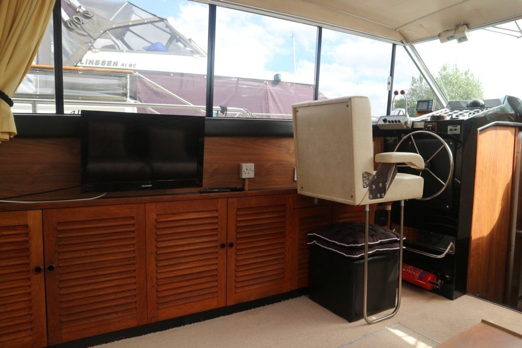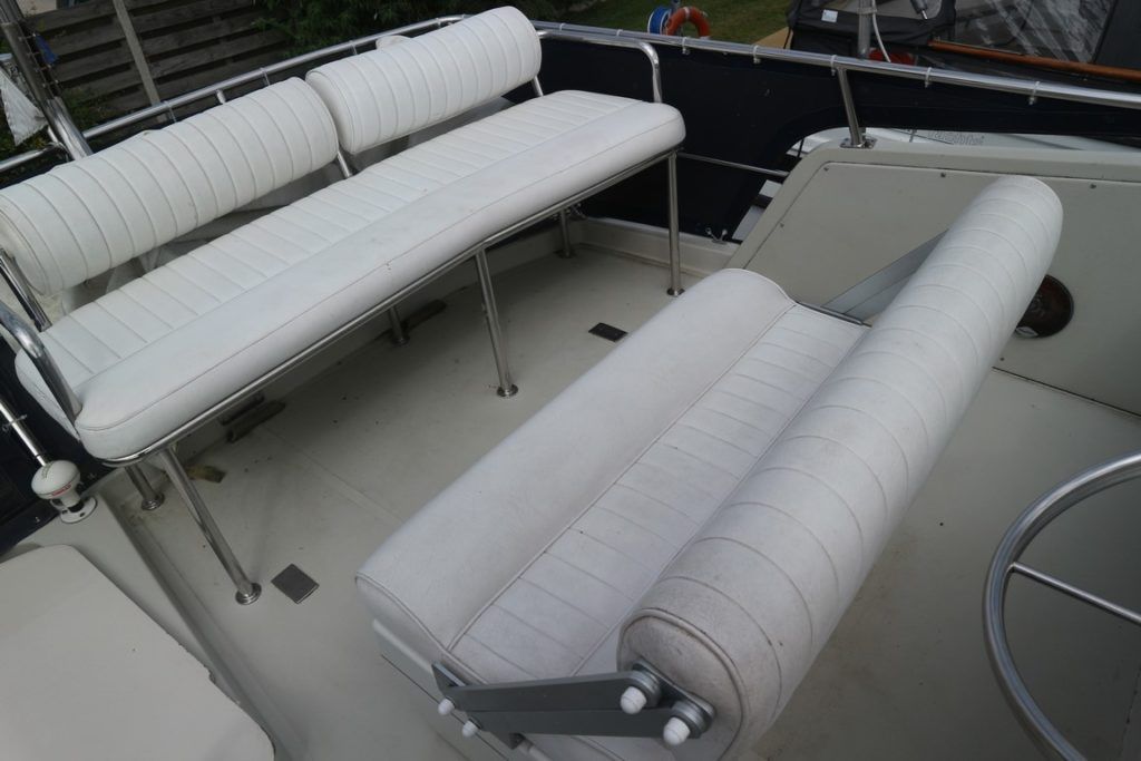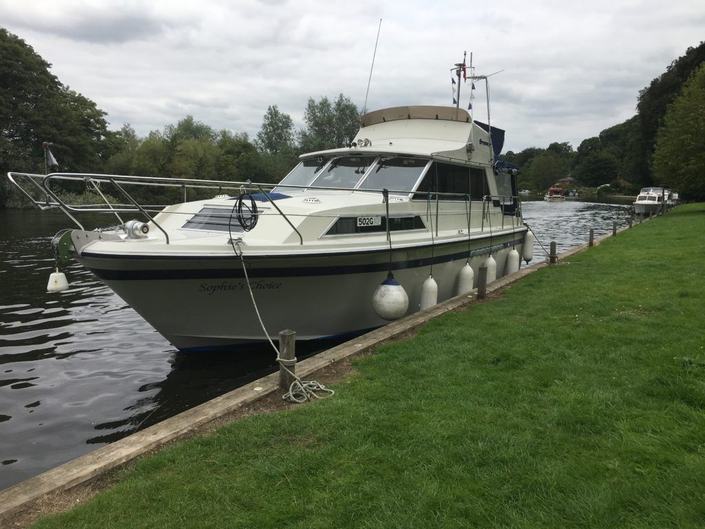 BROOM 35 SEDAN – 1981, twin Perkins T6354 150HP diesel engines. 4 berths in two cabins (plus extra 2 in saloon), toilet and shower, BSC 2021, shore power, battery charger, holding tank, electric toilet, heating system, navigation equipment, flybridge covers, new cockpit seating. A well loved family cruiser, in excellent condition. Well worth a look!