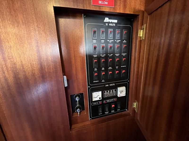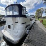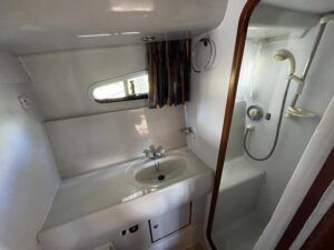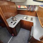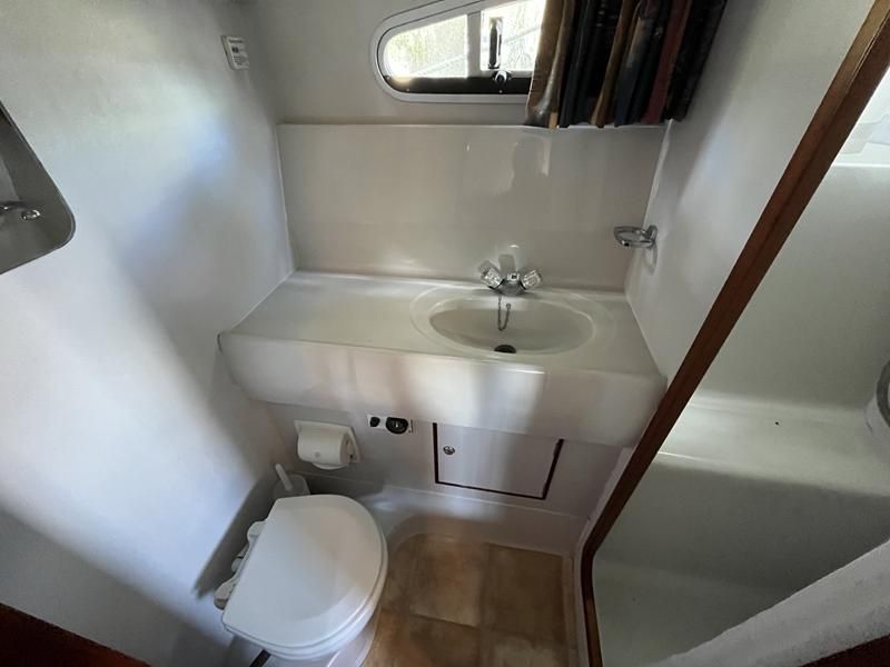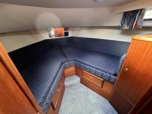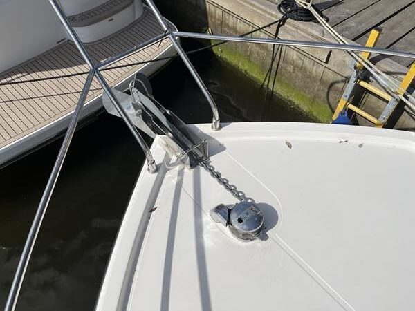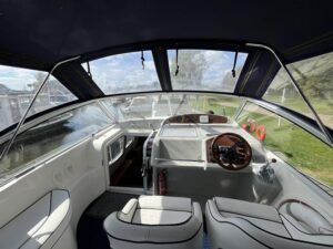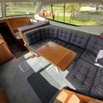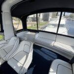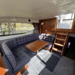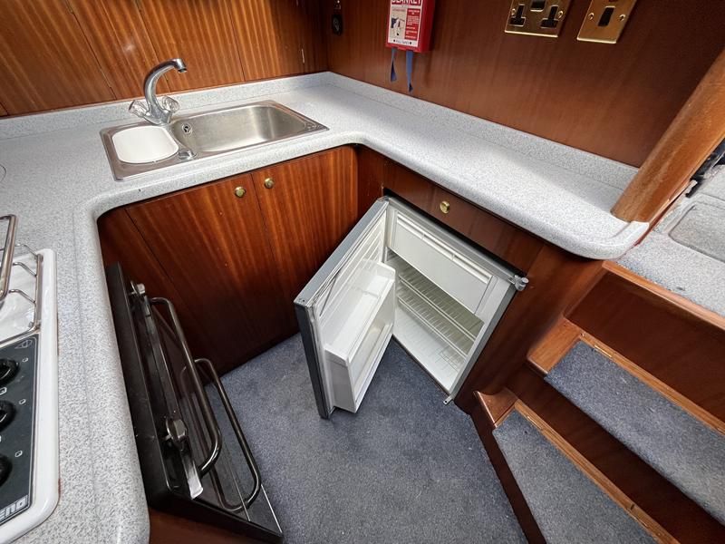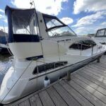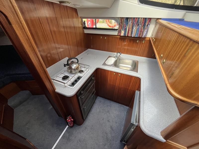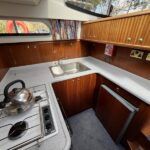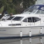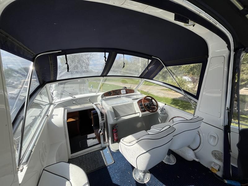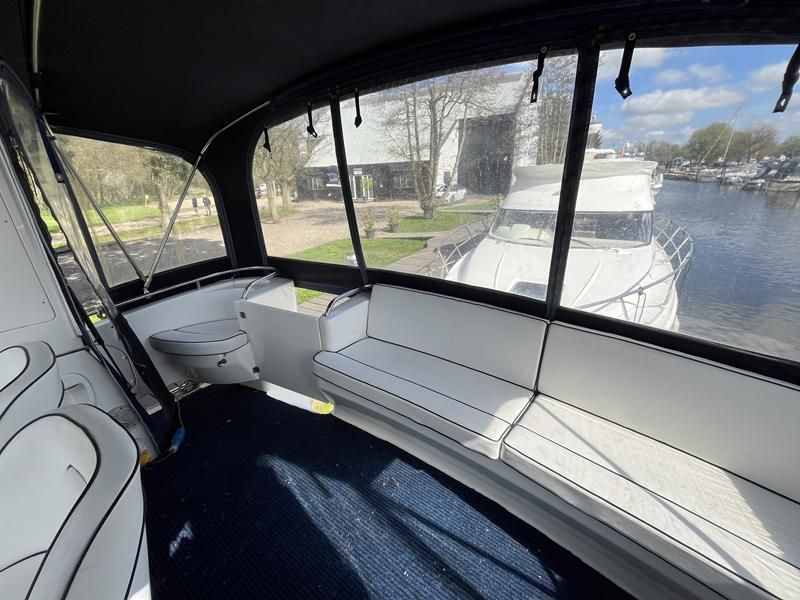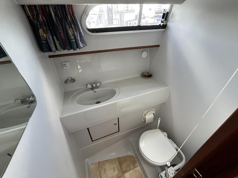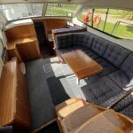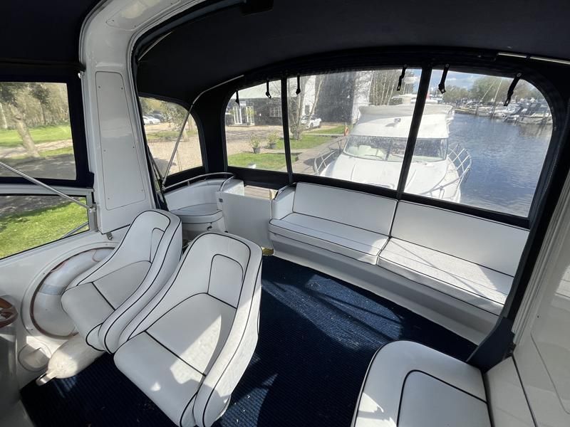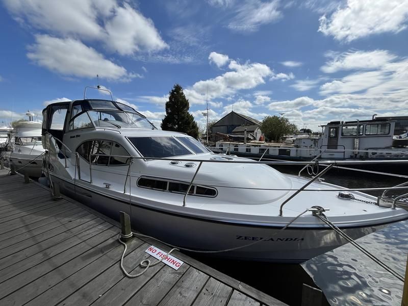 Broom 35CL – 1999 – Powered by a Perkins Sabre M135 (135hp) diesel engine through shaft. Spacious 4 berth accommodation with two toilet compartments, master en-suite shower. Specification including bow and stern thrusters, shore power, battery charger, immersion heater, warm air heating, anchor winch, electric aft toilet, folding arch for increased inland access, BSC 03/28. A popular model in the Broom range boasting a large island double en-suite master cabin, comfortable and economical cruising.