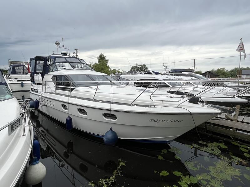 Broom 37 – 1991 – Powered by 2 x Volvo TAMD61A 306hp Diesel engines through shafts. 6 berth accommodation over two cabins and saloon with 2 x toilet/shower compartments. Specification including bow thruster, 2.8kw Generator, shore power, battery charger, immersion, warm air heating, synthetic teak to cockpit, full canopy with folding arch and screens, Davits, Garmin GPS map, Radar, autopilot, VHF, Speed & depth log. BSC expires 2026. A spacious family motor cruiser, built with the larger engine option delivering exciting performance at Sea!