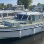 Broom 37 Continental – 1973 – 2x Perkins HT6345 145hp diesels. Six berth accommodation with two toilets and a shower. Specification to include; Shore power, immersion fully equipped galley, GPS/chartplotter, warm air heating, full cockpit canopy and more. Engine serviced and antifouled 2023. A timeless classic from Broom, providing generous accommodation space, dual helm stations, and convenient sliding doors on both sides of the saloon for easy access.