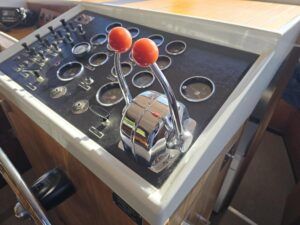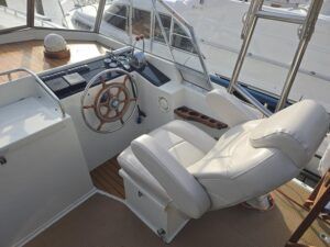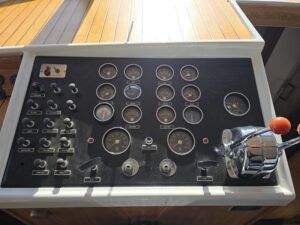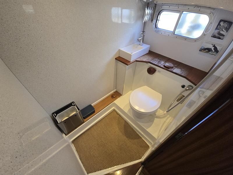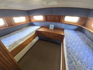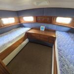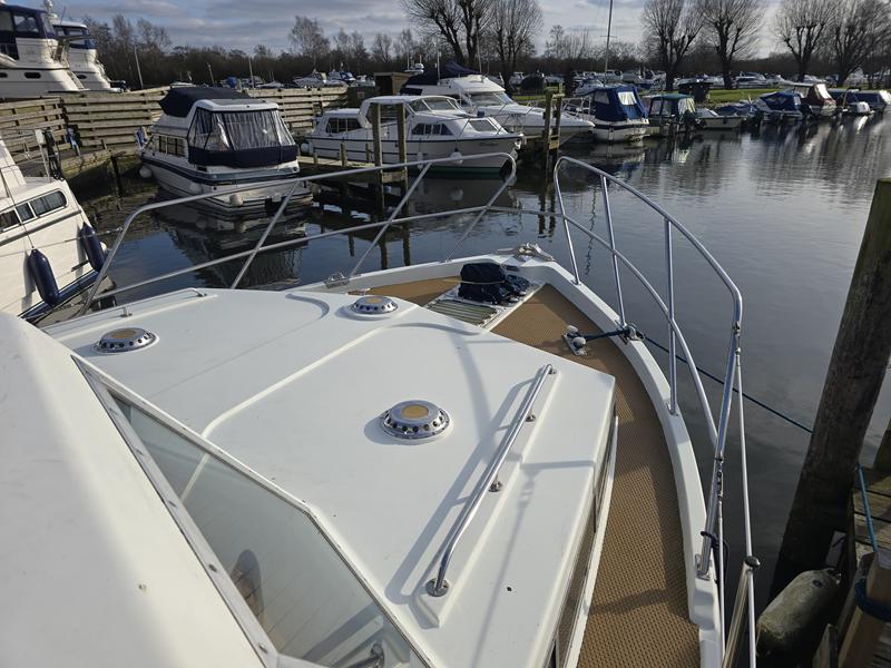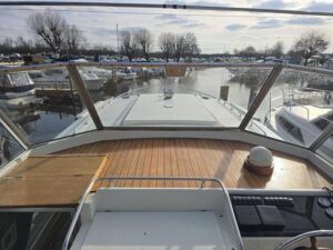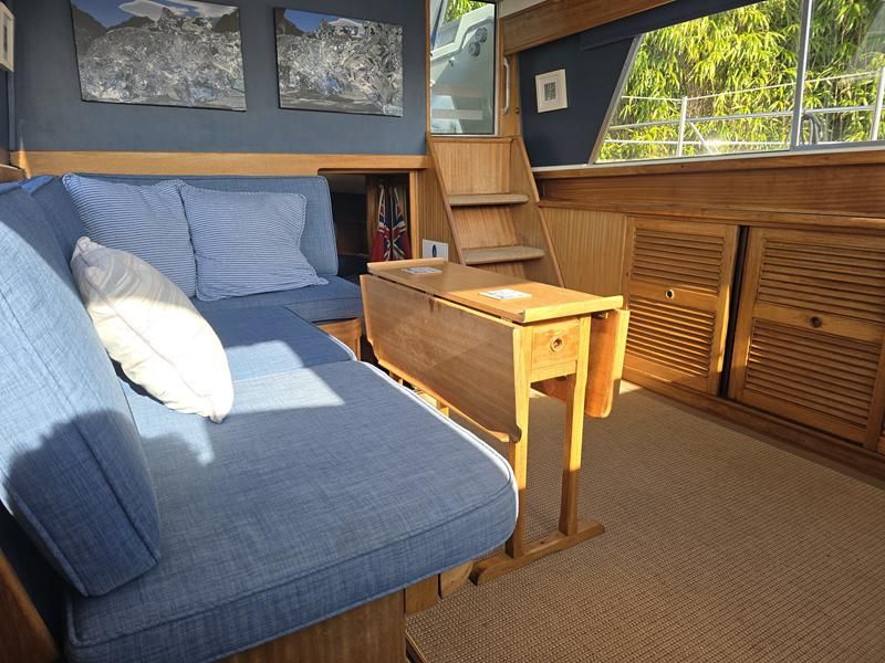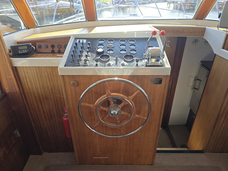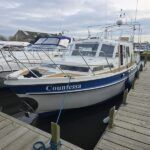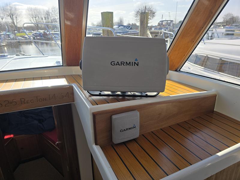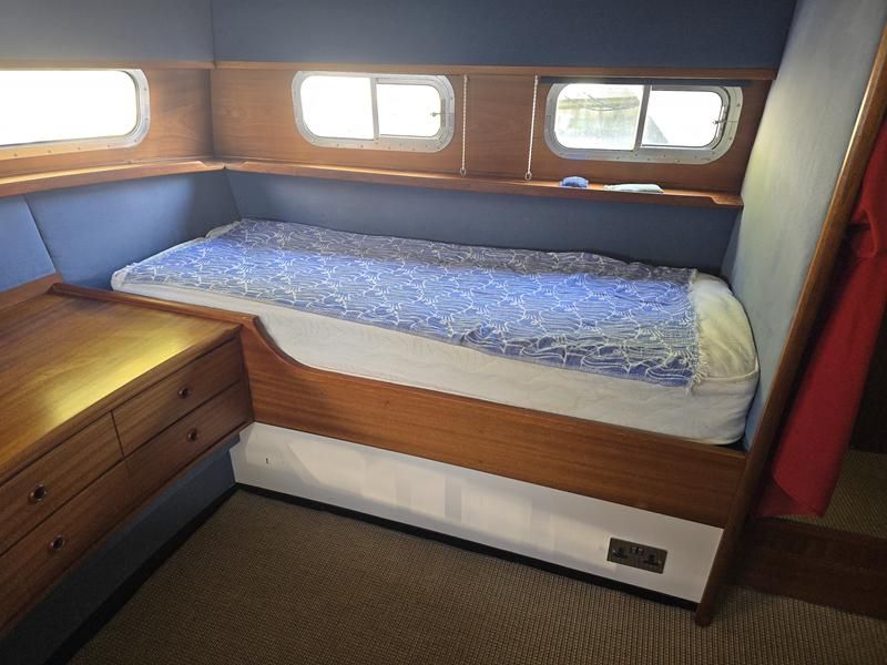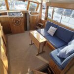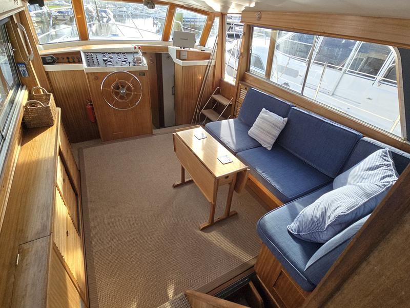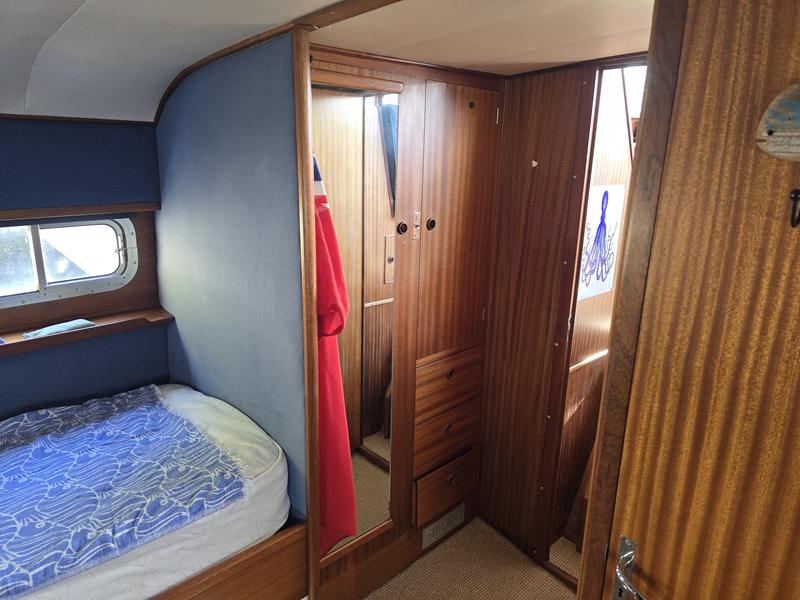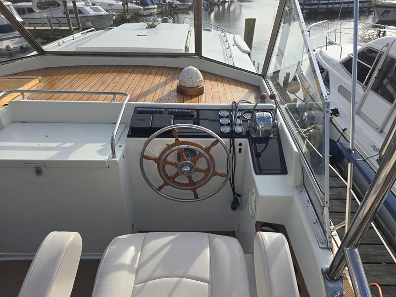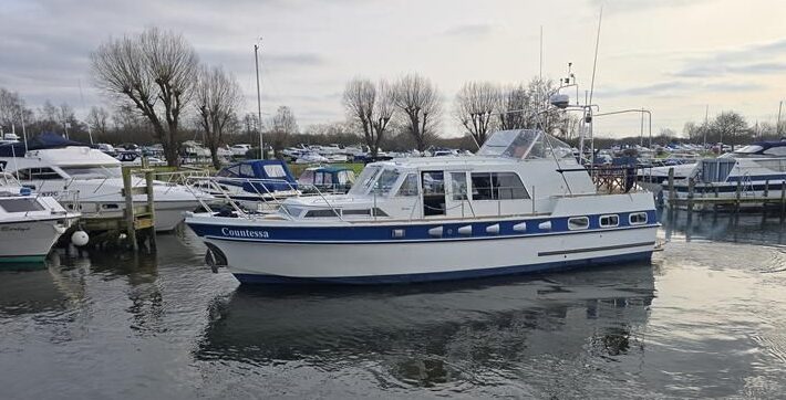 Broom Continental 37 – 1975 – 2x Perkins HT6354 145hp turbocharged diesel engines on shafts. Comfortable accommodation for up to five in two cabins plus the saloon, with a separate toilet and shower compartment. Specification includes electric anchor winch, shore power, hydraulic steering, battery charger, inverter, holding tank, Garmin navigation package with autopilot, chartplotter, radar, depth sounder, and AIS. 8x 12V batteries (new). A fantastic opportunity to acquire a comprehensively updated Broom Continental, economical for coastal cruising and well suited as a liveaboard. Viewing recommended.