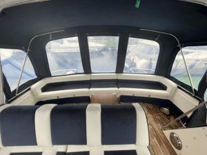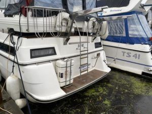 BROOM 39 – 1998 – 2x Caterpillar 3116 350hp diesel engines through shafts – 6 berth accommodation with two toilets and two showers – Specification to include; Warm air heating, bow thruster, generator, shore power supply with 240v sockets, charger and immersion, holding tank, trim tabs, autopilot, plotter and radar, teak cockpit and decks, electric windlass, folding radar arch and screens for increased inland access. A well-presented Broom 39 with the larger 350hp engine configuration for enhanced performance and excellent sea-keeping ability – a perfect vessel for extended offshore cruising.