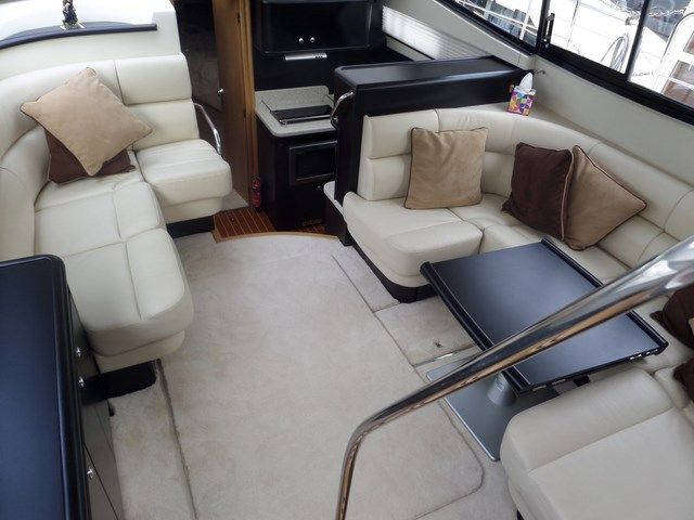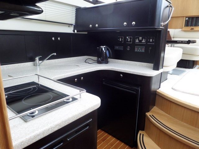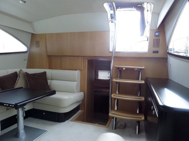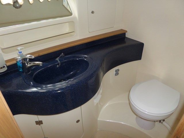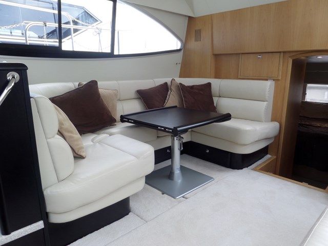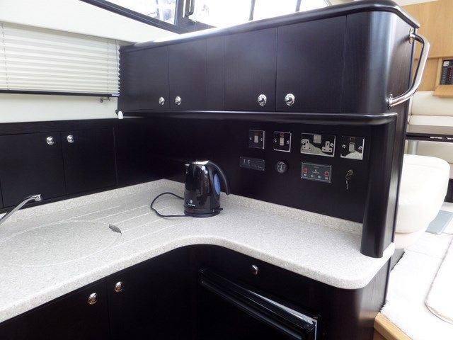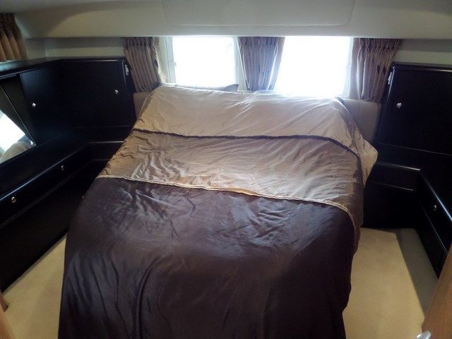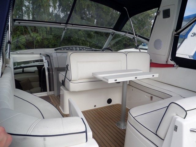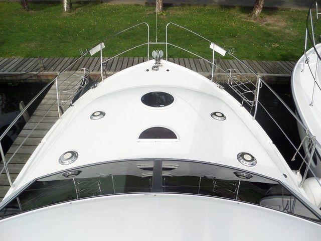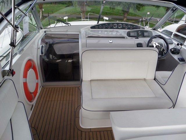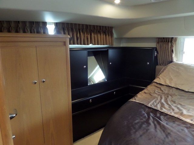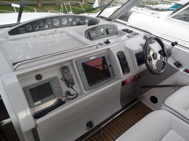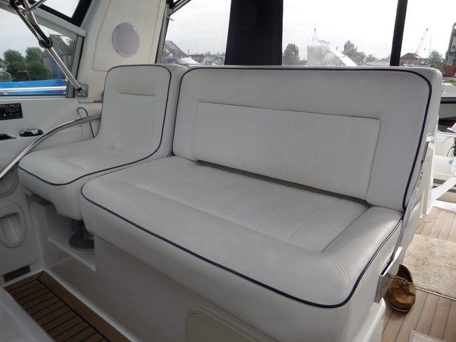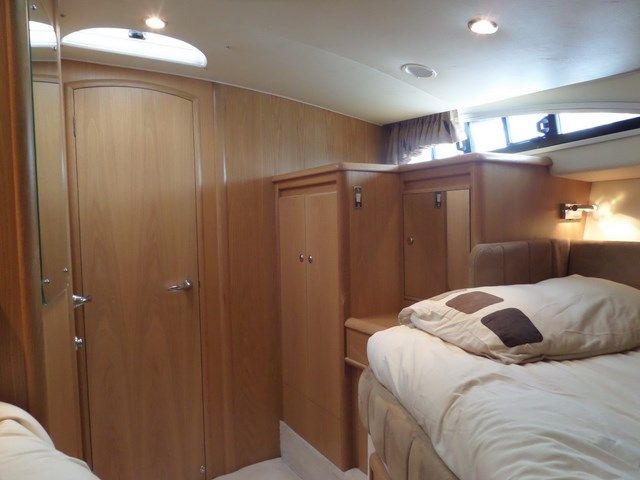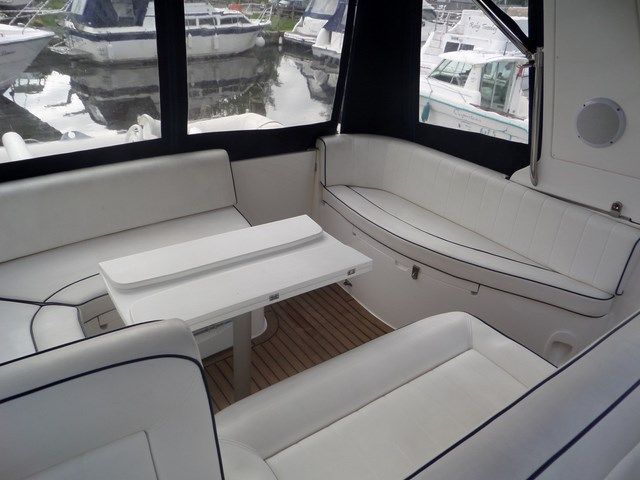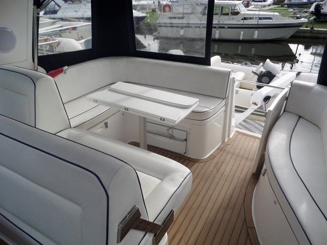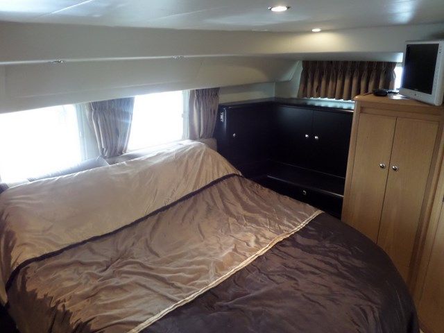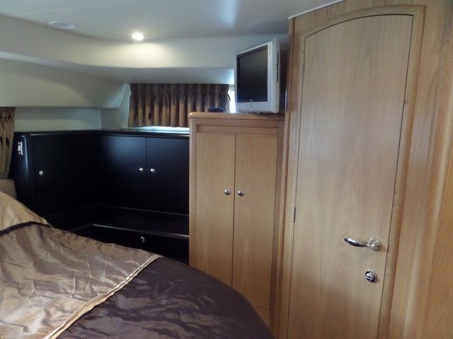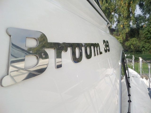 BROOM 39 2 + 2 – 2007, 2 x Volvo D6 diesel engines, finished in light oak & black stain, 4 berths in 2 cabins, 2 x toilets & showers, Boat Safety Certificate until: 2015. Great spec: shore power, battery charger, hot air heating, generator, bow thruster, holding tank, hydraulic folding radar arch, washer/dryer, Simpson Cantilever Davits including a centre console Avon rib and much more! In lovely condition, viewing highly recommended!