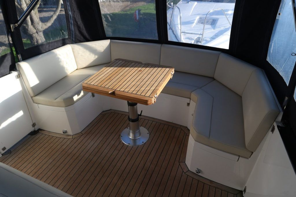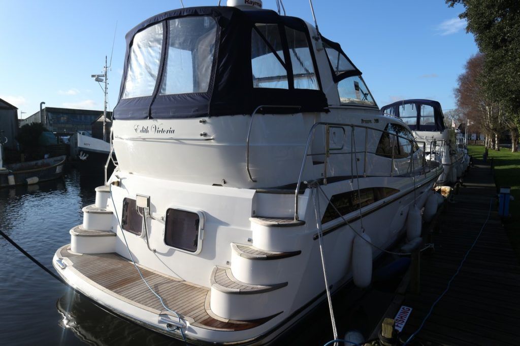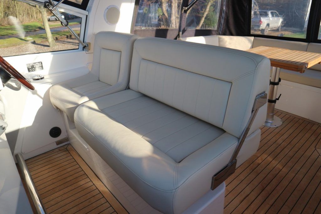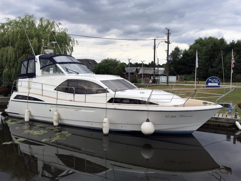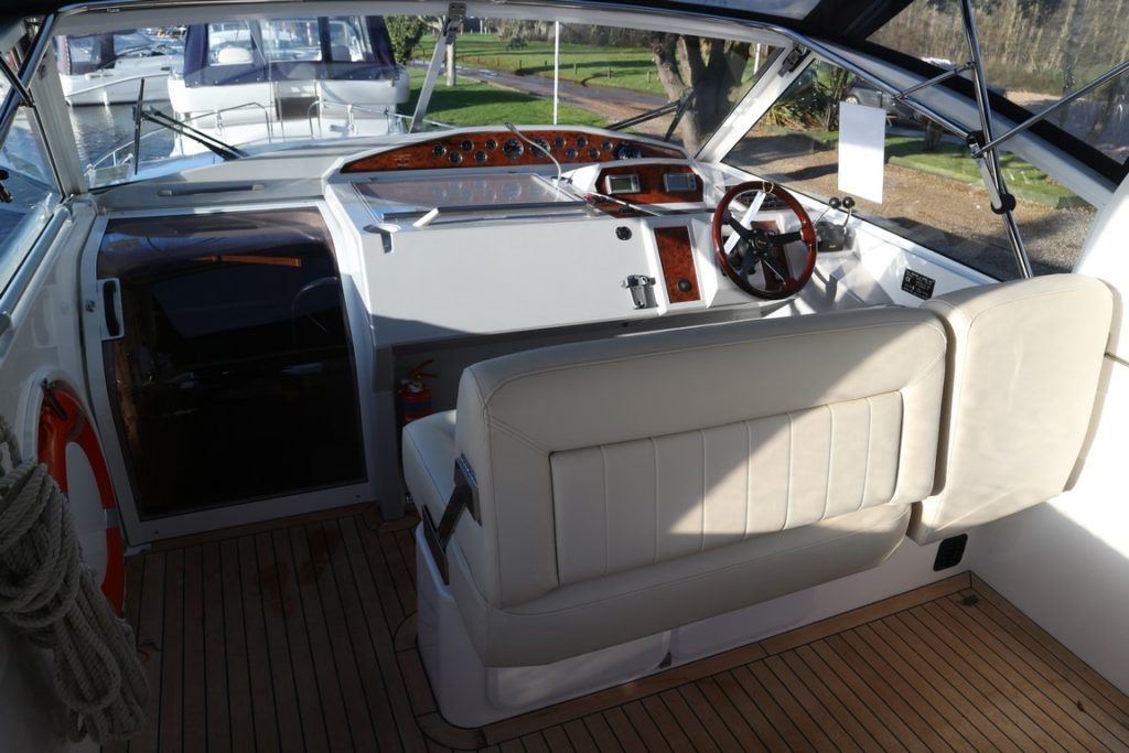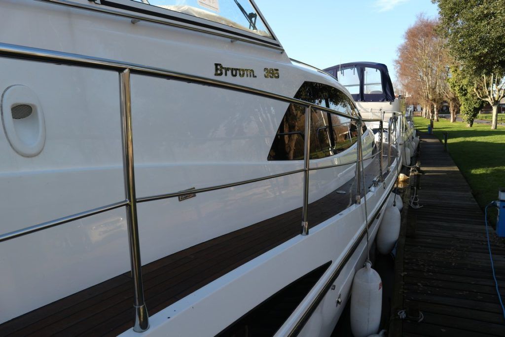BROOM 395 – 2010 – Powered by twin Volvo D4 225hp diesel engines. 6 berth accommodation with 2 toilets and 2 showers. Specification including Bow thruster, generator, warm air heating, holding tank, shore power, hydraulic folding arch, full teak laid decks and cockpit. Less than 300 engine hours! One owner from new and cruised on the Thames. A fantastic opportunity to acquire a lightly used Broom 395.