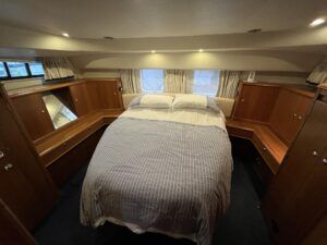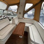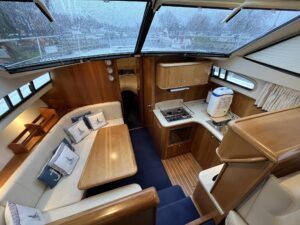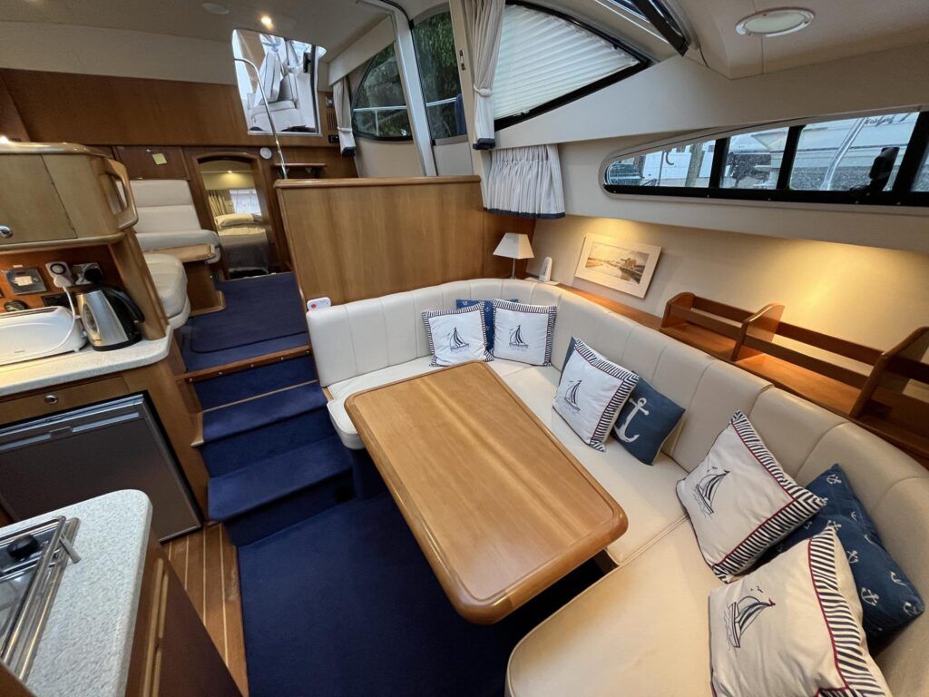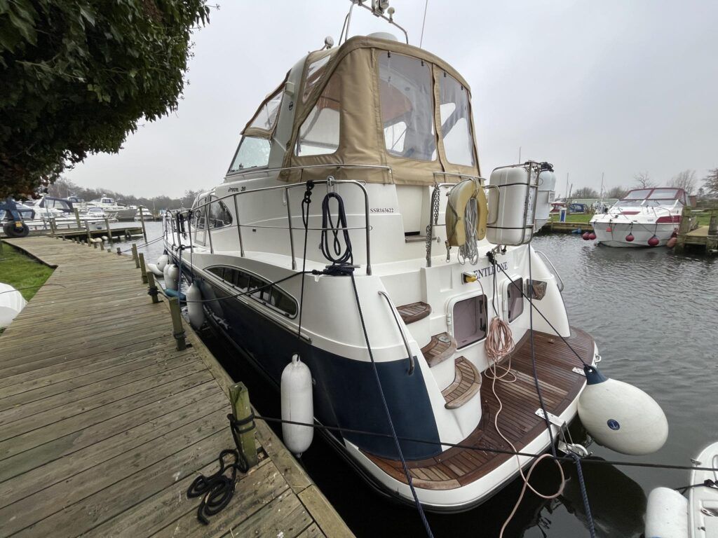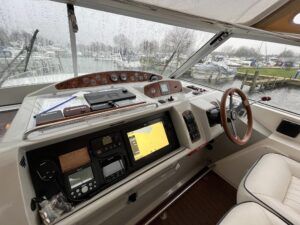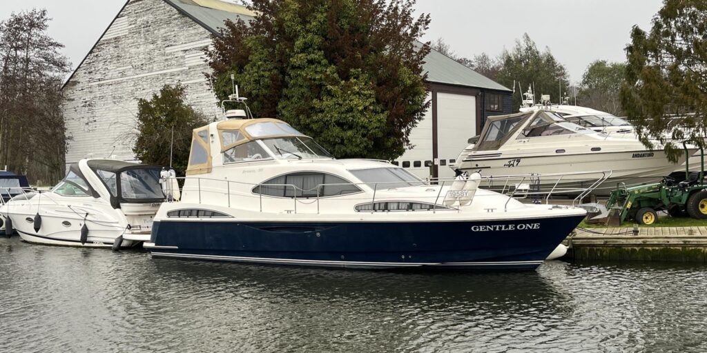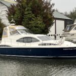 Broom 39KL – 2004 – Powered by 2 x Yanmar 260hp diesel engines through shafts. Up to 6 berth accommodation over two cabins and saloon with 2 x toilet/shower compartments. Specification including bow thruster, electric windlass, warm air heating, shore power, Victron battery charger & 2kw inverter, teak decking to platform and aft deck, electric lowering radar arch, A host of updated Raymarine nav equipment including plotter, radar, VHF and autopilot, BSC 04/27. A beautifully kept and highly maintained example of these sought after Motor cruisers, early viewing advised!