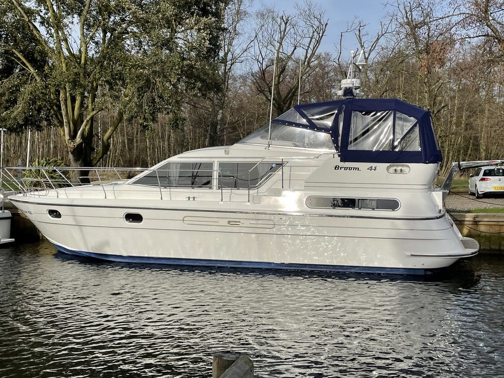 BROOM 41 – 1992, 2 x Iveco 300hp diesel engines serviced 2021, comfortable 4 berth accommodation both cabins with en-suite toilet and showers, large fully equipped galley, Garmin plotter/radar, Autohelm Autopilot, Standard Horizon VHF, bow thruster, heating, new canopy fitted in 2021, hull antifouled late 2020, compounded and polished (hull and superstructure) 2021, a beautifully finished offshore cruiser. Polar Ice is an excellent example.