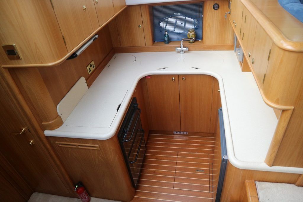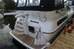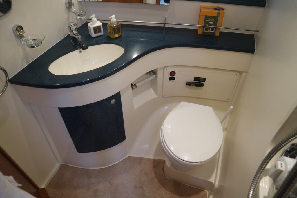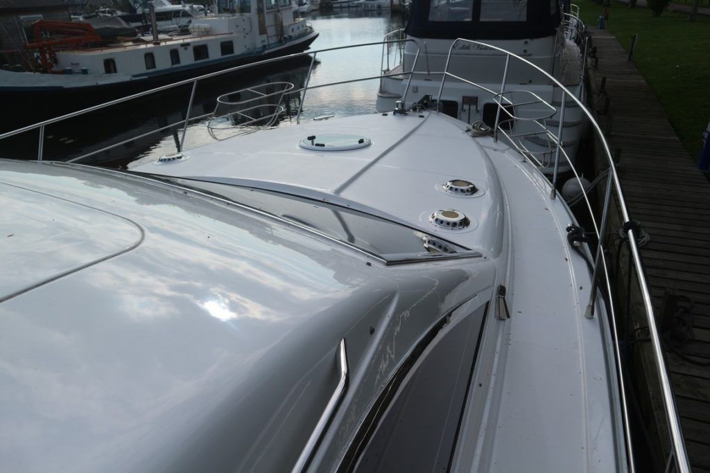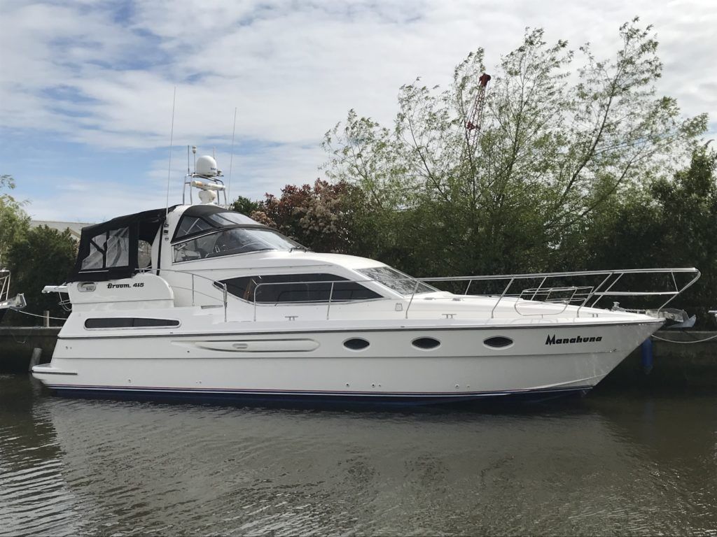 BROOM 415 – 2001 – Powered by twin Yanmar 6LY2H-STE 420hp diesels. 6 berth accommodation with two toilets and two showers. Generous specification to include; bowthruster, generator, warm air heating, electric windlass, holding tank and shore power supply. Folding arch and teak laid cockpit and bathing platform. A beautiful example of these cavernous aft cabin cruisers. NYA stock fully prepared by our Service Centre A turn-key Broom 415, presented in fantastic order throughout.