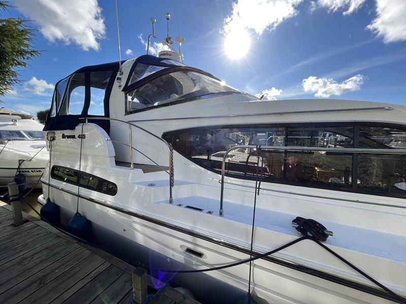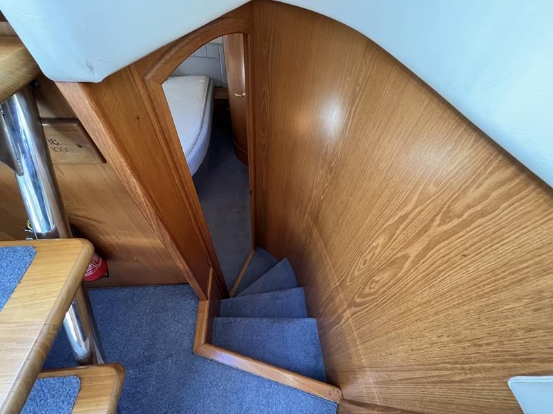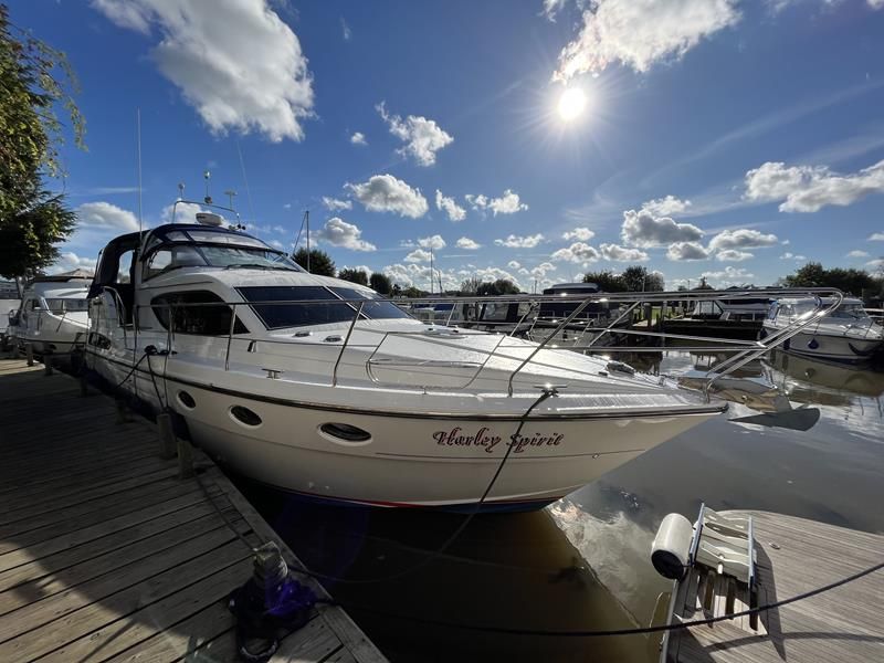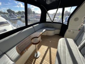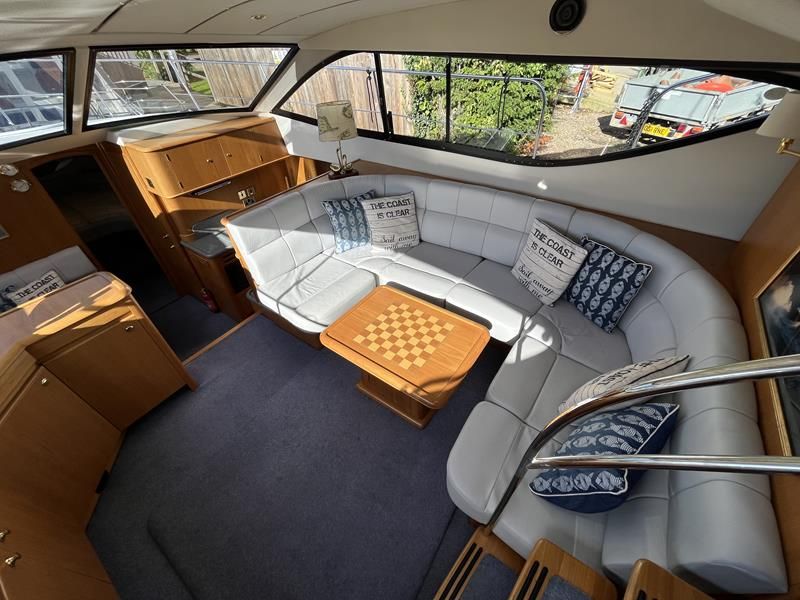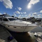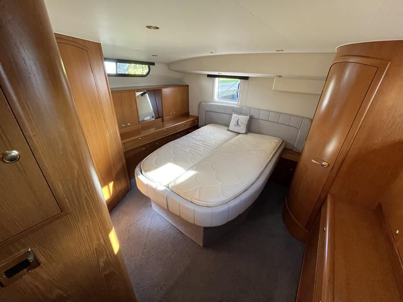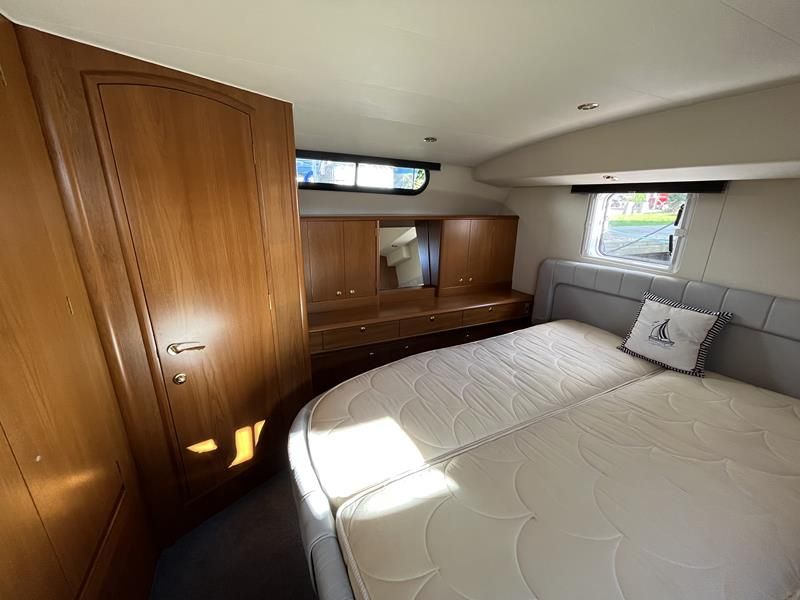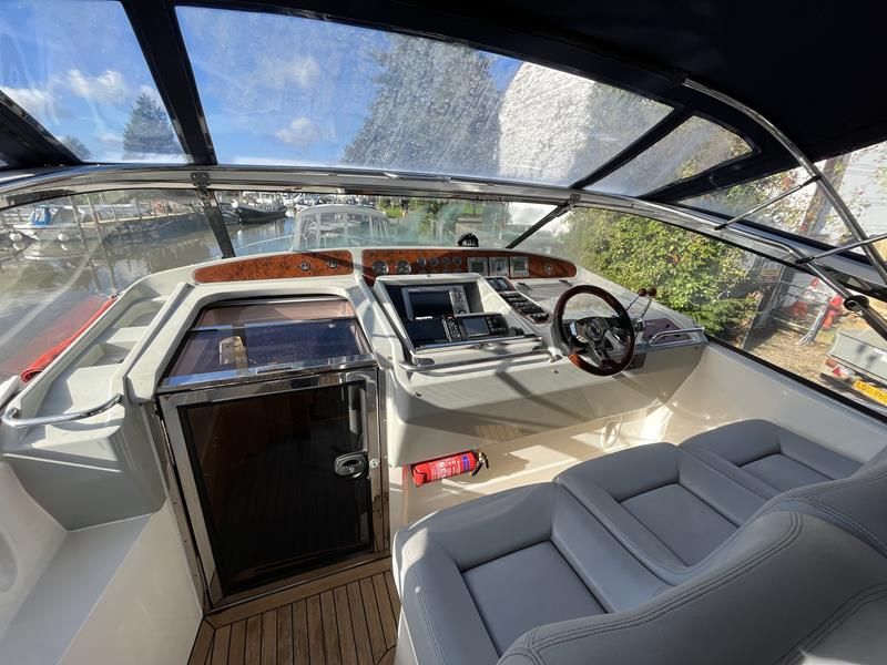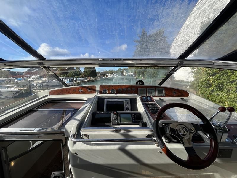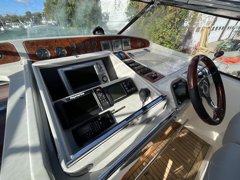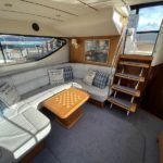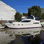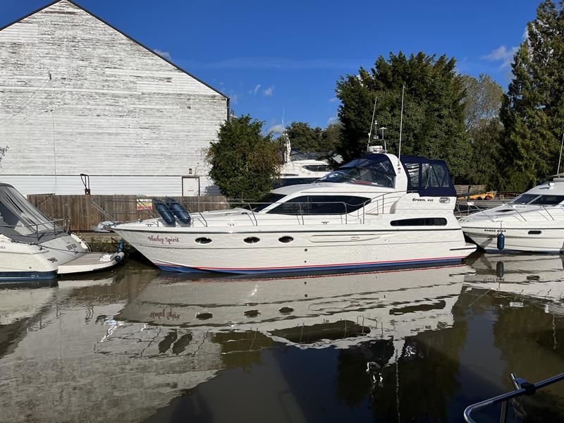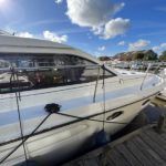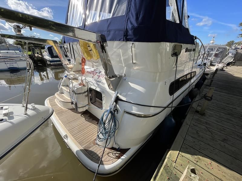 Broom 415 – 2001 – Powered by twin Yanmar 6YL2-STE 420hp diesel engines through shafts – 6 berth accommodation with 2 toilets and 2 showers. Specification including Bow thruster, 4kw generator, Webasto heating, Raymarine E90 and radar, shore power, battery charger, immersion, teak laid cockpit and bathing platform, davits. A lovely example of these very capable offshore cruisers. NYA STOCK – Fully prepared by our Service Centre.