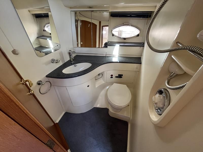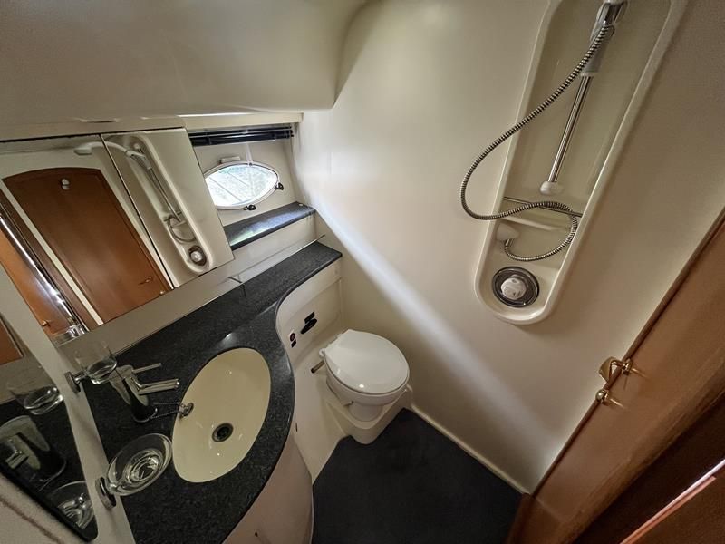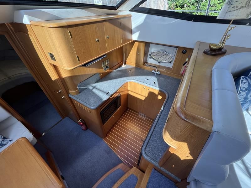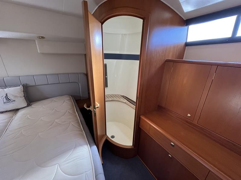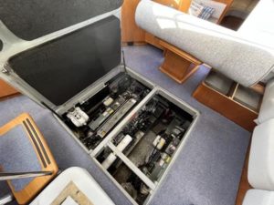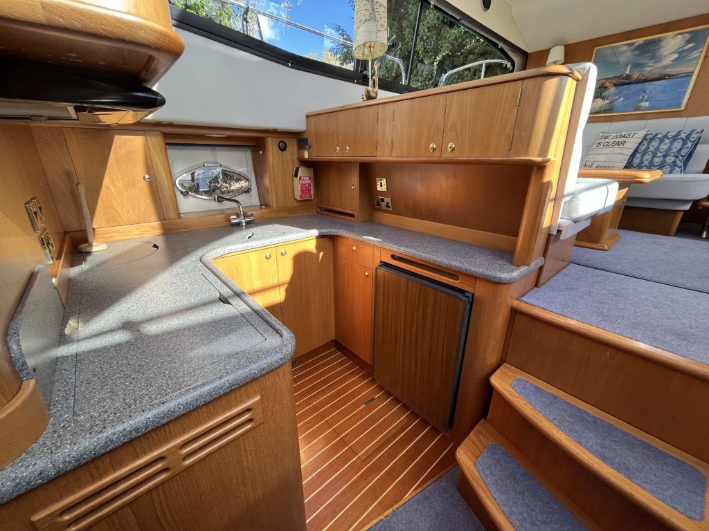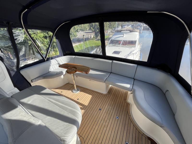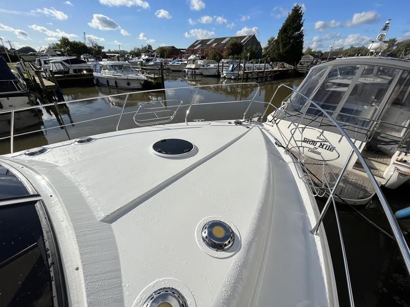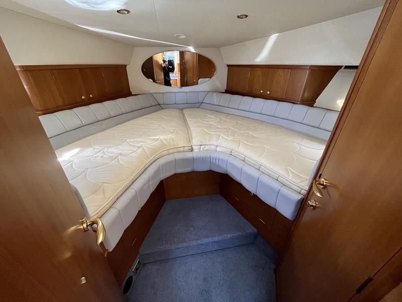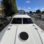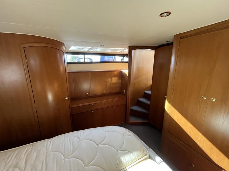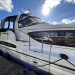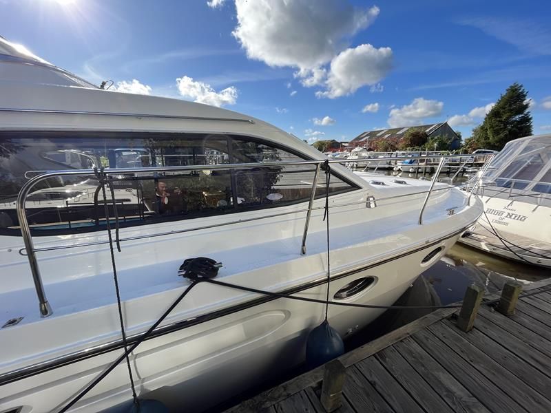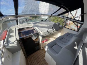 Broom 415 – 2001 – Powered by twin Yanmar 6YL2-STE 420hp diesel engines through shafts – 6 berth accommodation with 2 toilets and 2 showers. Specification including Bow thruster, 4kw generator, Webasto heating, Raymarine E90 and radar, shore power, battery charger, immersion, teak laid cockpit and bathing platform, davits. A lovely example of these very capable offshore cruisers. NYA STOCK – Fully prepared by our Service Centre.