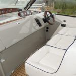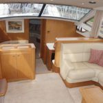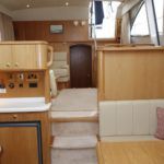 BROOM 42 CL – 2001 – Twin Yanmar 350HP Diesel Engines with low hours. 6 berths accommodation including the convertible dinette with 2 toilets and showers. Spec includes Simrad Radar / Plotter, Folding arch, Bowthruster, Washing machine, Warm air heating, beautiful finish. This is a particularly attractive 42 with the benefit of stainless windows and teak decks. Antifouled and polished September 2015.