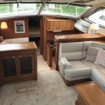 BROOM 425 – 2010 – Twin Volvo D6 370HP Diesel Engines – Dinette layout with 6 berths and 2 toilets to holding tank and diverter valve and 2 showers. Warm air heating system, 4.5KVA Fischer Panda Generator, Battery charger, Immersion heater, Bowthruster, Electric anchor winch, Hydraulic lowering radar arch, Inverter, 2 x Raymarine Chartplotters, Satellite TV and more! This is a very well specified example, beautifully presented with low hours.