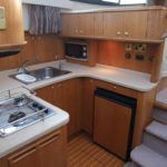 BROOM 42CL – 2003, 2 x Yanmar 6LY2A-STP 440Hp diesel engines, Cherry interior, 6 berths in 2 cabins, 2 x electric toilets and 2 x showers, holding tank, satellite TV, Simpson davits, full navigation equipment, inverter, new canopy, new carpets throughout. Recently fully compounded, polished & antifouled. She offers excellent space and accommodation, ideal for short or long term cruising!