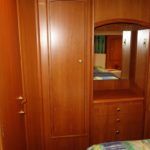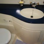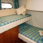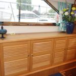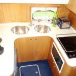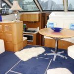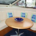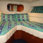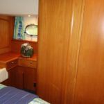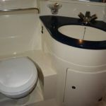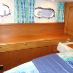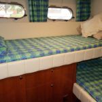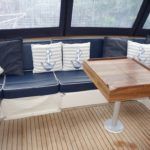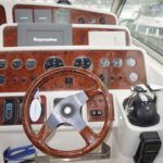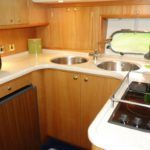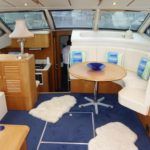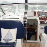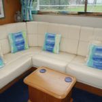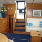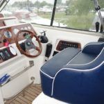 BROOM 44 – 2001 (Last one built) – Twin Caterpillar 450HP Diesel engines. 6 berths in 3 cabins with 2 toilets and 2 showers. Holding tank and diverter valve, Warm air heating system, Bowthruster, Folding radar arch, Raymarine Radar/ Chartplotter, VHF radio, Generator, Teak cabinets. This is a nicely maintained and well loved example of these cavernous cruising boats. Recent Canopy and cockpit upholstery.