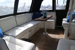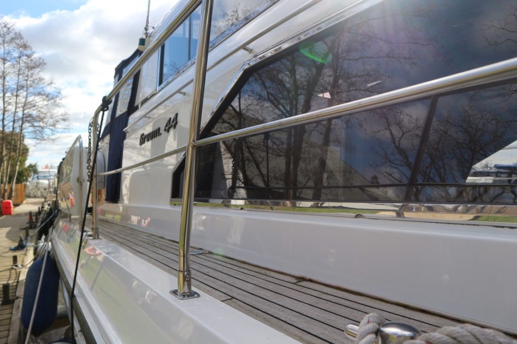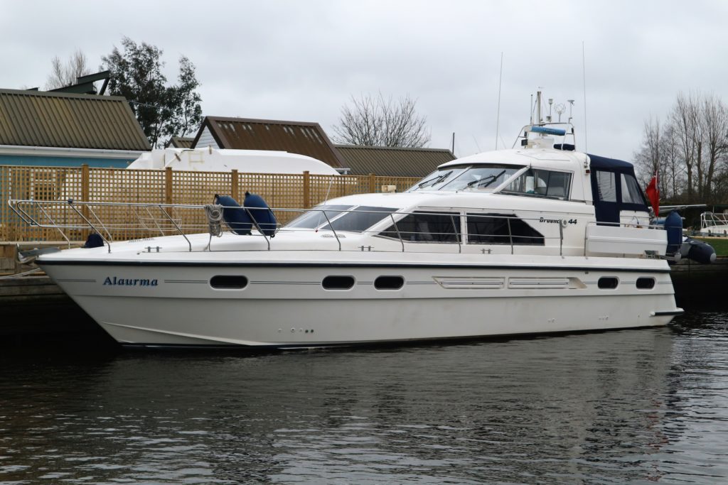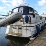 BROOM 44 – Circa. 1990 – Re-engined with twin Volvo TAMD75 EDC 480hp diesels. 6 berth accommodation with two toilets and two showers. Well specified to include; Bowthruster, Eberspacher warm air heating, Cruisair air-conditioning, a range of navigation equipment including Raymarine Hybrid touch plotter and much more! Number one of the Broom 44 production and this particular example benefits massively from the large investment upgrading to the Volvo TAMD75’s, increasing further this vessels supreme sea-keeping ability.