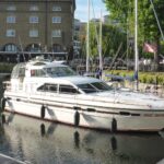 Broom 44 – 1992 – 2x Volvo Penta TAMD71B 380HP inboard diesel engines. Cavernous 6 berth accommodation in 3 cabins with two toilets and showers. Well specified including; Bow thruster, heating, air-con, shore power, battery charger, 2x electric heads, holding tank, Raymarine Axiom, Quantum radar, generator, washing machine, davits, trim tabs, hydraulic steering and much more. Antifouled and serviced 2024. New turbos 2023. A sought after Hardtop version of the Broom 44, a truly spacious, and comfortable family cruiser with excellent sea-keeping capabilities