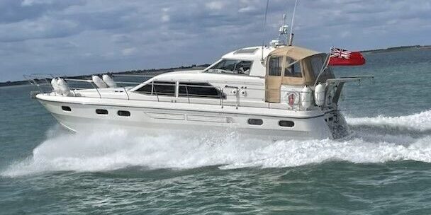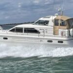 Broom 44 – 1998 – 2 x Caterpillar 3126 420 diesel engines – serviced 2024. 6 berth accommodation over three cabins including a spacious aft cabin, 2 toilets and showers. High Specification including 12.5Kva Generator, bow thruster, battery charger, shore power, immersion, warm air heating, electric windlass, Raymarine Axiom Pro 12 plotter and Radar fitted 2022, Raymarine AIS, Simrad Auto pilot, Teak laid cockpit, decks and bathing platform, new carpet 2023, new upholstery in cockpit & saloon 2023. A highly maintained offshore long distance cruiser in beautiful condition throughout.