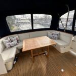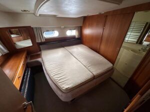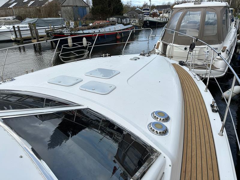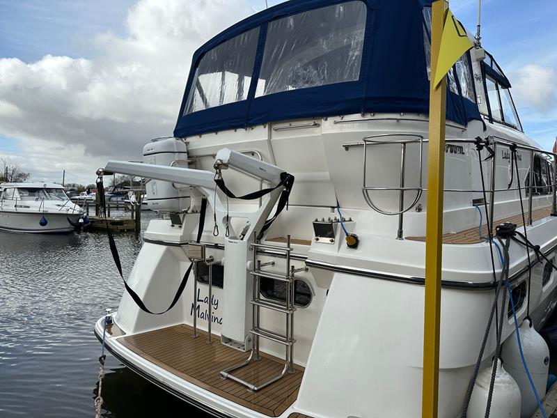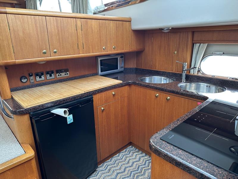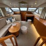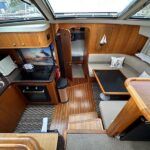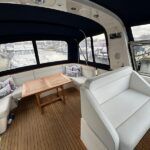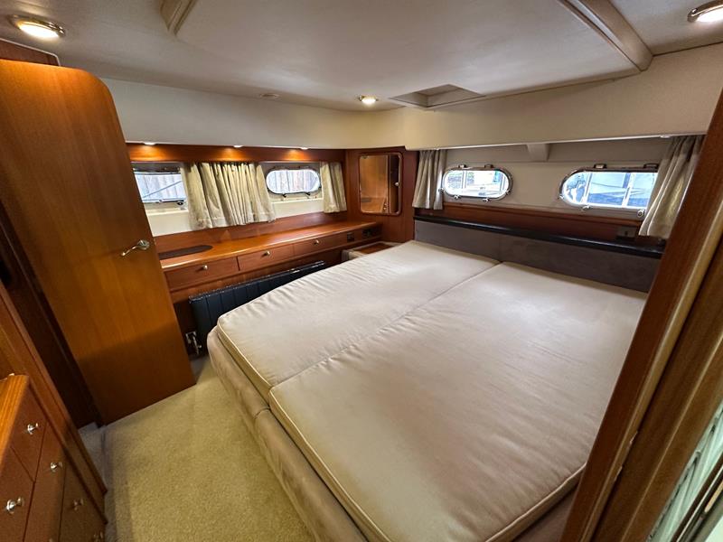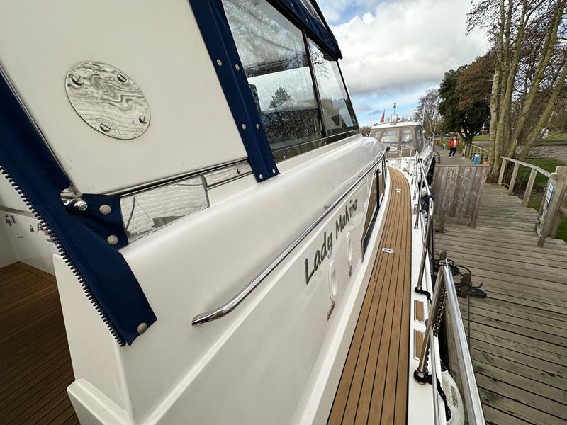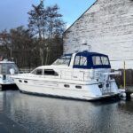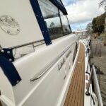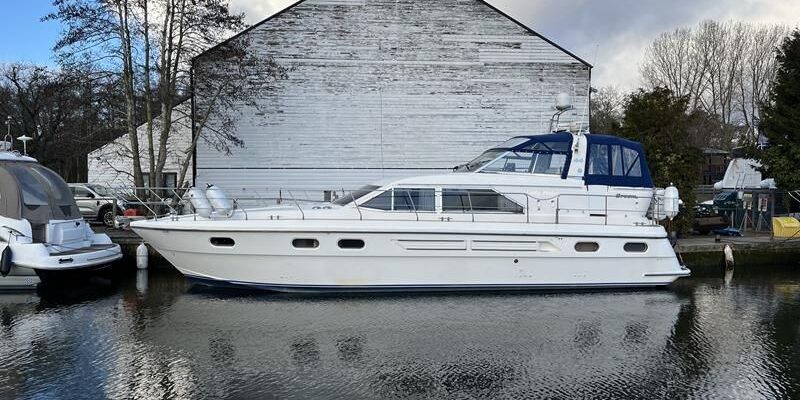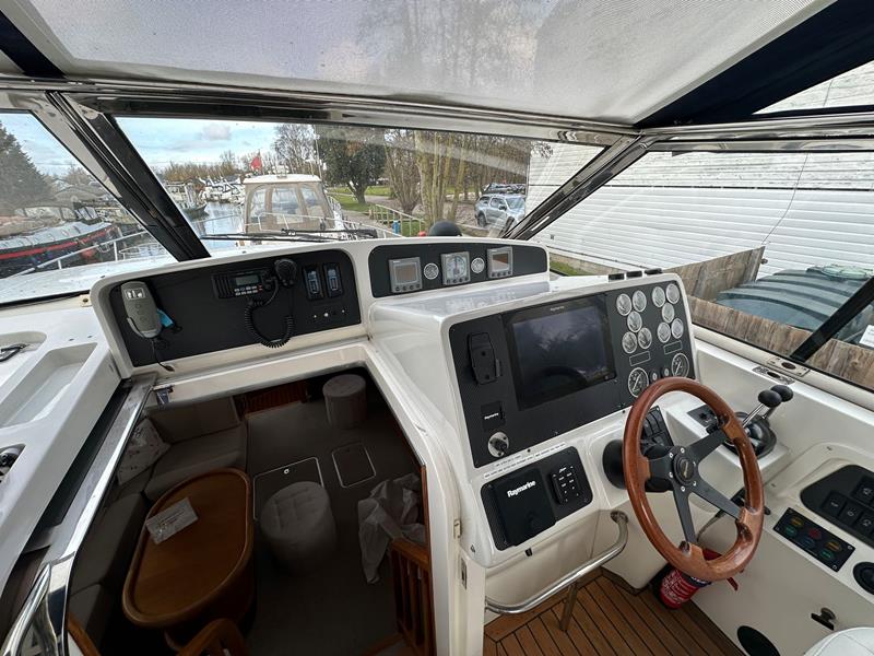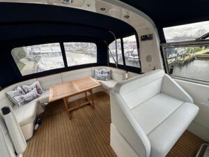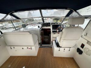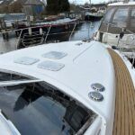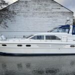 Broom 44 – 1999 – Powered by 2 x Volvo TAMD73 440hp diesel engines with EDC Throttles. Cavernous accommodation for up to six with two toilet/shower compartments. A high specification including Bow and stern thrusters, generator, shore power, battery charger/inverter, immersion, warm air heating, aircon, radiators & towel rails, Synthetic teak decking, teak laid cockpit, a host of Raymarine nav gear, Hydraulic radar arch, and much more. A highly presented and well updated example of these very capable and comfortable long range Motor Boats.
