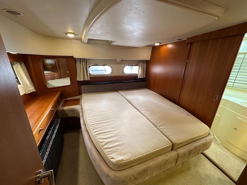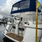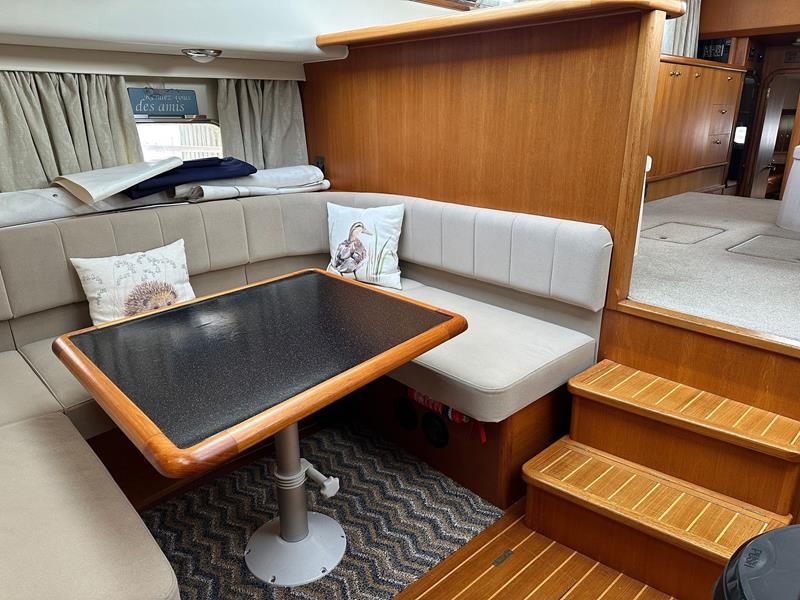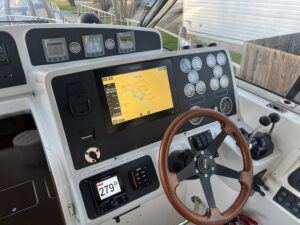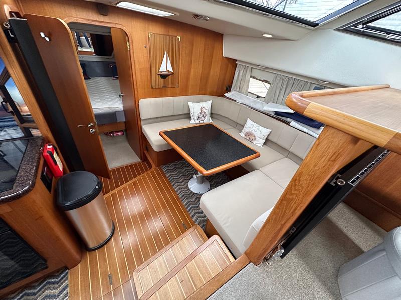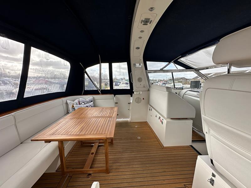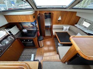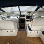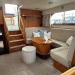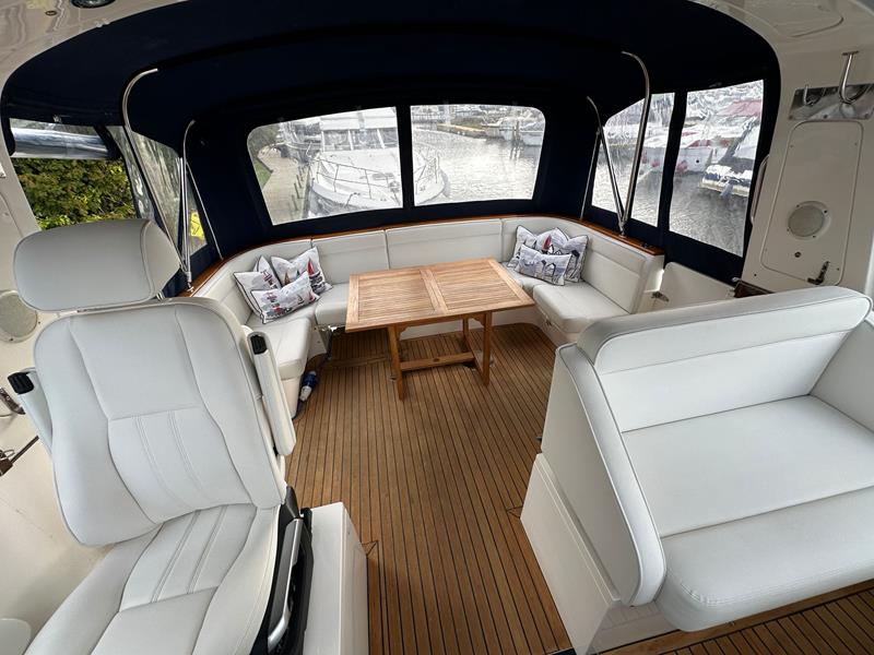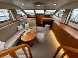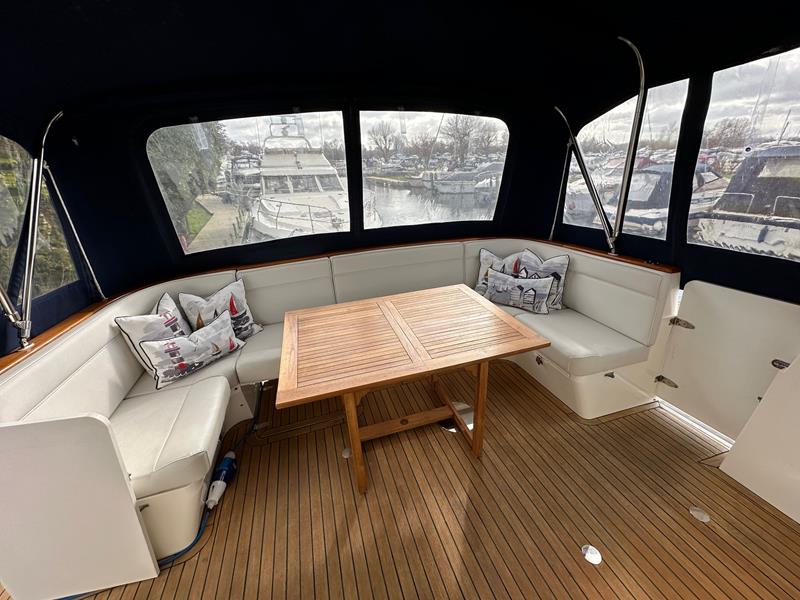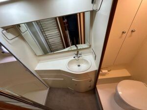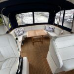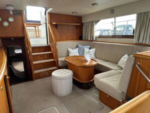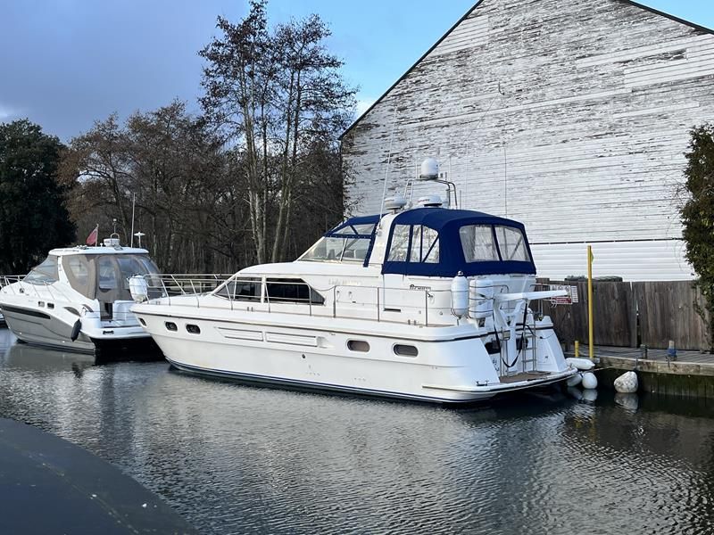 Broom 44 – 1999 – Powered by 2 x Volvo TAMD73 440hp diesel engines with EDC Throttles. Cavernous accommodation for up to six with two toilet/shower compartments. A high specification including Bow and stern thrusters, generator, shore power, battery charger/inverter, immersion, warm air heating, aircon, radiators & towel rails, Synthetic teak decking, teak laid cockpit, a host of Raymarine nav gear, Hydraulic radar arch, and much more. A highly presented and well updated example of these very capable and comfortable long range Motor Boats.