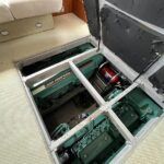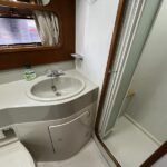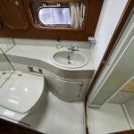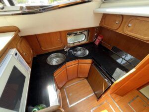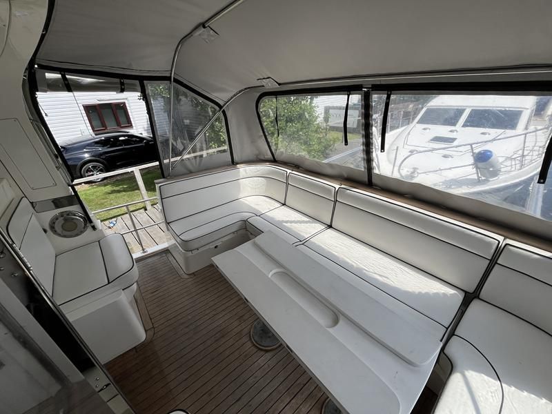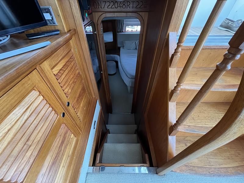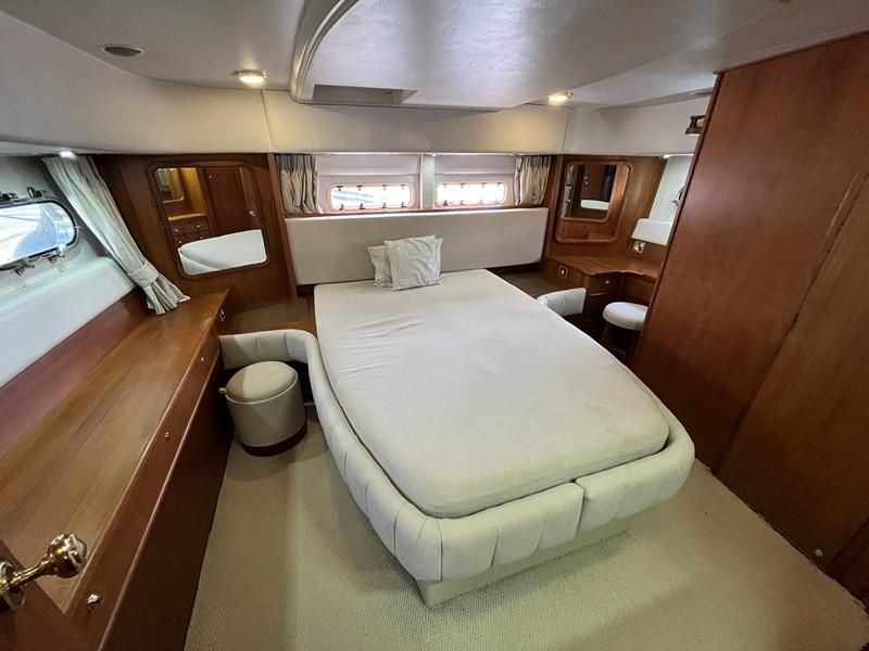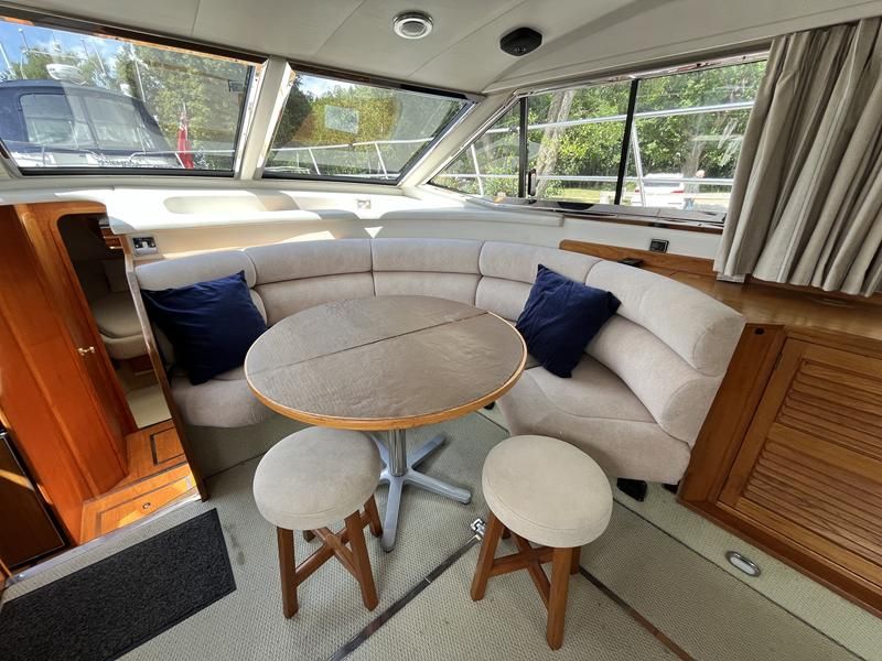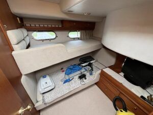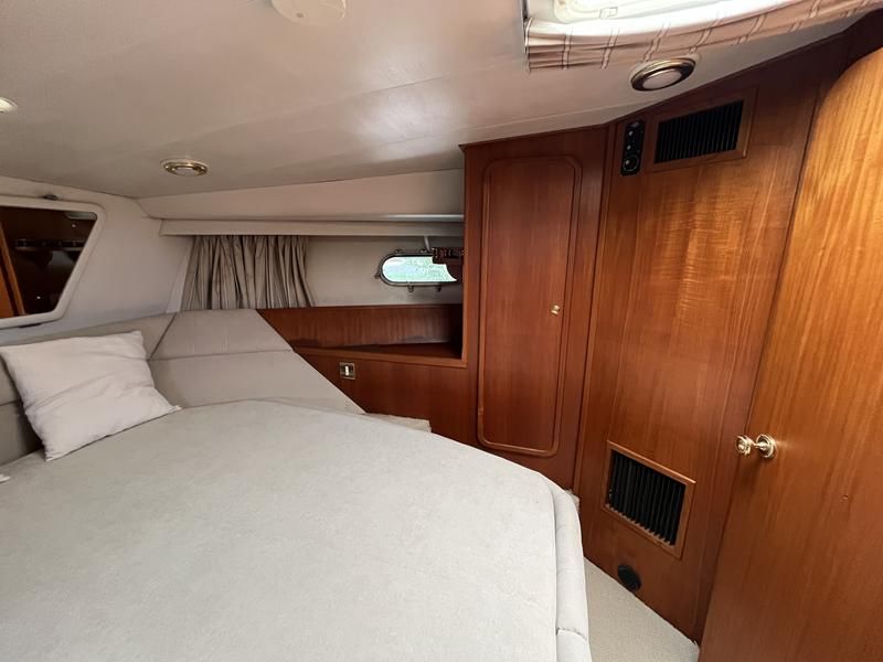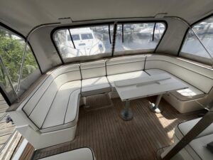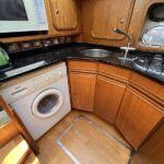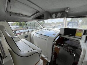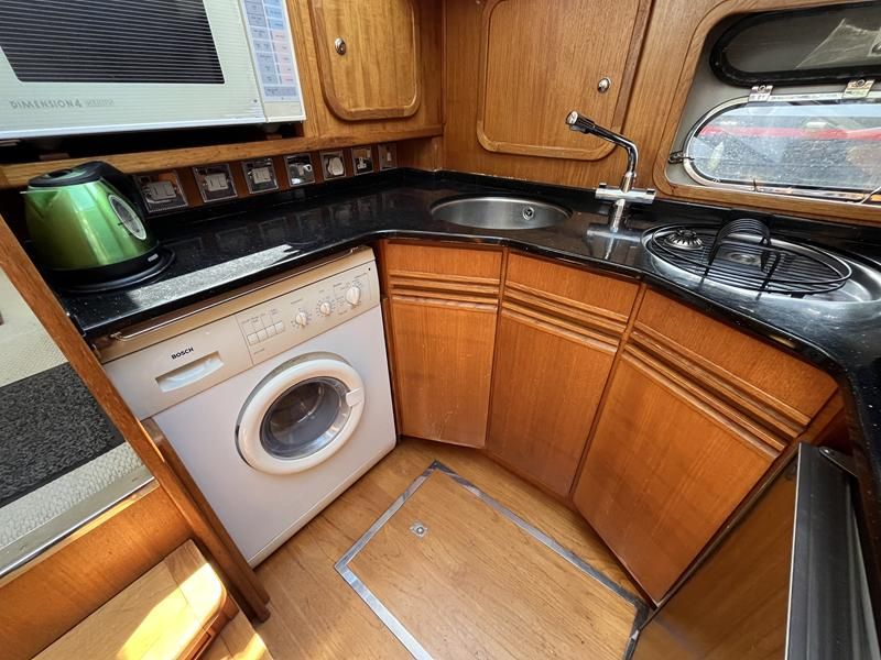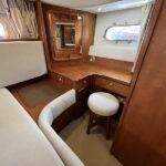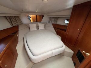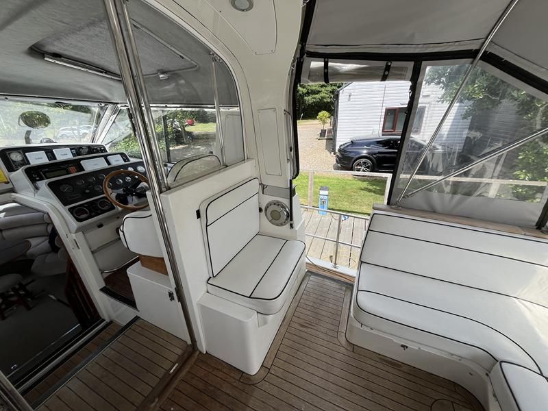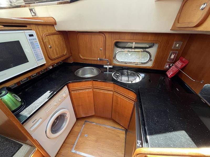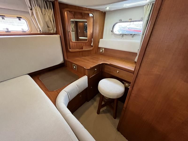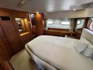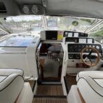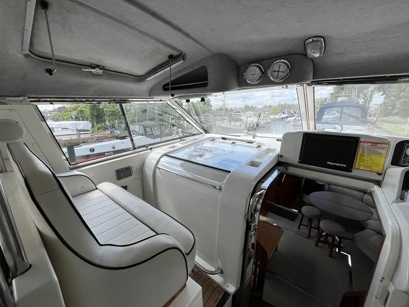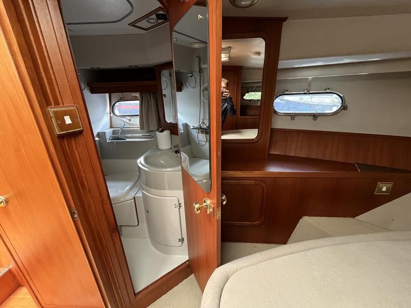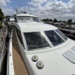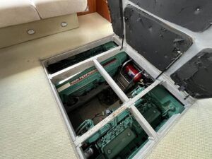 Broom 44 – 1992 – 2 x Volvo Penta TAMD71B 380HP diesel engines. Spacious 6 berth accommodation in 3 cabins with two electric toilets and showers. Well specified including; Bow thruster, warm air heating, air-con, shore power, battery charger, Raymarine Axiom, Quantum radar, washing machine, davits, trim tabs, hydraulic steering, holding tank and much more. Antifouled and serviced 2024. A sought after Hardtop version of the Broom 44, a truly spacious, and comfortable family cruiser with excellent sea-keeping capabilities.