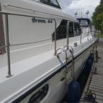 BROOM 44 – 1993 – Powered by twin Sabre 370hp diesel engines. 6 berth accommodation across 3 cabins, 2 toilet and shower facilities. Specification to include; bow and stern thruster, holding tank, eberspacher heating system, generator, shore power supply with immersion and battery charger, full navigation equipment including a Raymarine hybrid touch plotter, Raymarine VHF and Seatalk autopilot. A very fine example of this cavernous cruiser.