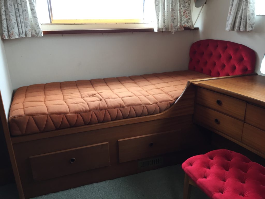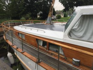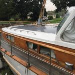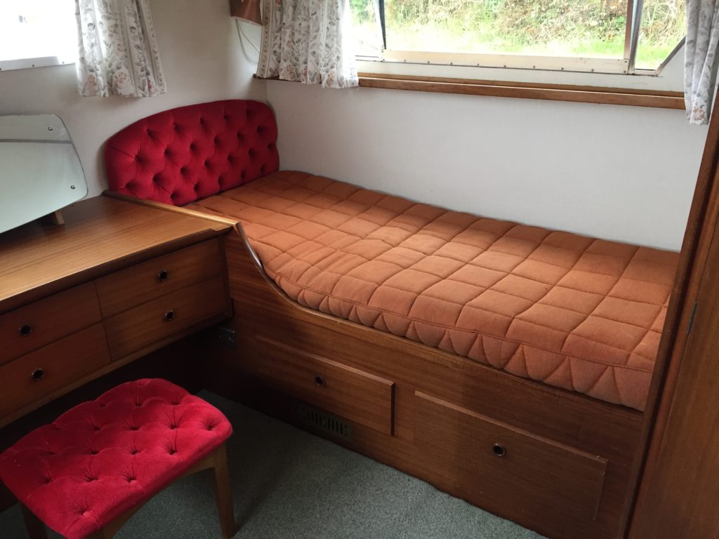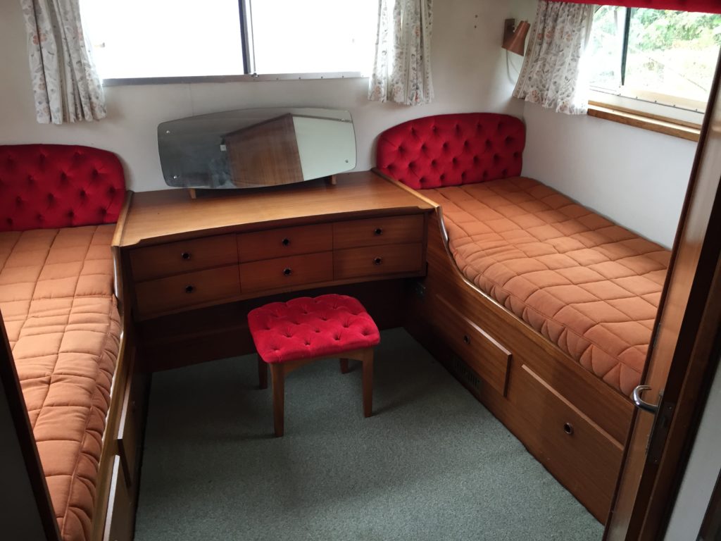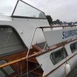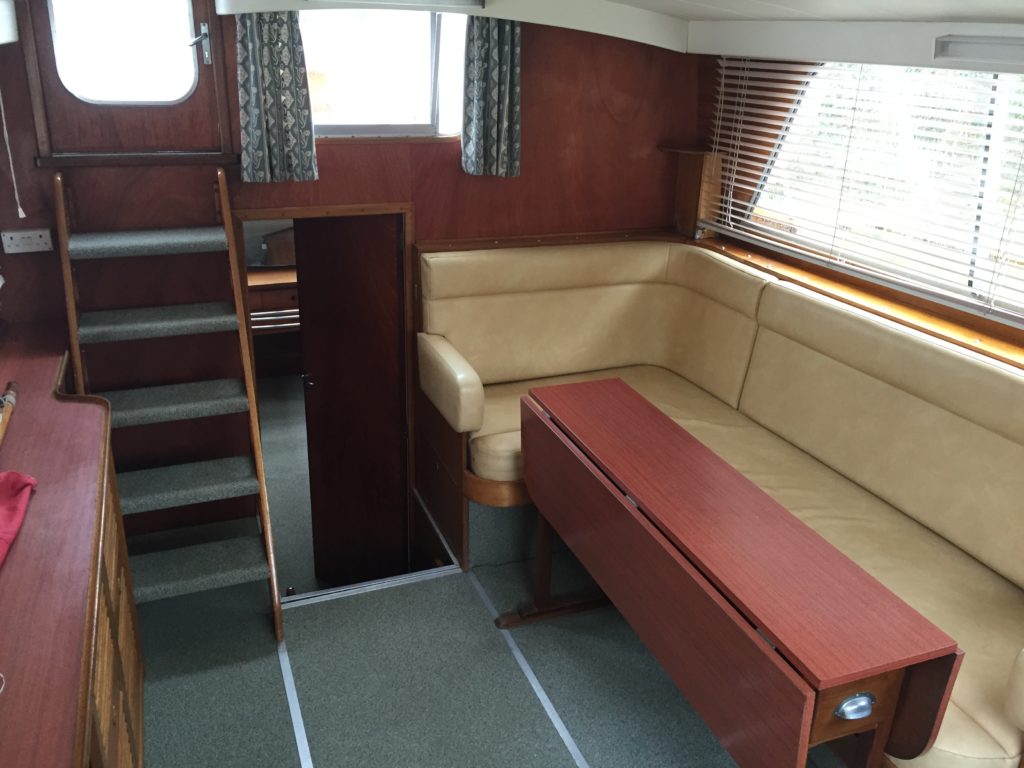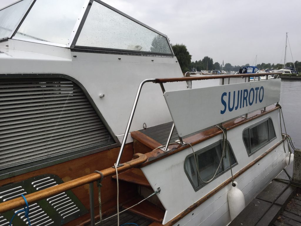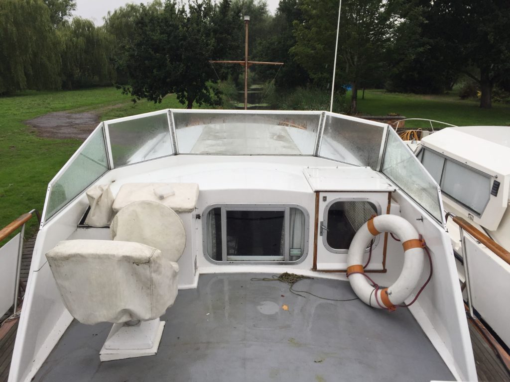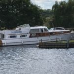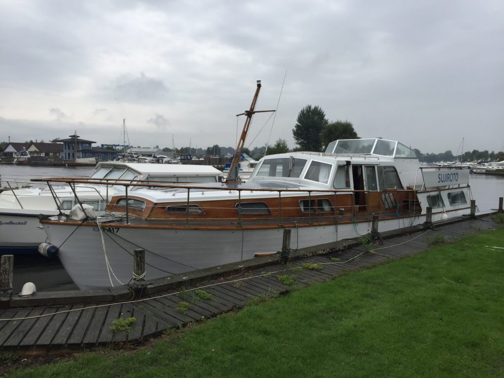 BROOM 45 – Circa 1965 – Powered by twin Ford 56hp diesels. 6 berth accommodation with one sea and one chemical toilet and one shower. Specification to include, shore power with 240v sockets, windlass, full galley facility with hot and cold water supply, engine instrumentation and full winter cover. A real classic broads cruiser, this vessel has been in her current ownership for nearly 50 years! This vintage Broom would be ideal for extended cruising on the inland waterways… Only accessible by water so viewing is strictly by appointment only!