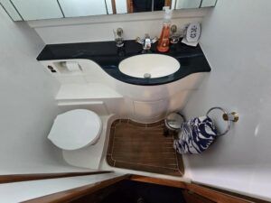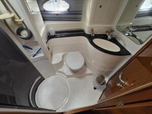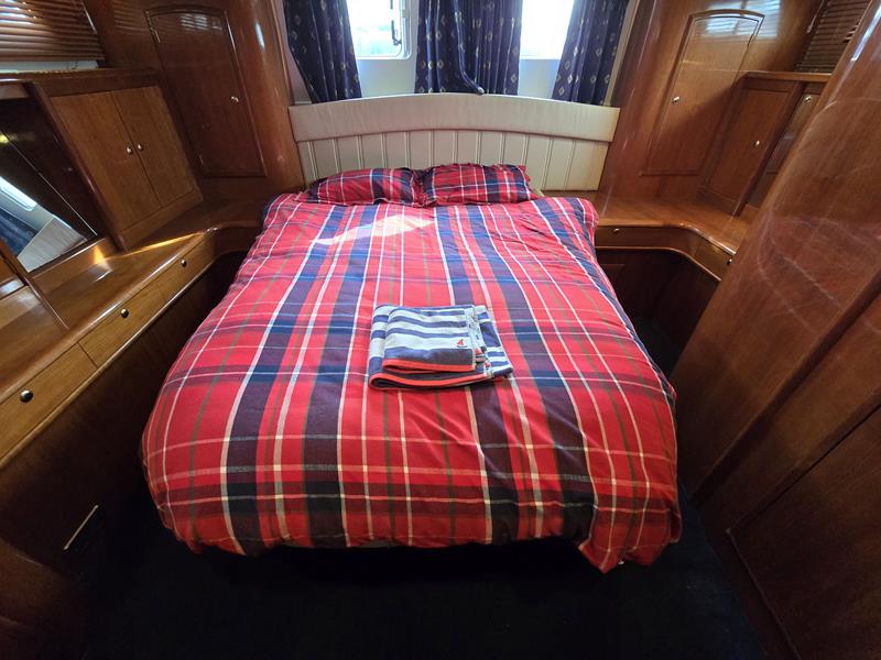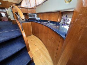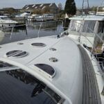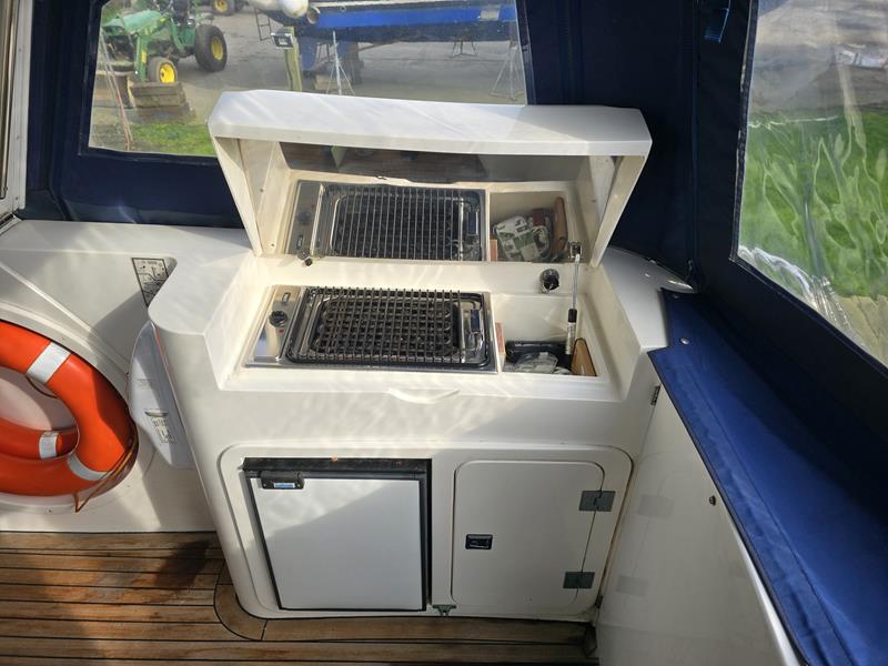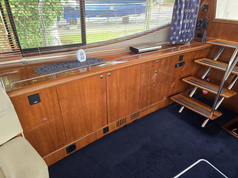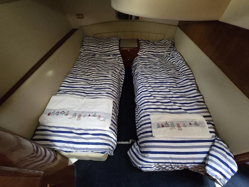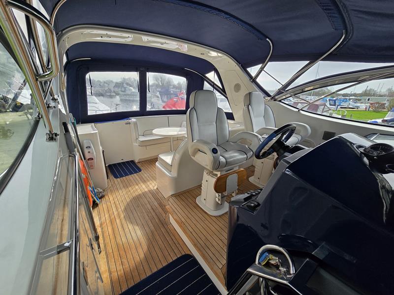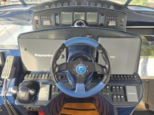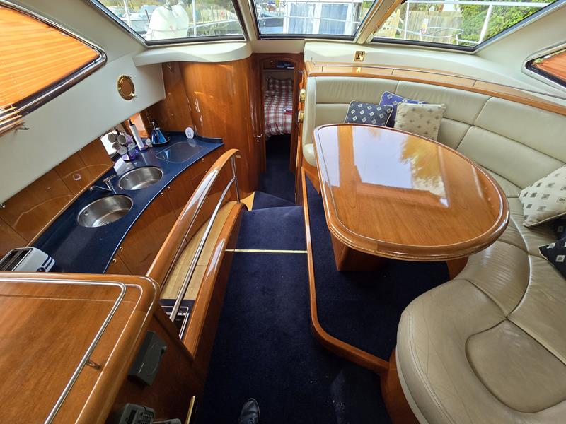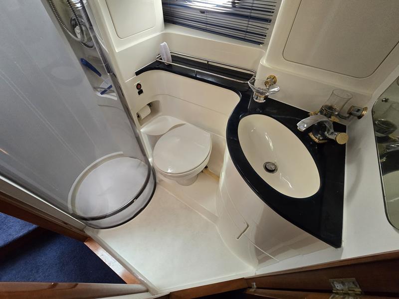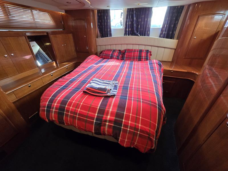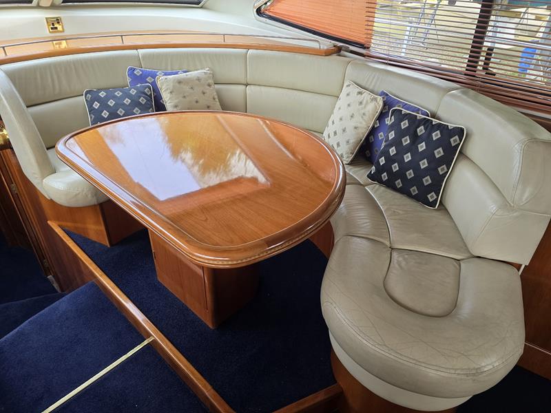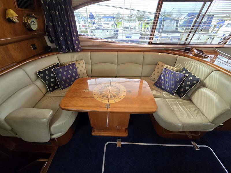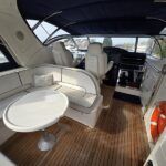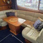 Broom 50 – 2002 – 2 x Caterpillar 3196 660hp engines, 6 berths across 3 cabins, 2 x toilet and shower compartments, Beautifully finished in high gloss cherry. Bristling with extras that include – air con, heating, bow thruster, track vision satellite TV, cockpit BBQ and drinks fridge, 11.9Kw generator, Raymarine plotter/radar/autopilot/VHF. Boasting vast accommodation typical of larger boats and low engine hours! The Broom 50 is a fast and very capable offshore cruiser.
