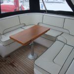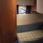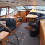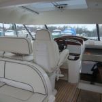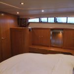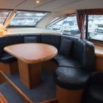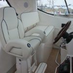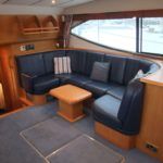 BROOM 50 HARDTOP – 2005, 2 x CAT 710hp diesel engines with CAT service history. 3 cabin layout. Beautifully appointed with excellent accommodation including the sumptious aft cabin. Massive spec: electric hardtop – great for all weather cruising, chart plotter, radar, autopilot sat TV, bow thruster, generator, teak cockpit and decks, electric davits, leather saloon and dinette, air con, diesel heating and the stunning blue hull. New cockpit & helm upholstery and canopy fitted.