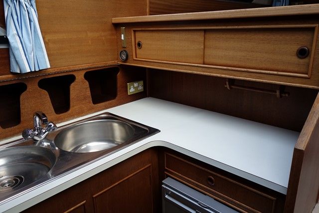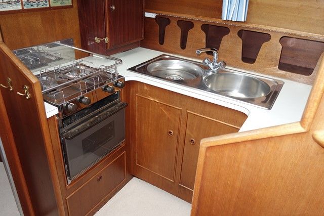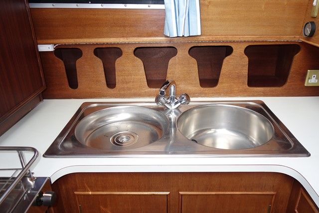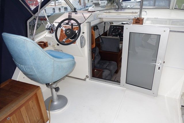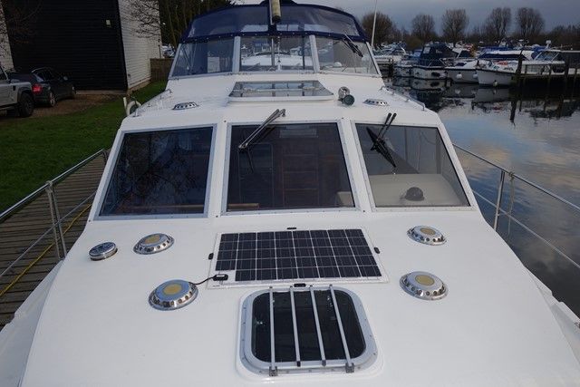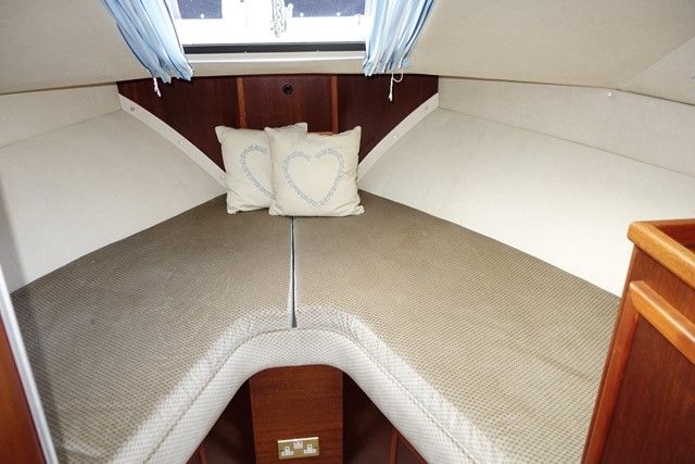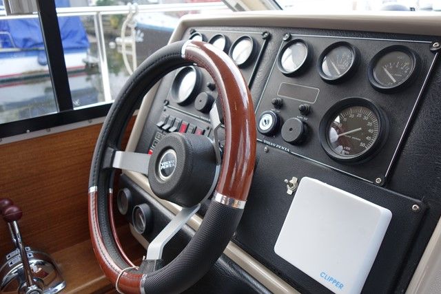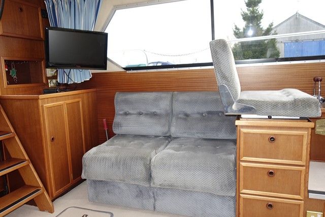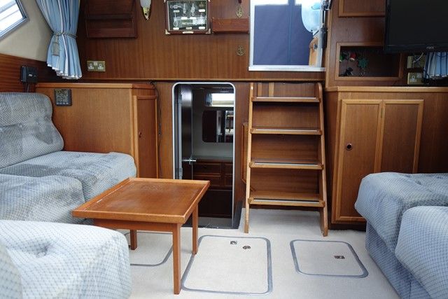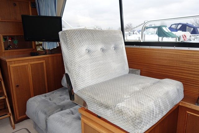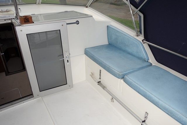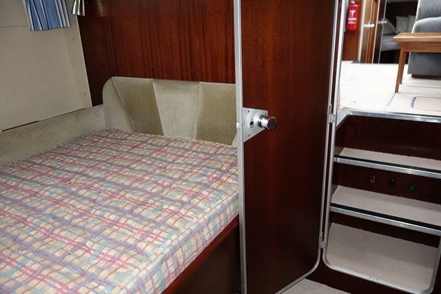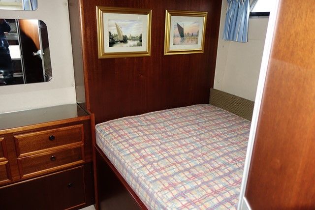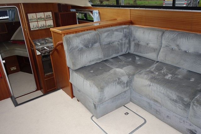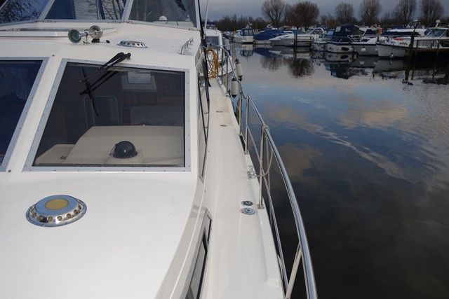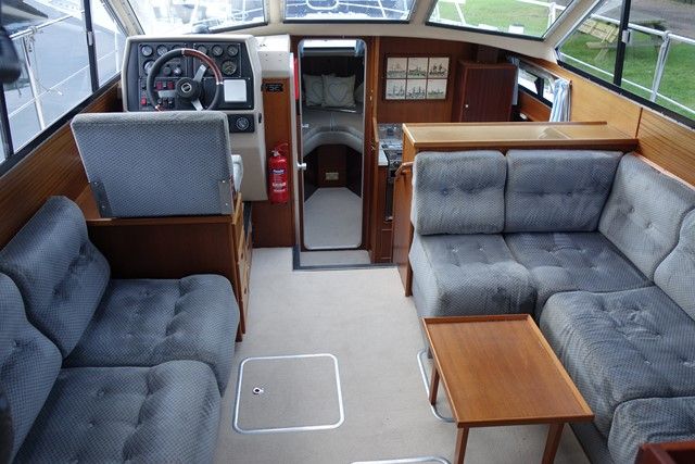 BROOM 970 – 1987, 2 x TAMD31A 130hp diesel engines. 6 berths with 2 toilets and 1 shower. Shore power, Battery charger, Holding tank, Anchor winch, Calorifier and immersion. BSSC until 2017. A spacious and versatile craft with a well planned layout making cruising truly comfortable. NYA Stock – Fully prepared by our Service Centre.