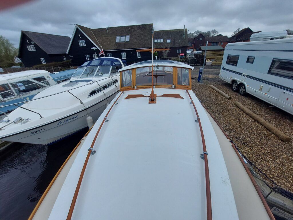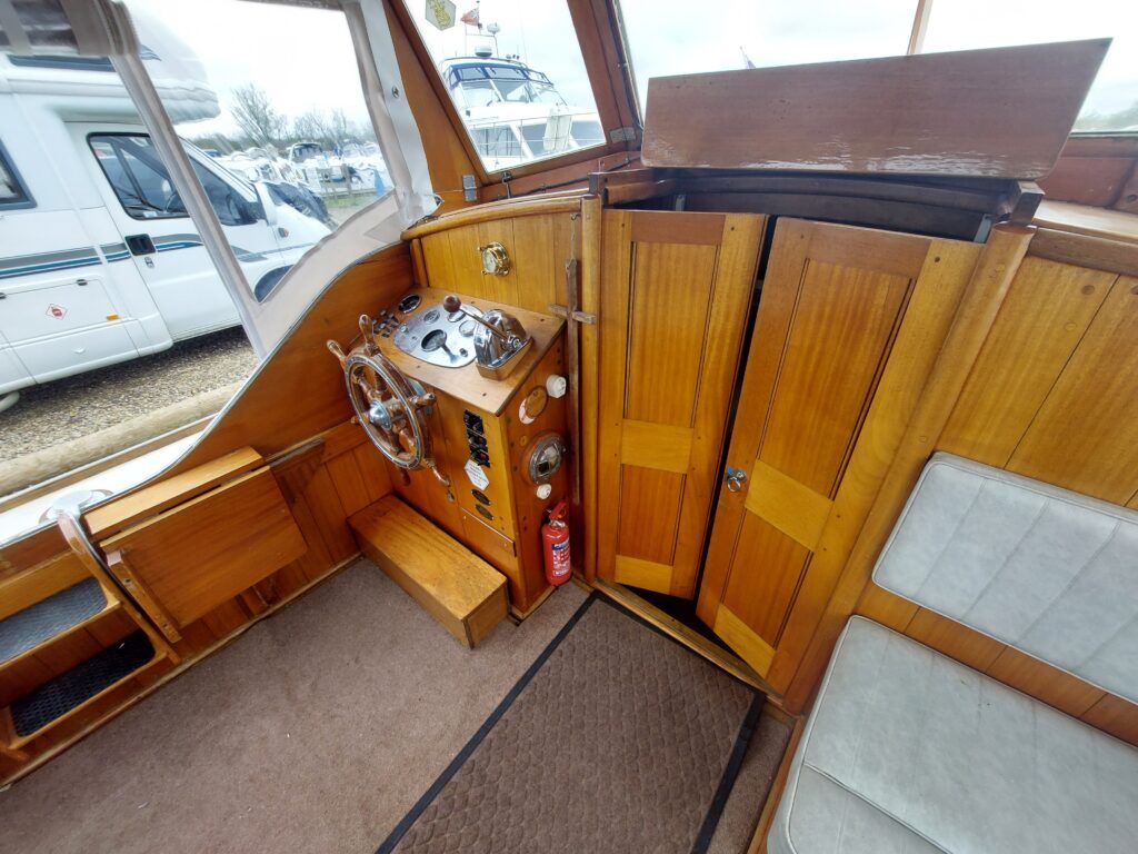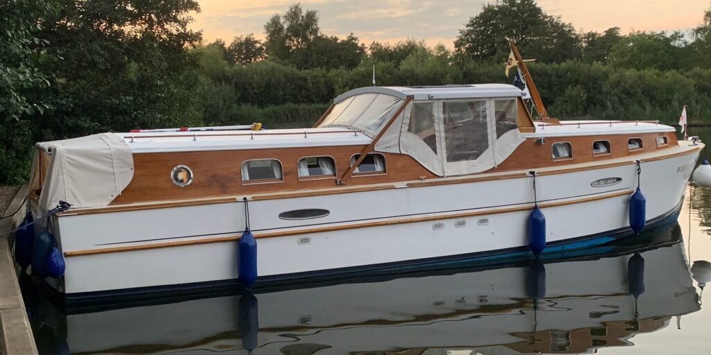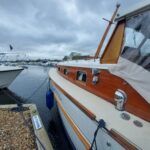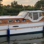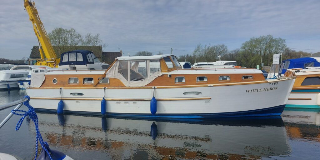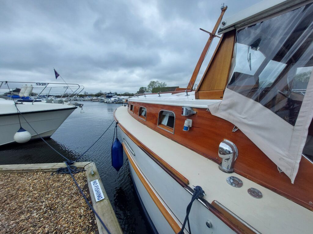 Broom Commander – 1955 – Single Perkins 4.107 34hp diesel engine on traditional gearbox and shaft with comfortable 4 berth accommodation. Included in the National Register of Historic Vessels, “White Heron” was built for the parents of Mrs Broom and later owned by Mr & Mrs Broom themselves. With a comprehensive history of maintenance and modern features; shorepower, charger, heating etc, White Heron is great example of a well maintained, ‘non-restored’ classic. More pictures and details to follow.