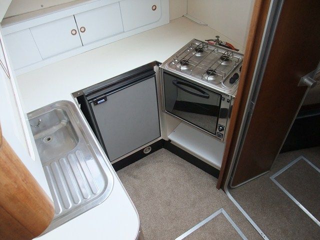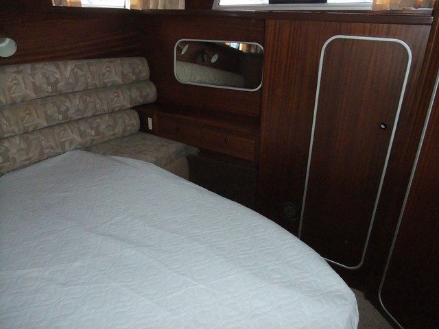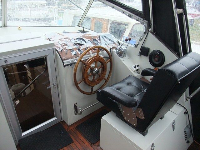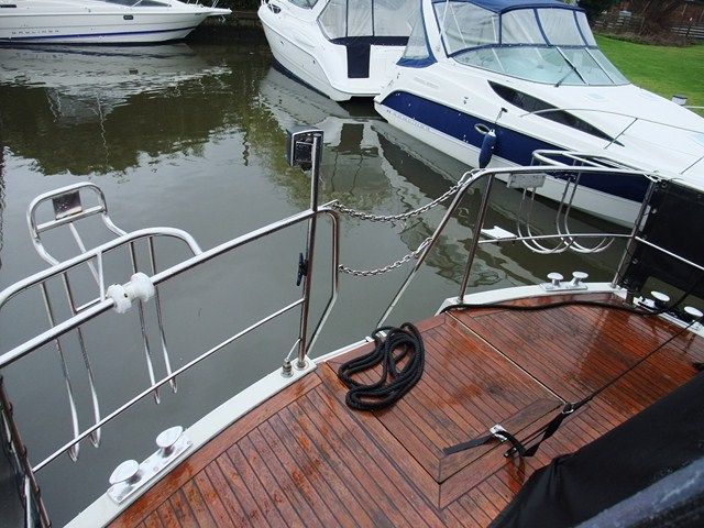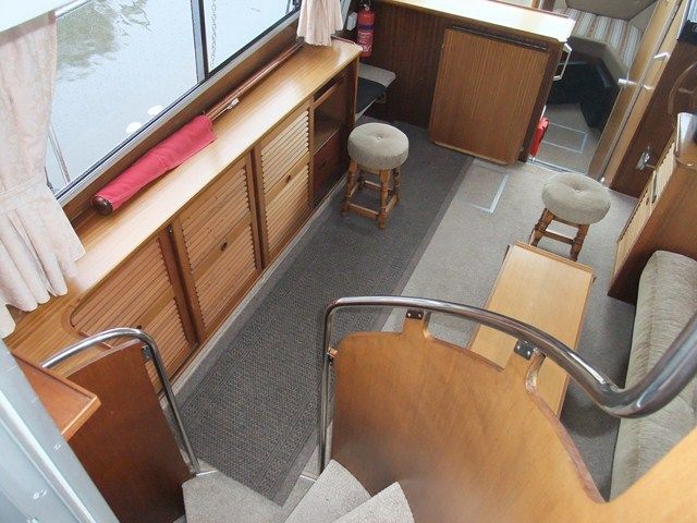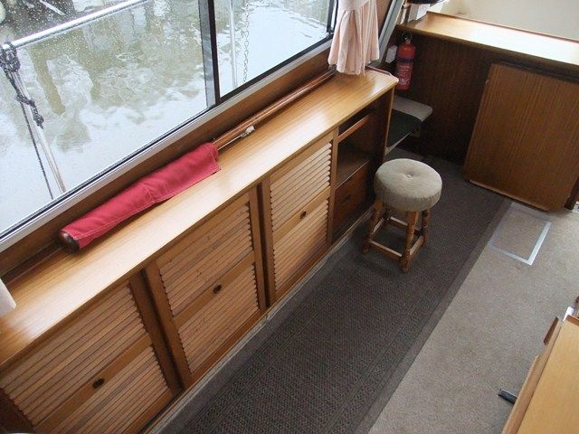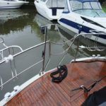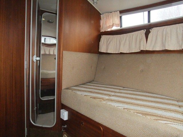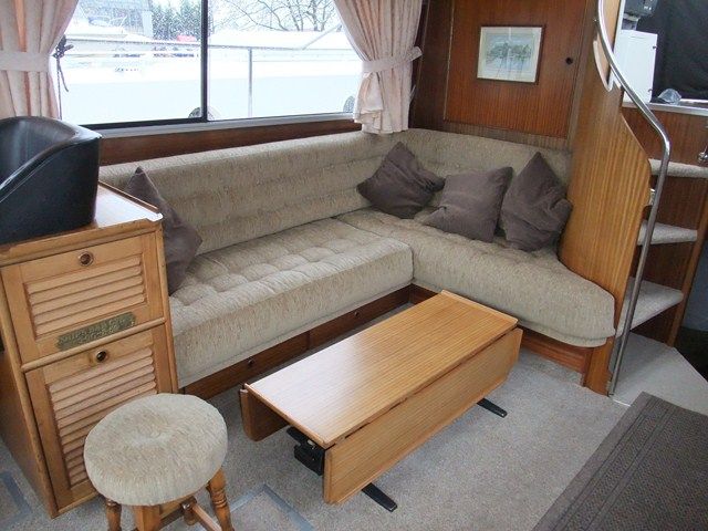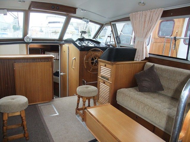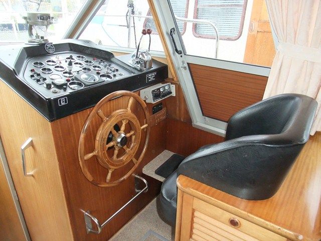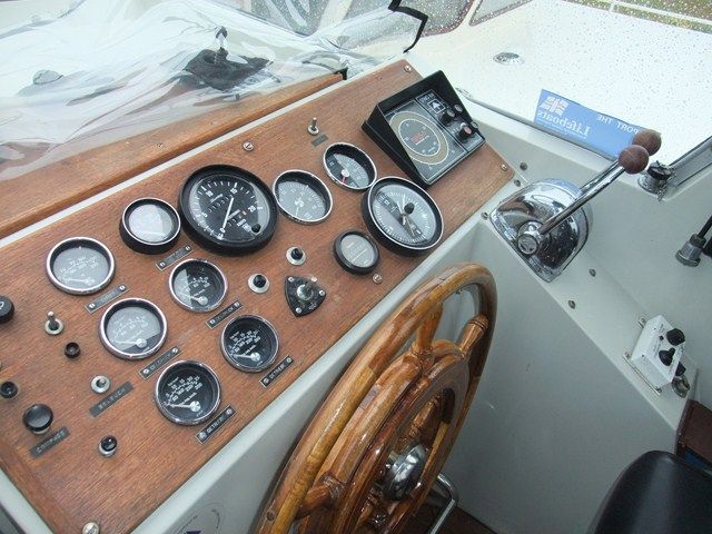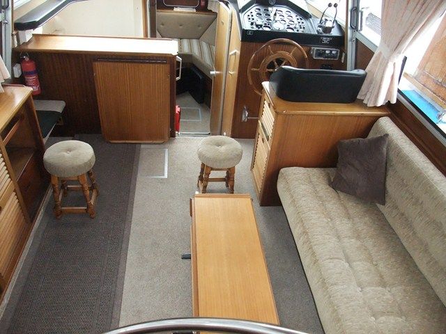 BROOM CROWN – Built 1978, powered by 2 x Perkins 6.354HT 175hp, diesel engines, 6 berths – lovely aft cabin with en-suite. 2 x toilet and 1 x shower, Webasto heating, bow thruster, twin helm positions, shore power, Cetrex auto pilot, VHF. This particular Broom Crown has an attractive light interior upholstery and the traditional high quality Broom finish.