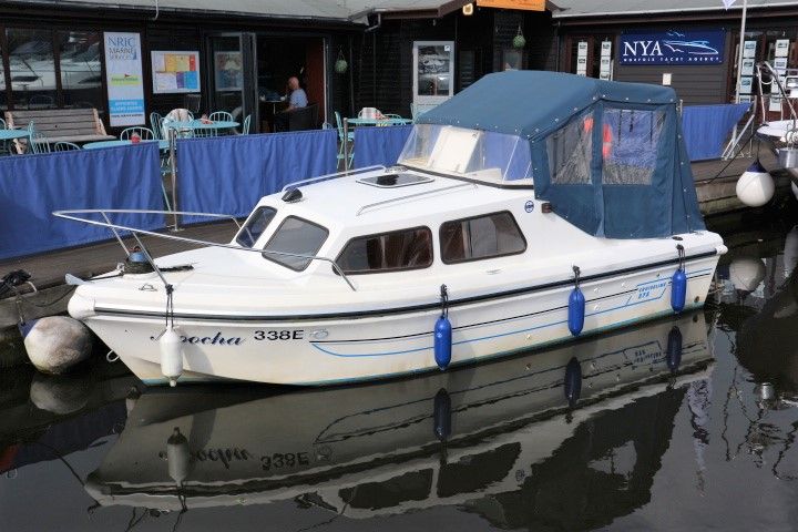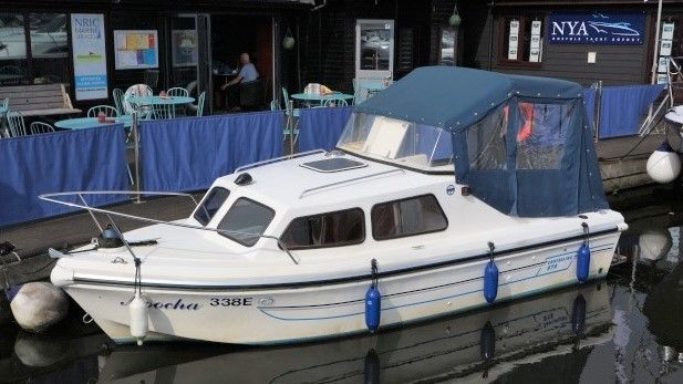 BROOM CRUISELINE 575 – 1997, Nanni 2.50HE 13.8hp diesel engine, 2 berth accommodation, porta loo in compartment, 2 burner gas hob, sink with cold water supply, full folding canopy, Boat Safety Certificate 04/21. A rare example of these popular day/weekend cruisers with the benefit of an inboard diesel engine. Sold as traded in.