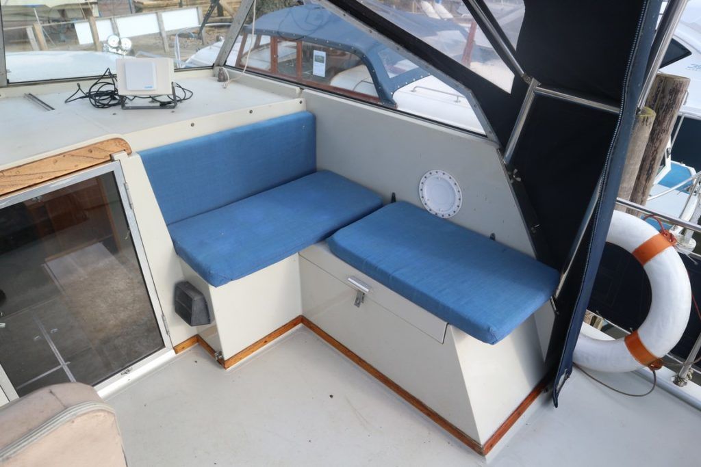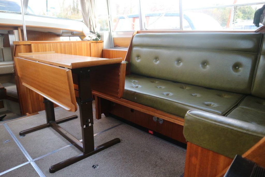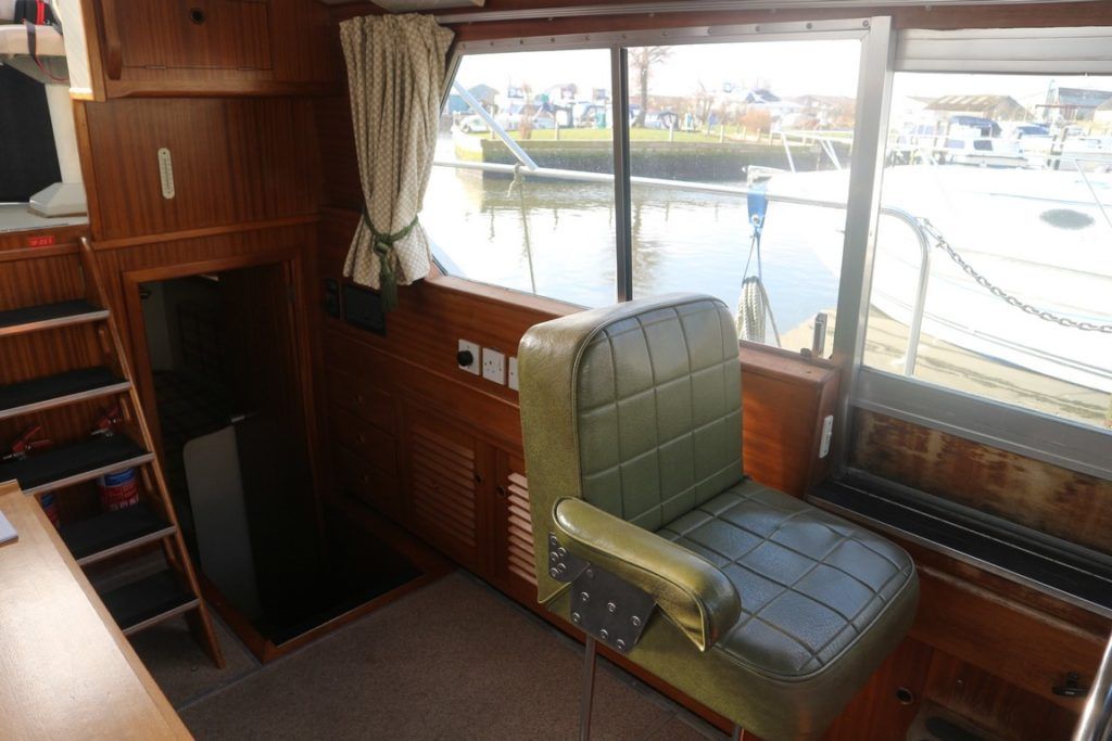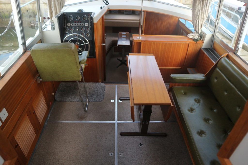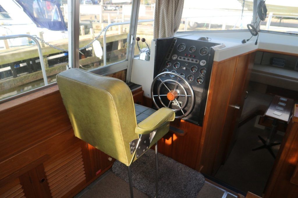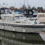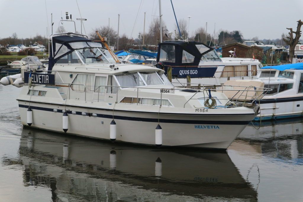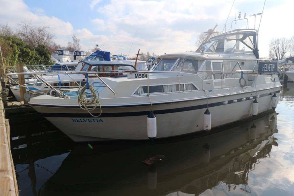 BROOM 35 EUROPEAN – Circa. 1977 – Powered by twin Mercraft 120hp diesels. 6 berth accommodation with 2 toilet and 2 showers. Specification to include; Generator, warm air heating and shore power supply. Folding screens and arch to increase inland access. BSC 02/19. Only 2 owners since 1990 and cruised on the Norfolk Broads.