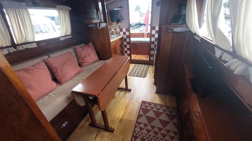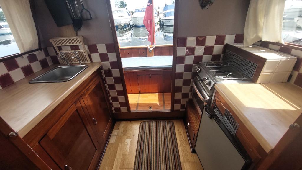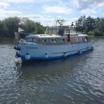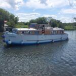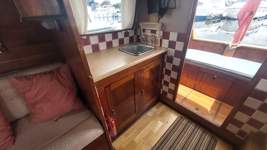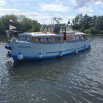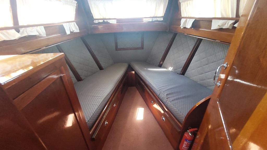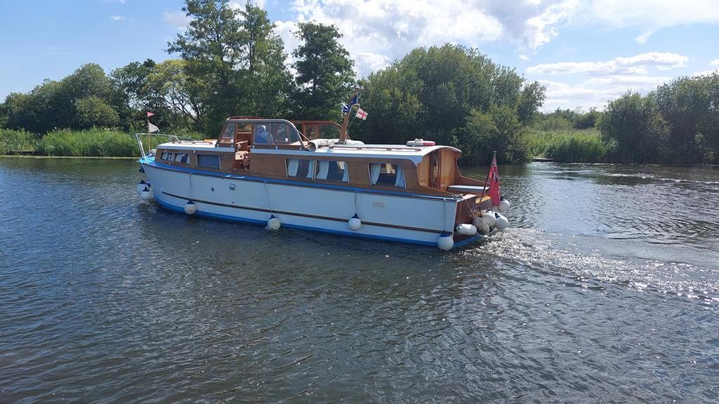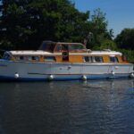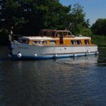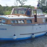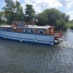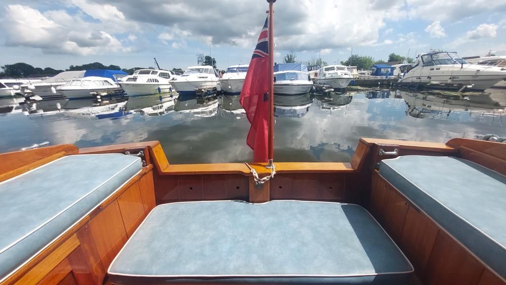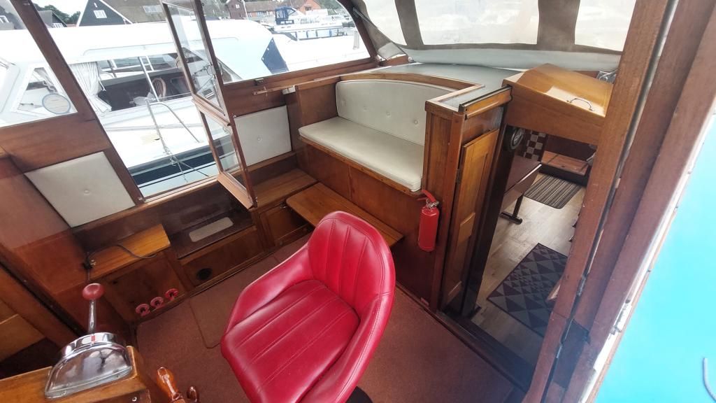 Broom Navigator – Circa 1968 – Single BMC 2.2ltr Commander 50hp diesel engine through a shaft. 4 berth accommodation across 2 cabins with separate toilet and shower compartments. Specification to include; warm air heating, navigation lights, aft well canopy, folding wheelhouse screens. An elegant, traditional Broom motor cruiser of the late 196o’s, “Genevieve” has been cossetted inside and out by her current owner and has spent much of her recent life in a wet-shed. A classic craft, perfectly at home on the Norfolk Broads and an ideal boat on which to spend holidays or extended stays afloat.