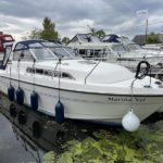 Broom Ocean 29 – 2000 – Powered by a Nanni 5.280HE 62hp diesel engine through shaft. Up to 4 berth accommodation in forward double cabin and saloon. 1 x toilet/shower compartment. Galley with 2 burner hob, oven & grill, fridge and sink. Specification including bow and stern thrusters with remote, shore power, battery charger, immersion heater, warm air heating, synthetic teak decking to cockpit and bathing platform, BSC 01/24, speed & depth log, folding arch and screens. A lovely example of these ever popular river cruisers with a generous specification.
