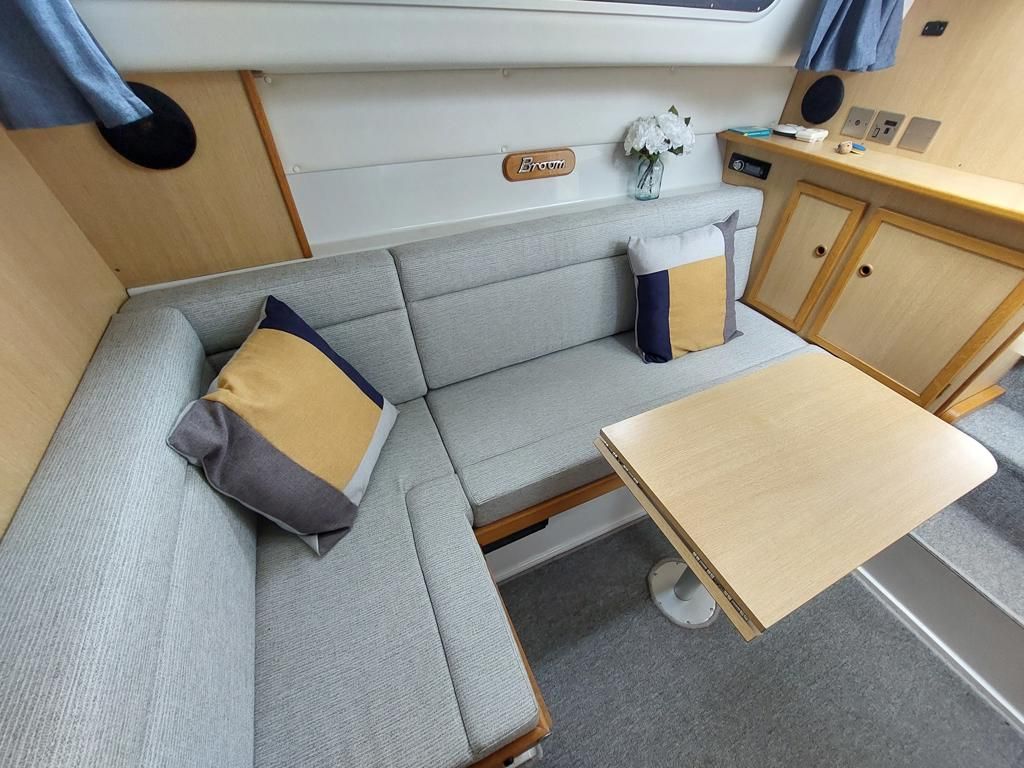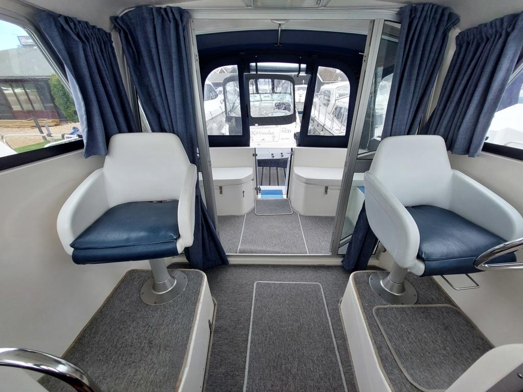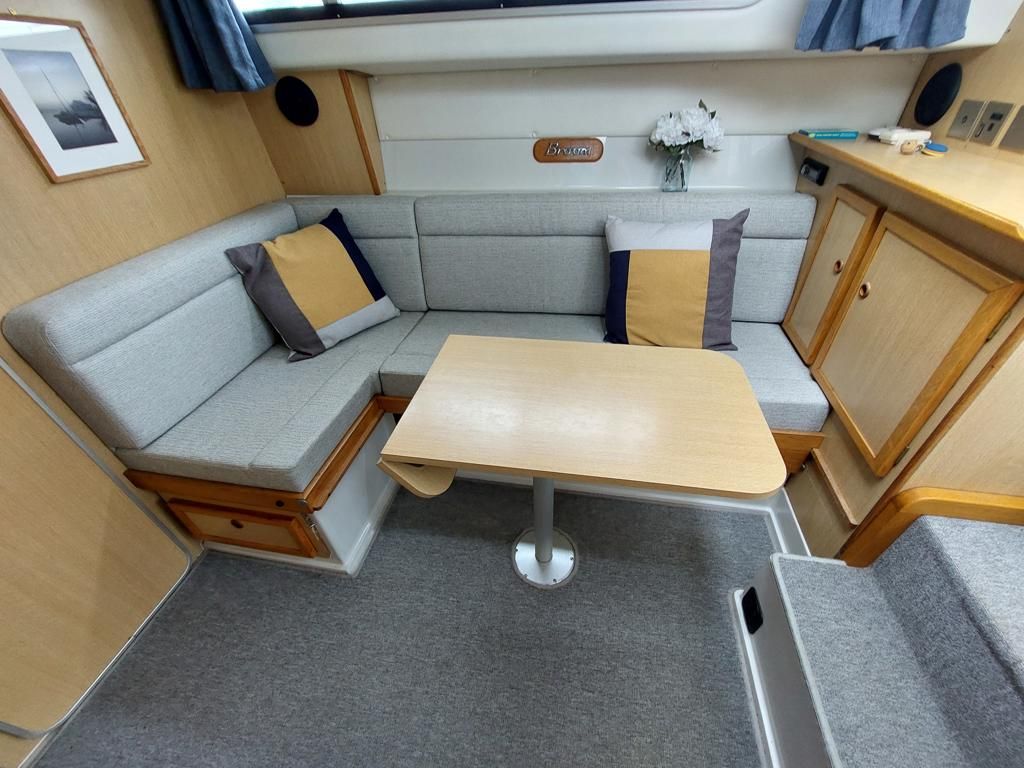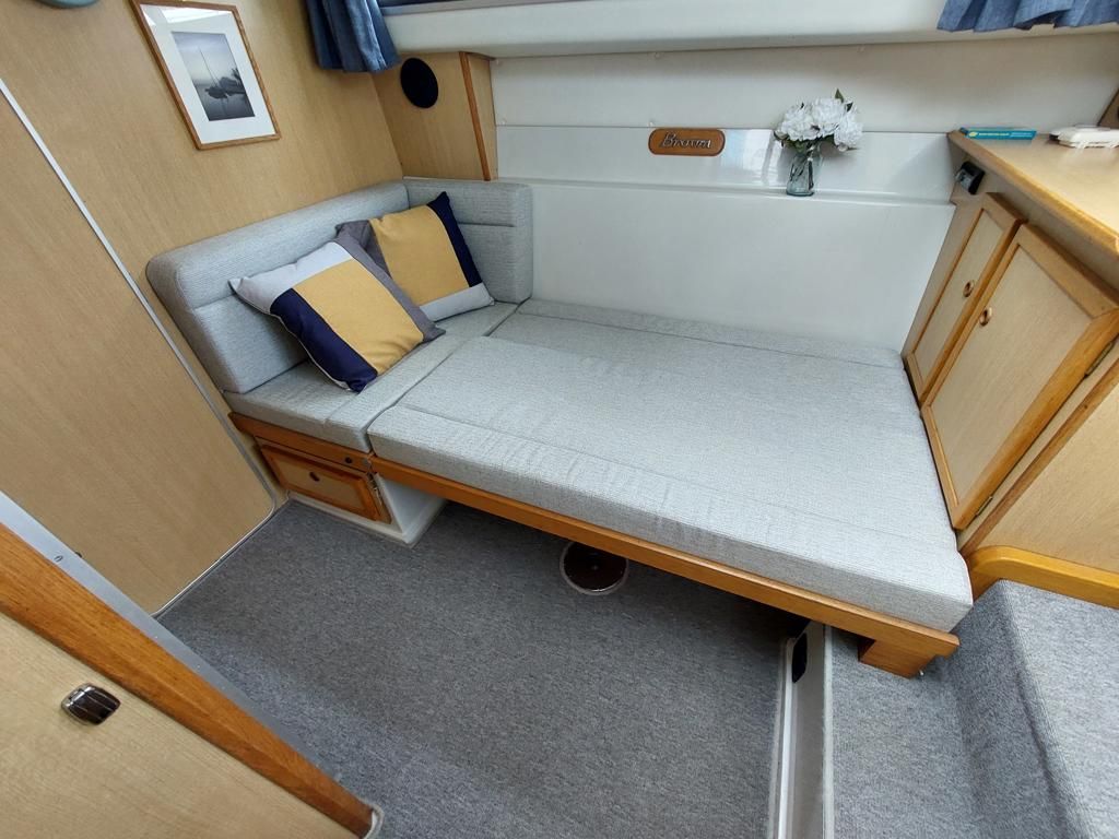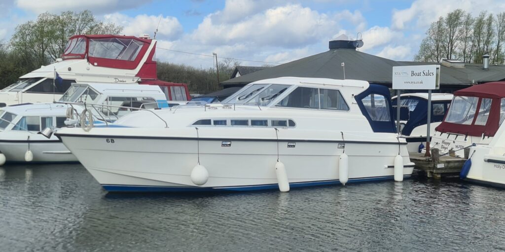 Broom 29 – 1995 – Single Nanni 4.220HE 50hp diesel engine through a shaft; 4 berth accommodation with a single toilet and shower compartment. Specification to include; bow-thruster, inverter, electric windlass, speed and depth logs, sunroof. “About Time” is a nice example of these ever popular Broom motor cruisers. Recently serviced and anti-fouled, she would make an excellent craft on which to spend time on the Broads or other waterways. BSSC 30/03/2026