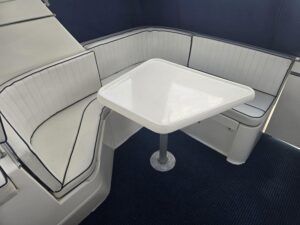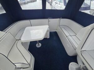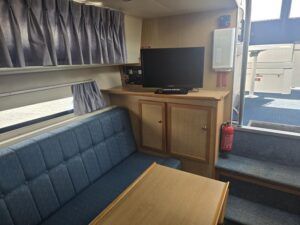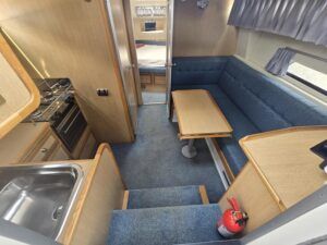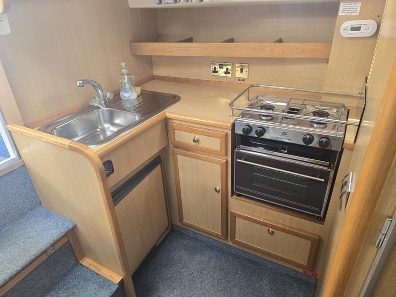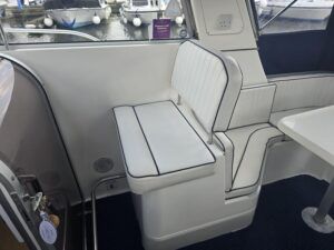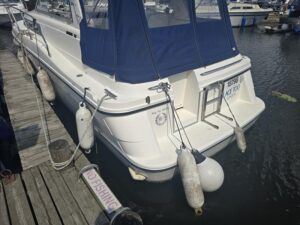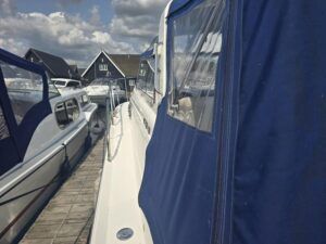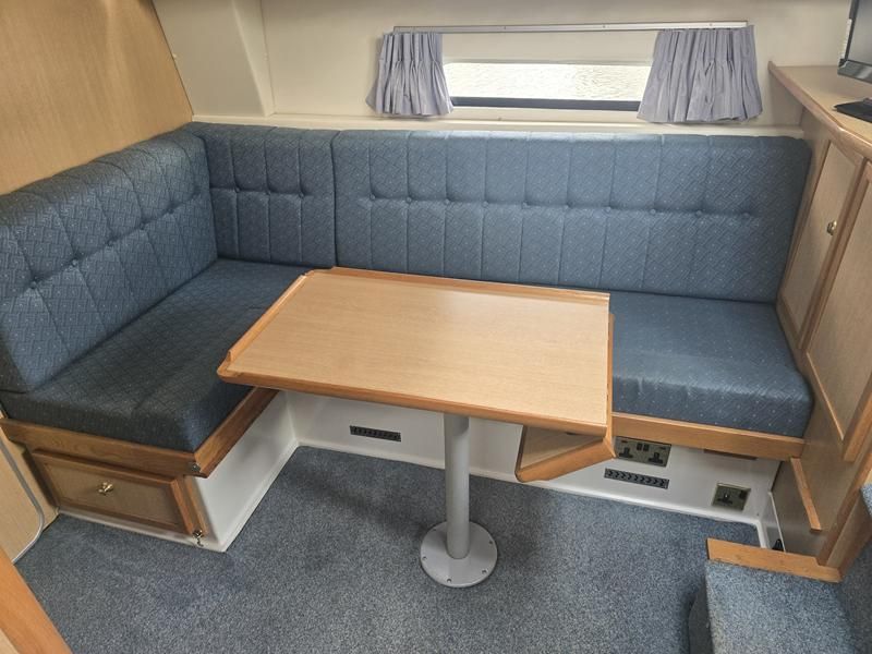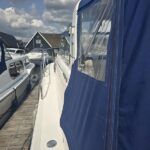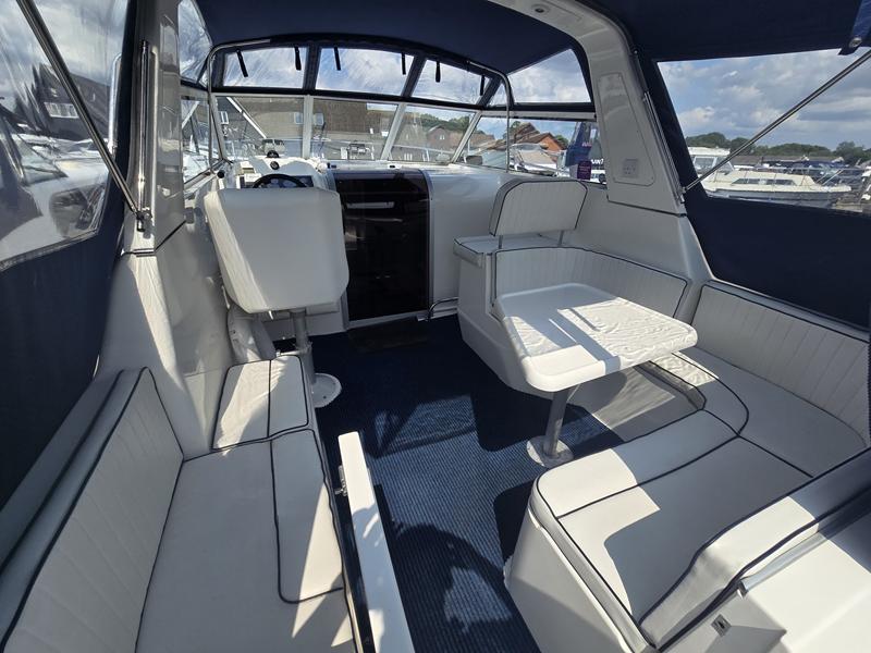 Broom Ocean 29 – 2000 – Powered by a Nanni Kubota N5.28 62hp diesel engine through a shaft. 4 berth accommodation with a separate toilet and shower compartment. Specification to include; Bow thruster, holding tank, warm air heating, shore power, battery charger, immersion/calorifier, folding radar arch and more. BSC 2028. CE Cat B for coastal work. A late Broom 29 benefitting from the larger upgraded engine option. Early viewing recommended!